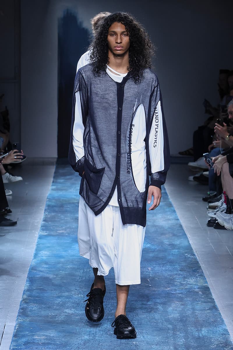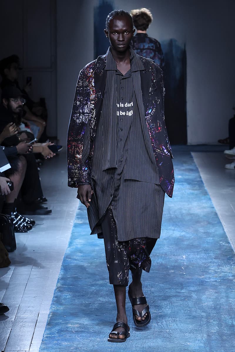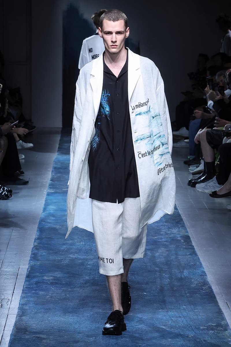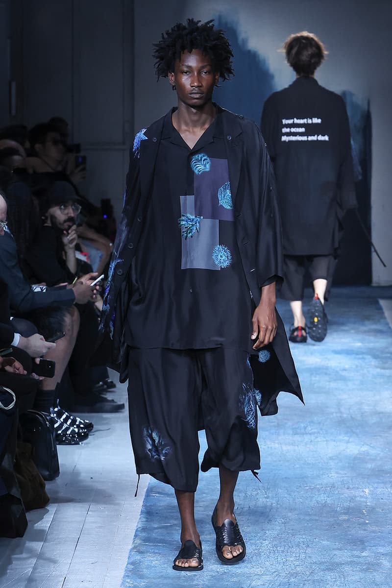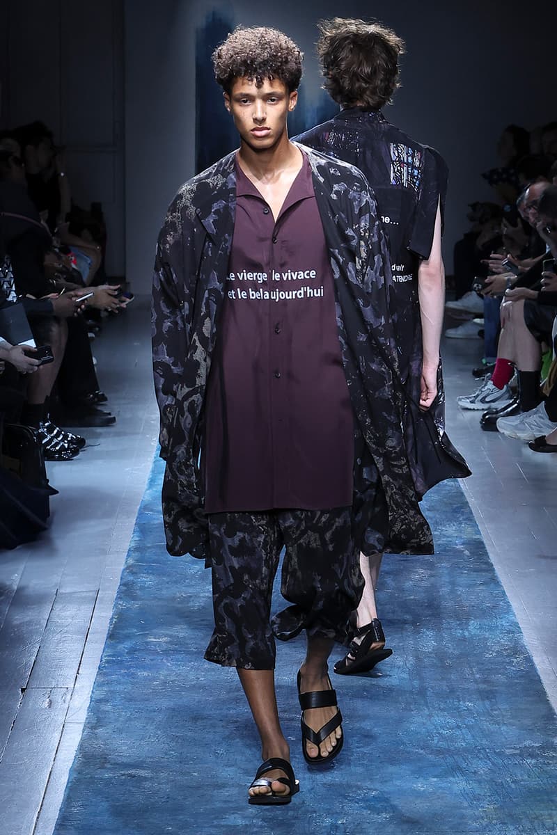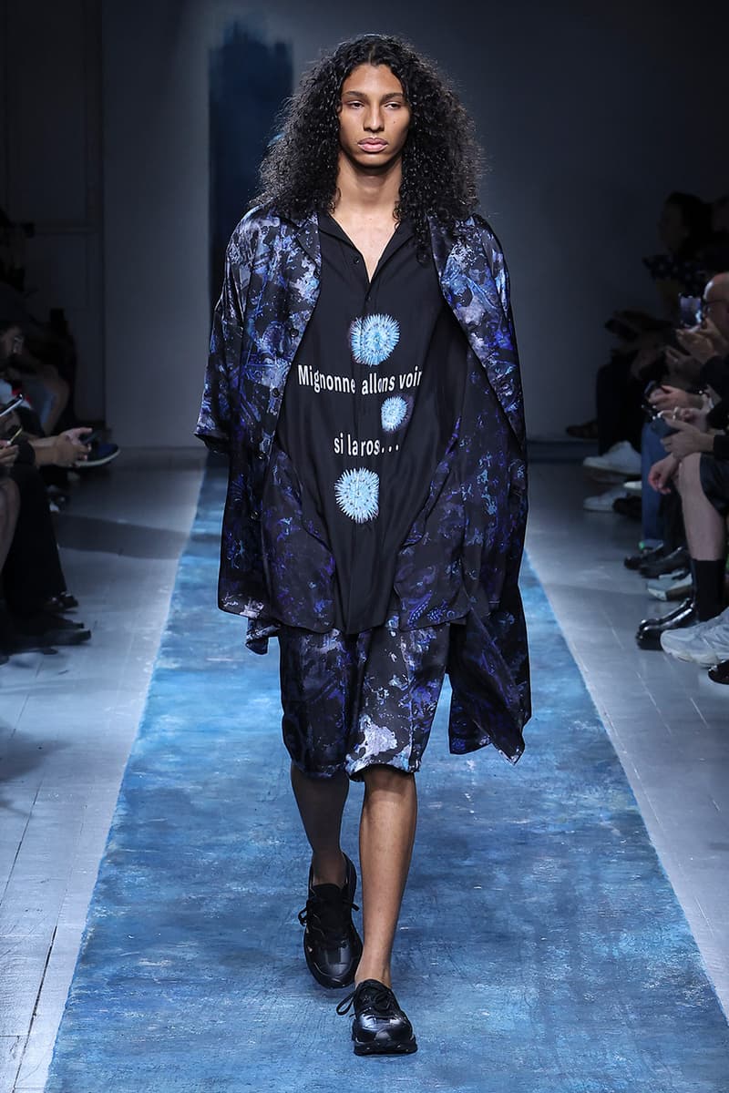 山本耀司在巴黎时装周期间,于其标志性的玛黑区店址发表了 Yohji Yamamoto POUR HOMME 2026 春夏系列大秀,尽管秀场地点象征着令人安心的延续性,但本季却呈现出截然不同的强烈反差,融合了山本耀司的经典美学与对当前世界局势的迫切消息。 伸展台上充满设计师的标志性风格,丝质马赛克图案长袍和宽松流畅的剪裁主导了整体轮廓,再次印证他对解构优雅和垂坠美学的坚持。这些作品体现了 Yohji Yamamoto POUR HOMME 宇宙中永恒的闲适与精致艺术性。然而,在这熟悉的梦幻景致中,却交织着直接且深刻的宣言。印有「un rêve avec Yohji Yamamoto」(意为「与山本耀司的一个梦」)字样的衬衫出现,微妙地暗示着从沉睡中觉醒,或是意识穿越超现实旅程的主题。 系列也在其他地方戏剧性地转变了语气,成为评论当前全球局势的画布。服装上印制着醒目且具冲击力的标语,例如「No more wars」和「Oceans disappears makes humans finished」。这些强而有力的消息,严肃提醒着人们当前紧迫的全球议题,将服装转化为批判性反思的媒介。这种飘渺梦境与严酷现实的并置凸显了山本耀司将深刻个人艺术表达与对世界迫切需求的敏锐洞察力融合的独特能力。 Yohji Yamamoto POUR HOMME 2026 春夏系列是一场关于美学与行动主义的引人入胜的对话,一首邀请人们沉思同时歌颂形式自由的视觉诗篇,有兴趣的读者不妨浏览上方艺廊查看完整大秀。 |