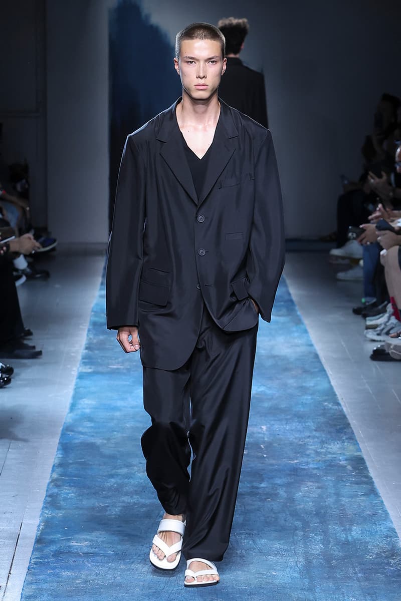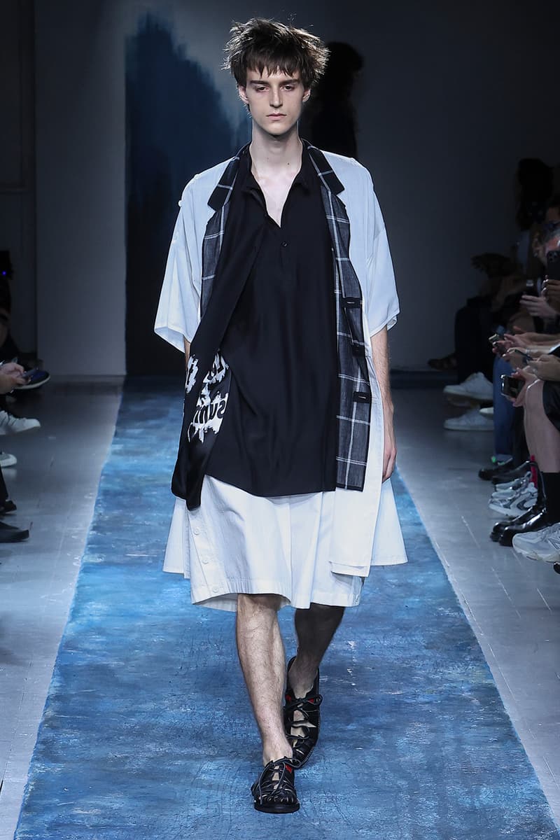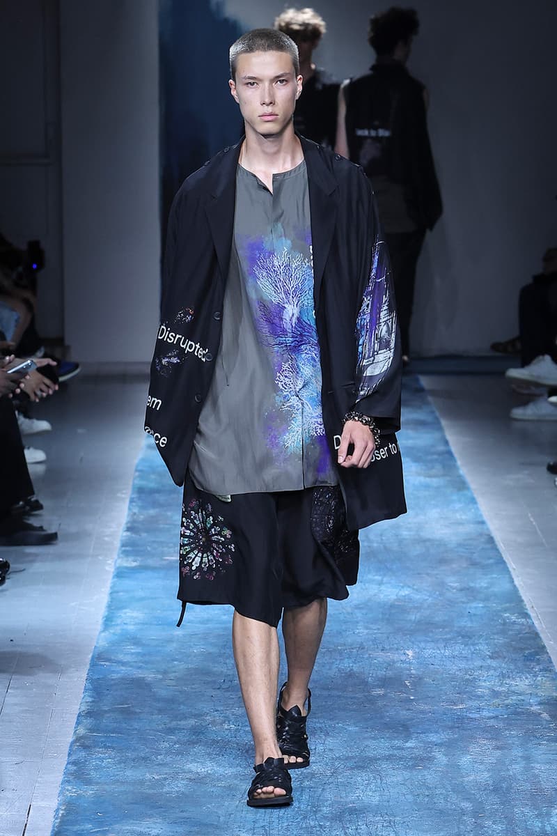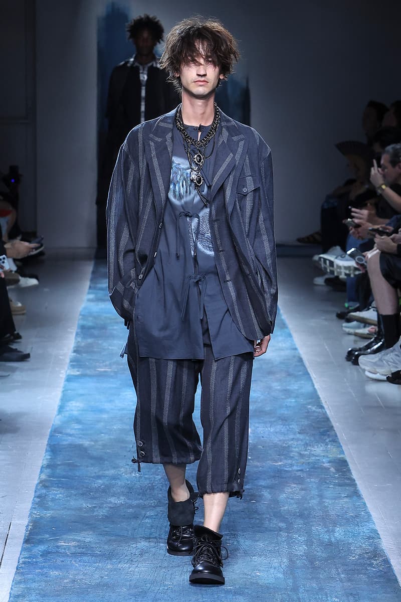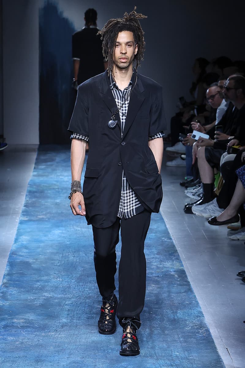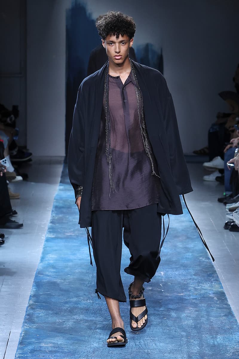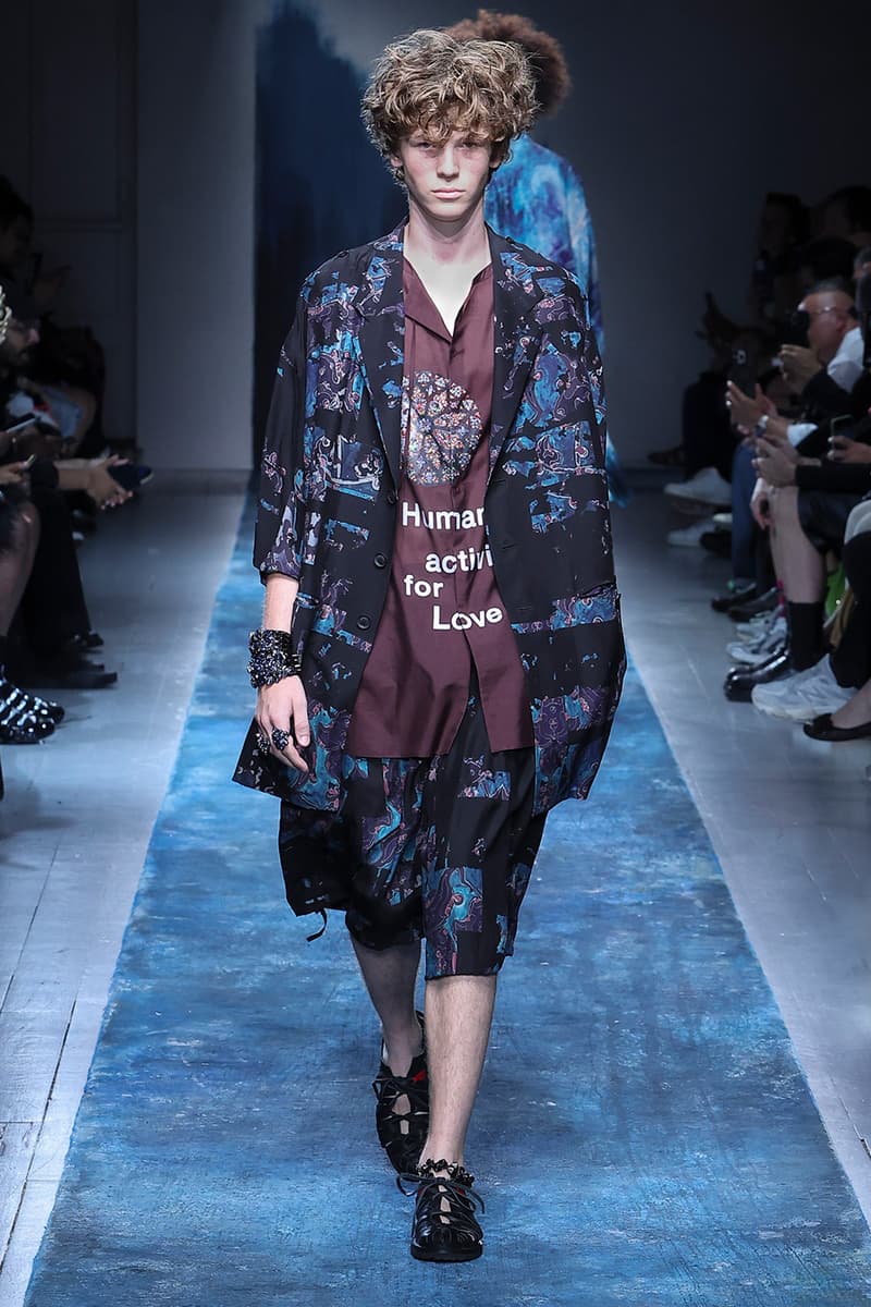 山本耀司在巴黎时装周期间,于其标志性的玛黑区店址发表了 Yohji Yamamoto POUR HOMME 2026 春夏系列大秀,尽管秀场地点象征着令人安心的延续性,但本季却呈现出截然不同的强烈反差,融合了山本耀司的经典美学与对当前世界局势的迫切消息。 伸展台上充满设计师的标志性风格,丝质马赛克图案长袍和宽松流畅的剪裁主导了整体轮廓,再次印证他对解构优雅和垂坠美学的坚持。这些作品体现了 Yohji Yamamoto POUR HOMME 宇宙中永恒的闲适与精致艺术性。然而,在这熟悉的梦幻景致中,却交织着直接且深刻的宣言。印有「un rêve avec Yohji Yamamoto」(意为「与山本耀司的一个梦」)字样的衬衫出现,微妙地暗示着从沉睡中觉醒,或是意识穿越超现实旅程的主题。 系列也在其他地方戏剧性地转变了语气,成为评论当前全球局势的画布。服装上印制着醒目且具冲击力的标语,例如「No more wars」和「Oceans disappears makes humans finished」。这些强而有力的消息,严肃提醒着人们当前紧迫的全球议题,将服装转化为批判性反思的媒介。这种飘渺梦境与严酷现实的并置凸显了山本耀司将深刻个人艺术表达与对世界迫切需求的敏锐洞察力融合的独特能力。 Yohji Yamamoto POUR HOMME 2026 春夏系列是一场关于美学与行动主义的引人入胜的对话,一首邀请人们沉思同时歌颂形式自由的视觉诗篇,有兴趣的读者不妨浏览上方艺廊查看完整大秀。 |