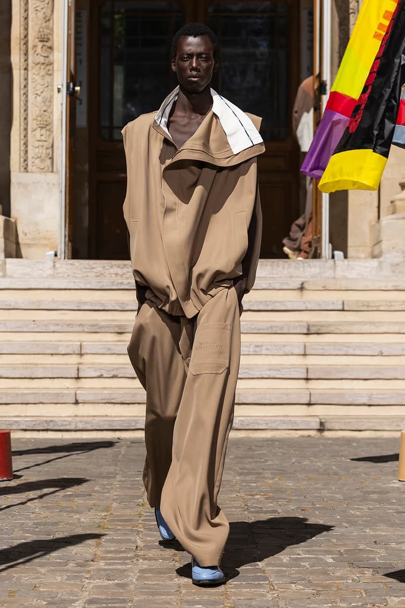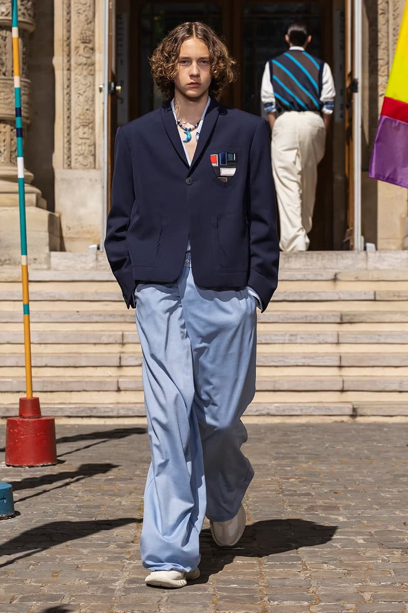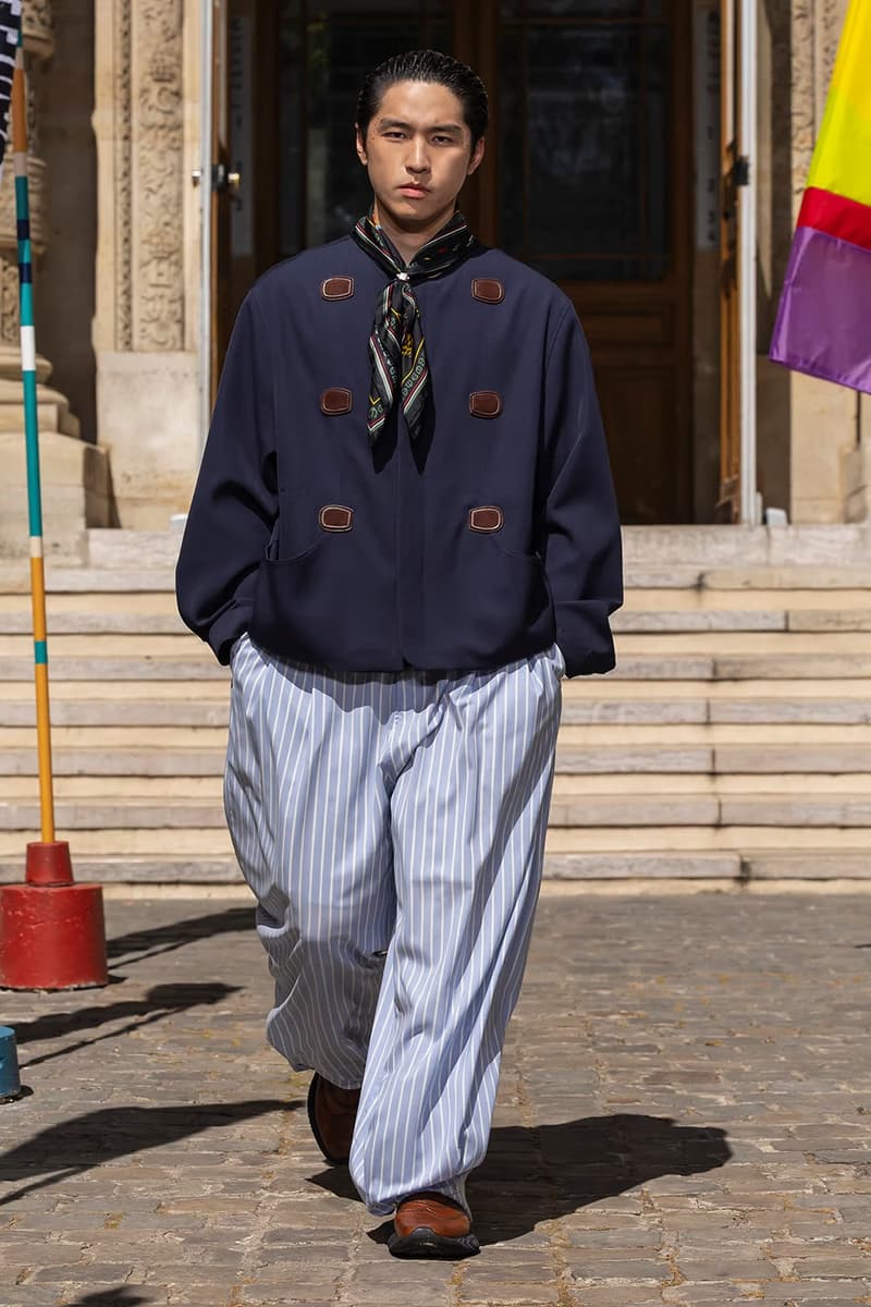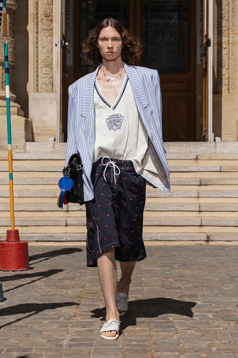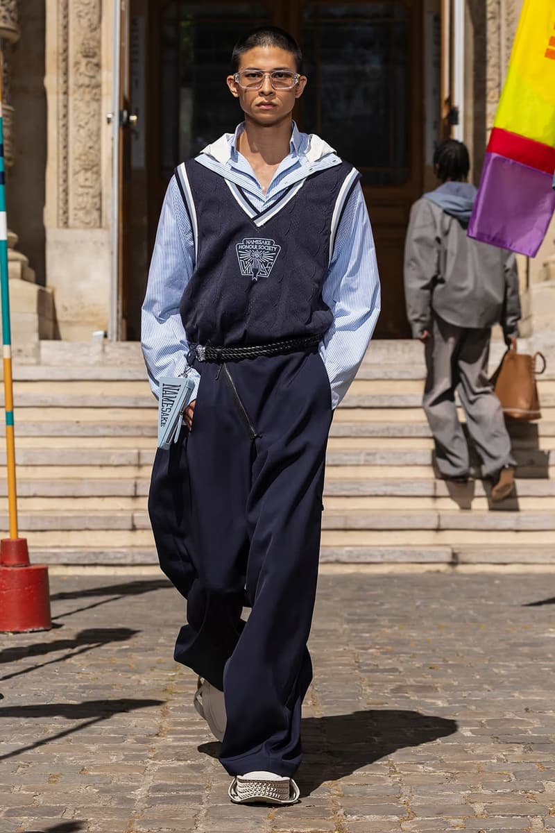 NAMESAKE 2026 春夏系列大秀「INNERCHILD」正式巴黎时装周。 本季灵感取材自《Stand by Me》、《This Boy’s Life》、《Jerry Maguire》等经典成长电影,把服装变成一座可以穿上的情感游乐场,陪大家再次连结内心那个最真实的自己。校服、童子军服、球衣等成长过程中的「制服」,经过拆解重组后,以当代的视角重新演绎;从童年笔记本得到灵感的涂鸦、拼贴、错落的布章,成为藏在细节里的小巧思。它们不是角色扮演的戏服,而是能带着走的护身符,时时提醒我们:人生的美好,从来不该被设限在目的地。 「INNERCHILD」的布料选择也是一场贴近情感的实验。技术纤维与感官记忆交织,像是水痕、条纹、海洋意象的提花面料,呼应那些曾经在海边度过的无忧日子,从喷泉跑过后裤脚溼答答、从笑声里被风掀起的衬衫,这些触感都被织进每块布料里。 以运动的流动感为灵感,服装的轮廓强调肢体的自然记忆与本能快乐。弹性抽绳、可调节细节、自然的褶皱,呼应孩子们自在乱跑的随兴,衣服的线条时而延展、时而收放,如同童年的想像力一样毫无拘束。从球场到操场,从森林小径到情感的觉醒,这一季用服装去诠释「快乐即表达」。 配件成为陪伴旅途的信物,包款融合海上装备、邮差包与复古运动袋的元素,实用却充满故事性;小巧的皮革饰件呼应冠军旗帜、船只信号与胜利奖牌,像是为努力过的每一刻留下的纪念。船只结构里的挂钩、扣环、铆眼,被安放在包款与细节中,皮革绳索如同编织绳结,把这季的精神再次系回那双曾经撑起船只、也连结海洋的手。 鞋款设计从品牌最私密的故事开始,鞋面上细腻的折痕、粗蜡绳般的质地与无鞋带轮廓,像是被翻阅过无数次的童军笔记本,见证一段段冒险的痕迹。麂皮质地与仿旧刷色向父亲致敬,鞋身上的数字「3」则低调呼应兄弟之间的羁绊,特制的 3D 列打印鞋底从球场延伸到街头,提醒我们:快乐从没走远,它一直静静的留在我们曾踏过的足迹里。此外,部份造型亦搭配 HUGO FORWARD 与 Zellerfeld 携手合作的 3D 打印乐福鞋,这款鞋以 100% 可回收 TPU 单次列印成型,结构轻盈、快干易清洗,与《INNERCHILD》「随兴但用心」的精神如出一辙,让每一步都能自在延伸成故事。 本季色彩在褪色的缤纷中藏着航海般的蓝绿、柔软的黄色、粉白的红色,彷彿是旧游乐设施、手绘墙面与午后阳光里褪色的暑假。从 Diane Simpson、Maria Appleton、Thomas Demand 的作品,到《Playgrounding》、《Playground》等书籍,NAMESAKE 把全球对「游戏」与「公共快乐」的观察,化成一种柔软却坚定的视觉线索。 此次秀场特别邀请格莱美获奖饶舌歌手暨制作人 Roddy Ricch 担任音乐总监,跨界打造原创配乐,这也是他少数以全新音乐创作介入时尚秀场的尝试。Roddy 与 NAMESAKE 创意总监 Steve Hsieh 共同重新想像伸展台,把它变成一座专属于回忆的声音场景,将未公开的曲目与个人经典作品片段重新编排,像一扇通往心里那扇门的钥匙,当音乐与服装一起流动时,旋律跟着轮廓呼吸、涟漪、扩散,唤醒每个人心里那块没被遗忘的童年。 巴黎男装周的现场,NAMESAKE 将传统秀场变成一个带有幽默感与脆弱感的情感空间,由知名概念艺术家 PZ Opassuksatit(PZtoday)担任装置艺术家,她擅长以空间说故事,这次邀请宾客放下心防、找回好奇心。观众席由一座座色彩缤纷的泳圈堆叠而成,就像童年游戏里的色彩,头顶悬挂的风管上,印着曾在水上乐园听过的大人叮咛,原本严厉的责骂如今成了耳边的呢喃。现场还以一块看似企业感十足的巨型告示牌作结,只写着一句直球提问:「HAVE YOU EVER PEED IN THE POOL? (你有在泳池小便过吗?)」,幽默又真实,提醒我们再体面,也都是从荒谬中长大的。 在这个催促人们加速长大的时代,NAMESAKE 2026 春夏系列「INNERCHILD」选择放慢脚步,邀请大家回头看看那个还没被世界磨平棱角的自己。这一季,NAMESAKE 带领大众找回那些最直觉也最短暂却强烈的快乐:水上乐园里的飞溅、游乐场上的探险、球场上赢得一分的骄傲、或是陌生人不经意的一句称赞。这些瞬间,或许早已成为记忆的一部分,却也从未真正离开过。这一季,我们重新为它们打开一扇门。 然而,「INNERCHILD」并不是单纯的怀旧逃避,而是正视「我们是怎么与从前的自己拉开距离」。当我们逐渐长大,清晰往往被复杂取代,快乐也不再单纯直觉,而是多了许多前提。NAMESAKE 透过本季提问:「如果幸福从未离开,只是换了一种模样呢?」 |