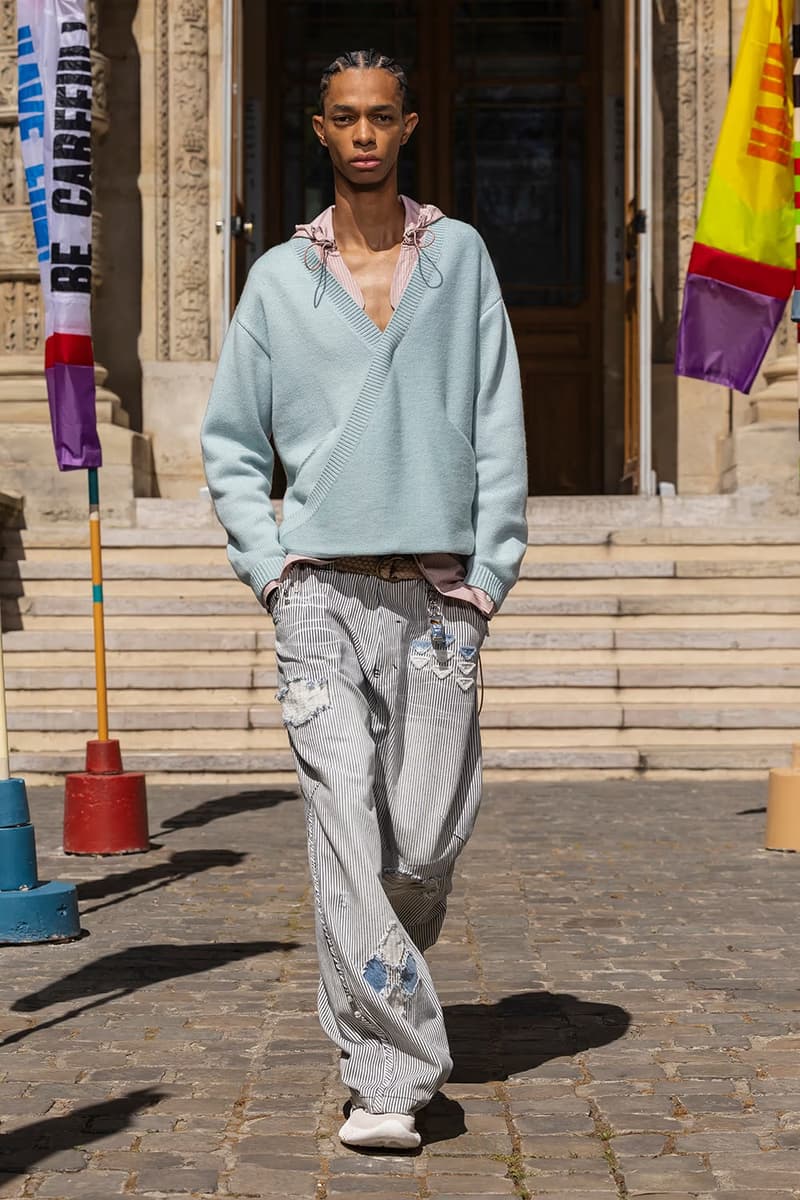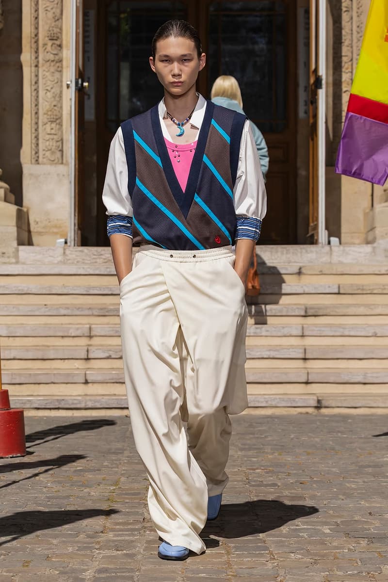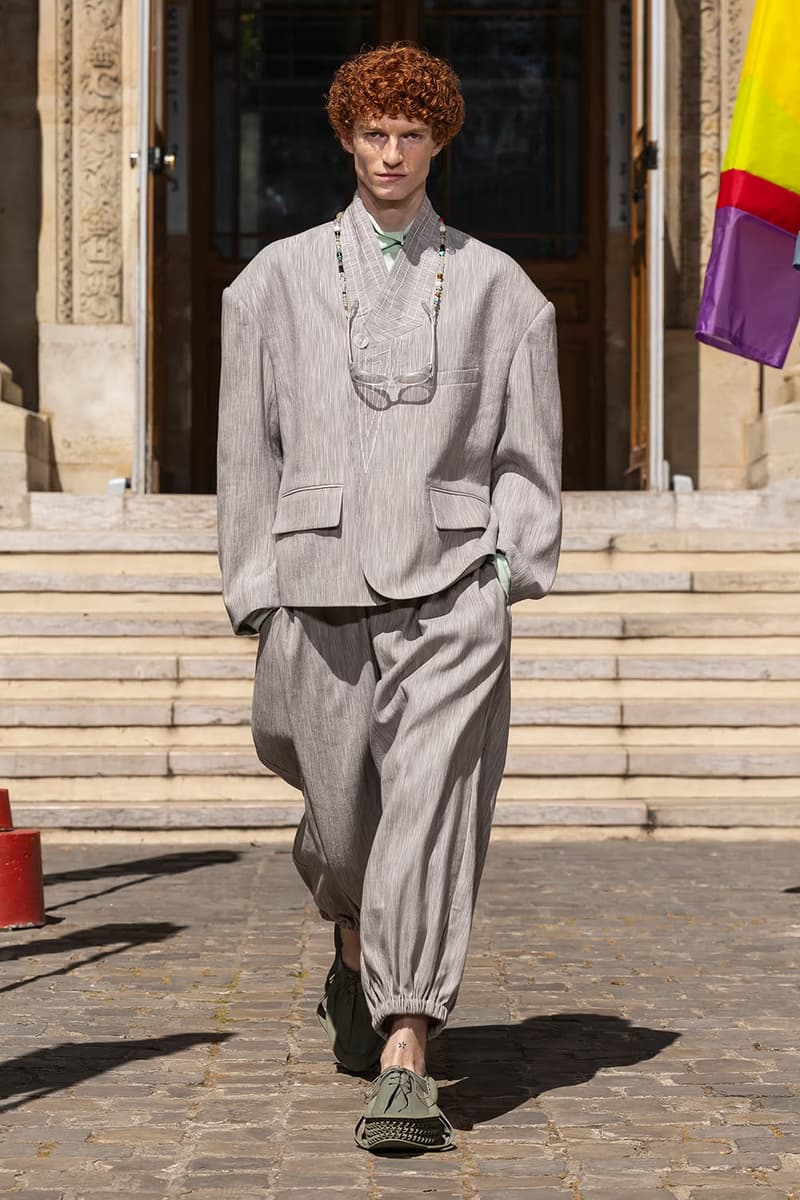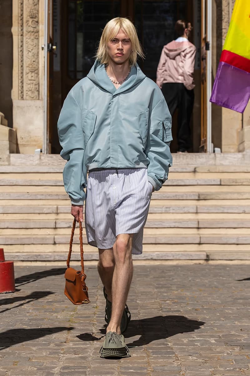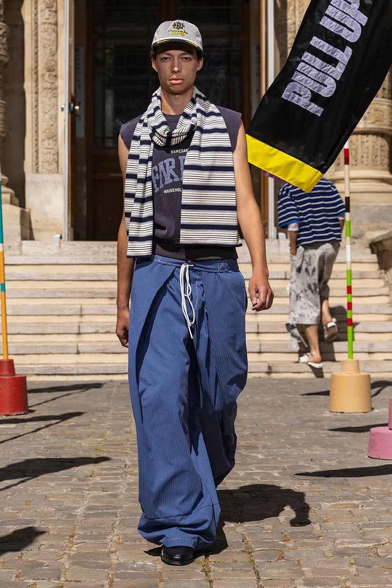 NAMESAKE 2026 春夏系列大秀「INNERCHILD」正式巴黎时装周。 本季灵感取材自《Stand by Me》、《This Boy’s Life》、《Jerry Maguire》等经典成长电影,把服装变成一座可以穿上的情感游乐场,陪大家再次连结内心那个最真实的自己。校服、童子军服、球衣等成长过程中的「制服」,经过拆解重组后,以当代的视角重新演绎;从童年笔记本得到灵感的涂鸦、拼贴、错落的布章,成为藏在细节里的小巧思。它们不是角色扮演的戏服,而是能带着走的护身符,时时提醒我们:人生的美好,从来不该被设限在目的地。 「INNERCHILD」的布料选择也是一场贴近情感的实验。技术纤维与感官记忆交织,像是水痕、条纹、海洋意象的提花面料,呼应那些曾经在海边度过的无忧日子,从喷泉跑过后裤脚溼答答、从笑声里被风掀起的衬衫,这些触感都被织进每块布料里。 以运动的流动感为灵感,服装的轮廓强调肢体的自然记忆与本能快乐。弹性抽绳、可调节细节、自然的褶皱,呼应孩子们自在乱跑的随兴,衣服的线条时而延展、时而收放,如同童年的想像力一样毫无拘束。从球场到操场,从森林小径到情感的觉醒,这一季用服装去诠释「快乐即表达」。 配件成为陪伴旅途的信物,包款融合海上装备、邮差包与复古运动袋的元素,实用却充满故事性;小巧的皮革饰件呼应冠军旗帜、船只信号与胜利奖牌,像是为努力过的每一刻留下的纪念。船只结构里的挂钩、扣环、铆眼,被安放在包款与细节中,皮革绳索如同编织绳结,把这季的精神再次系回那双曾经撑起船只、也连结海洋的手。 鞋款设计从品牌最私密的故事开始,鞋面上细腻的折痕、粗蜡绳般的质地与无鞋带轮廓,像是被翻阅过无数次的童军笔记本,见证一段段冒险的痕迹。麂皮质地与仿旧刷色向父亲致敬,鞋身上的数字「3」则低调呼应兄弟之间的羁绊,特制的 3D 列打印鞋底从球场延伸到街头,提醒我们:快乐从没走远,它一直静静的留在我们曾踏过的足迹里。此外,部份造型亦搭配 HUGO FORWARD 与 Zellerfeld 携手合作的 3D 打印乐福鞋,这款鞋以 100% 可回收 TPU 单次列印成型,结构轻盈、快干易清洗,与《INNERCHILD》「随兴但用心」的精神如出一辙,让每一步都能自在延伸成故事。 本季色彩在褪色的缤纷中藏着航海般的蓝绿、柔软的黄色、粉白的红色,彷彿是旧游乐设施、手绘墙面与午后阳光里褪色的暑假。从 Diane Simpson、Maria Appleton、Thomas Demand 的作品,到《Playgrounding》、《Playground》等书籍,NAMESAKE 把全球对「游戏」与「公共快乐」的观察,化成一种柔软却坚定的视觉线索。 此次秀场特别邀请格莱美获奖饶舌歌手暨制作人 Roddy Ricch 担任音乐总监,跨界打造原创配乐,这也是他少数以全新音乐创作介入时尚秀场的尝试。Roddy 与 NAMESAKE 创意总监 Steve Hsieh 共同重新想像伸展台,把它变成一座专属于回忆的声音场景,将未公开的曲目与个人经典作品片段重新编排,像一扇通往心里那扇门的钥匙,当音乐与服装一起流动时,旋律跟着轮廓呼吸、涟漪、扩散,唤醒每个人心里那块没被遗忘的童年。 巴黎男装周的现场,NAMESAKE 将传统秀场变成一个带有幽默感与脆弱感的情感空间,由知名概念艺术家 PZ Opassuksatit(PZtoday)担任装置艺术家,她擅长以空间说故事,这次邀请宾客放下心防、找回好奇心。观众席由一座座色彩缤纷的泳圈堆叠而成,就像童年游戏里的色彩,头顶悬挂的风管上,印着曾在水上乐园听过的大人叮咛,原本严厉的责骂如今成了耳边的呢喃。现场还以一块看似企业感十足的巨型告示牌作结,只写着一句直球提问:「HAVE YOU EVER PEED IN THE POOL? (你有在泳池小便过吗?)」,幽默又真实,提醒我们再体面,也都是从荒谬中长大的。 在这个催促人们加速长大的时代,NAMESAKE 2026 春夏系列「INNERCHILD」选择放慢脚步,邀请大家回头看看那个还没被世界磨平棱角的自己。这一季,NAMESAKE 带领大众找回那些最直觉也最短暂却强烈的快乐:水上乐园里的飞溅、游乐场上的探险、球场上赢得一分的骄傲、或是陌生人不经意的一句称赞。这些瞬间,或许早已成为记忆的一部分,却也从未真正离开过。这一季,我们重新为它们打开一扇门。 然而,「INNERCHILD」并不是单纯的怀旧逃避,而是正视「我们是怎么与从前的自己拉开距离」。当我们逐渐长大,清晰往往被复杂取代,快乐也不再单纯直觉,而是多了许多前提。NAMESAKE 透过本季提问:「如果幸福从未离开,只是换了一种模样呢?」 |