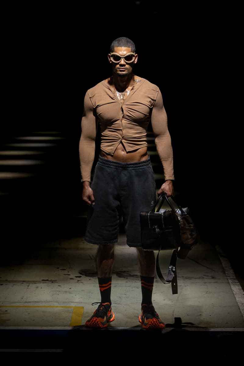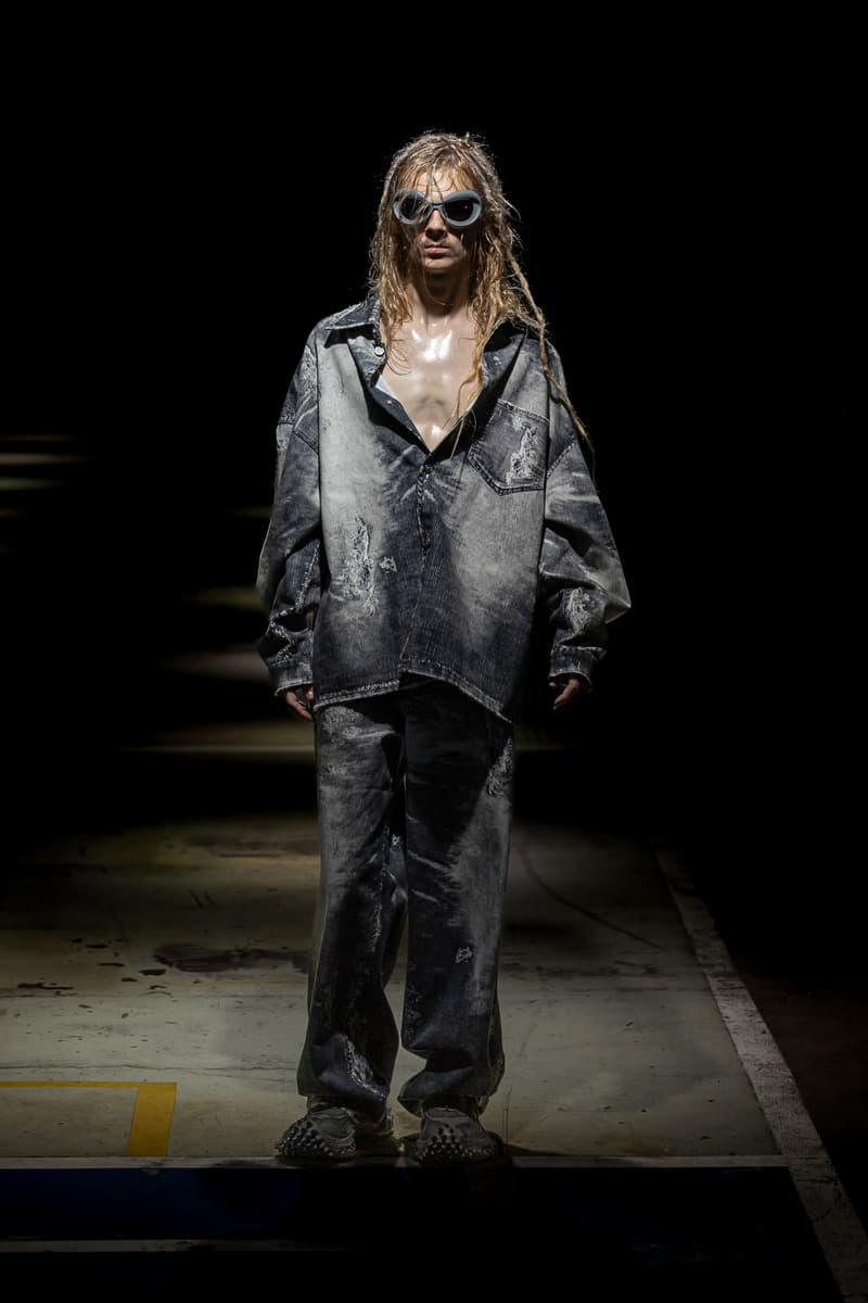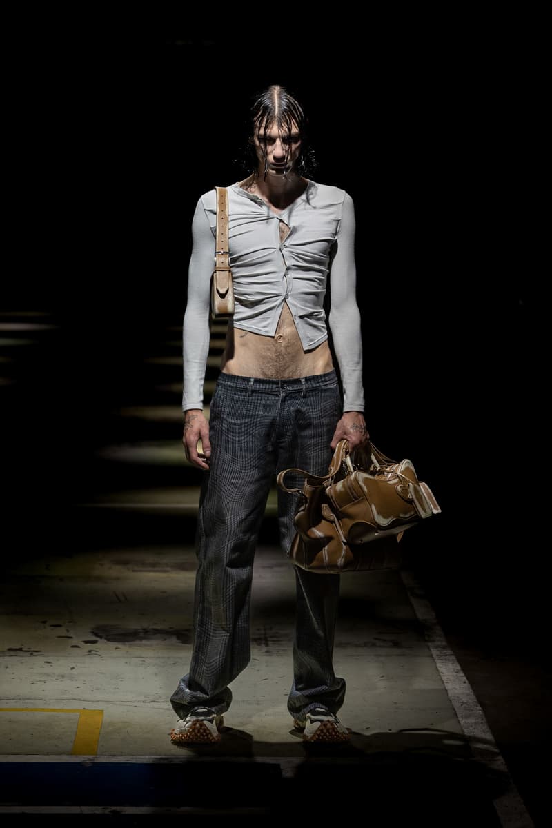 CAMPERLAB 携创意总监 Achilles Ion Gabriel 首度登陆巴黎男装周官方日程,于 62 Avenue de la République 发布全新 2026 春夏系列大秀。此举标志着品牌从制鞋世家蜕变为全维度时装屋的里程碑。 秀场构建于光影与幽暗交织的延时维度——废弃停车场中,烟雾与荧光在混凝土空间制造视觉谵妄。蓝色停车计时盘邀请函呼应工业场景,比利时视觉大师英奇·格罗格纳德(Inge Grognard) 以机油渍痕妆面、巴黎前卫发型艺术家路易·赫维(Louis Ghewy)以湿感发塑形感,共塑后工业时代躯体叙事。 CAMPERLAB 如水银流动的实验室本质,持续催化矛盾美学。多元美学倡导者舒艾布·阿里夫(Chouaïb Arif)借由街头素人与多元文化标识:中德混血音乐人莉娅·莉娅(Lia Lia)、美国变装艺术家吉吉·古德(Gigi Goode)、美国说唱歌手马特·牛克斯(Matt Ox)、法国电子先锋克洛伊(Coucou Chloe),及品牌标志性面孔:巴黎先锋拉亚·马提尼(Raya Martigny)与艺术家摄影师斯文·马奎德(Sven Marquardt)共铸选角诗篇,将人格化设计哲学淬炼为无性别宣言。柏林实验声景组合 Pandora’s Jukebox 创作实验声景,米凯莱·里佐(Michele Rizzo)编导身体叙事,共筑多重感官沉浸旅程。 CAMPERLAB 本季破界呈献 TORNADO 运动鞋,以尖刺结构外底撕裂常规触觉维度。同步将现象级鞋款「风暴」TORMENTA 解构为太阳镜单品,以颠覆性廓形重构光学宣言。 错视格纹西装,解构经典格纹的视觉游戏。品牌标志性工艺雕琢的鳄鱼压纹皮革与做旧擦色皮革,凝筑本系列核心单品——丹宁大衣及套装造型。以个性印花及甄选面料,凝铸独到美学基因。皮具支线推出全新 LAUKKU 与 BIG LUNSSI 非对称结构包款,以突破性扭曲廓形诠释前卫的实验性表达。 全新升级版 CAMPERLAB 品牌标识与字母组合首度亮相秀场及系列,宣告品牌脱离母公司 Camper 独立运营的新阶段,开启先锋实验美学独立叙事的新纪元。 |