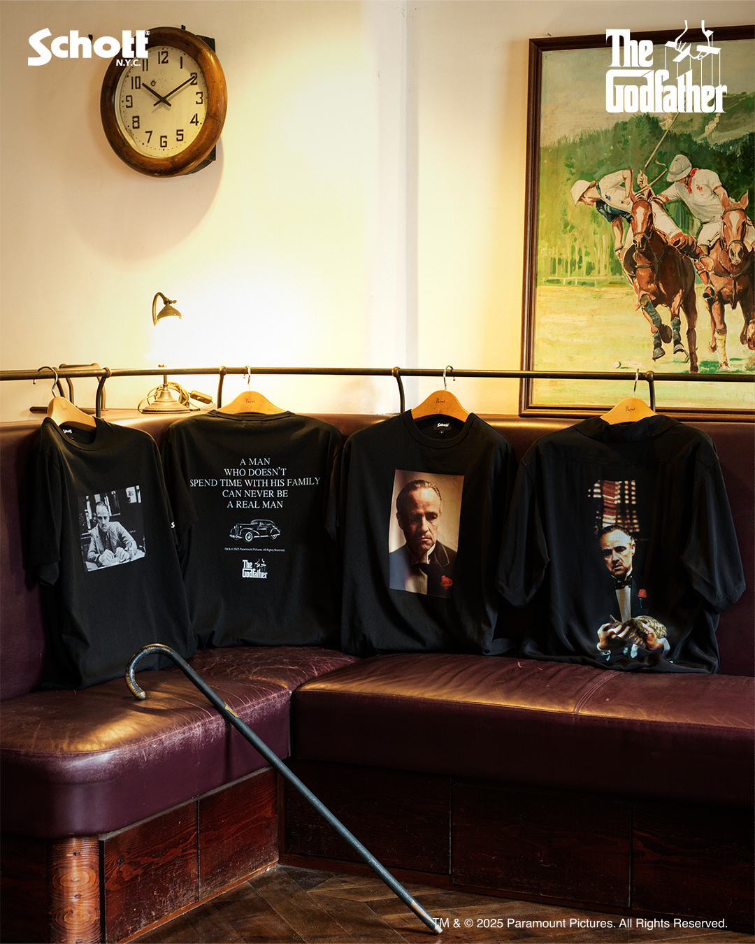 Schott JAPAN 继此前正式获得《THE GOD FATHER》系列电影版权之后俨然将「THE GOD FATHER COLLECTION」作为全新的定番系列。此次 Schott JAPAN 继续围绕马龙·白兰度的经典剧照以及台词做文章,带来四件不同的肖像短袖衬衫以及标语短袖 T 恤,纯黑设定让整个系列更具电影深沉的氛围。Schott JAPAN 全新「THE GOD FATHER COLLECTION」将于 7 月 4 日正式发售,感兴趣的大家不妨关注一波。  |