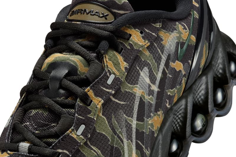 自 Nike 数月前推出全新 Air Max 成员 ——Air Max Dn8—— 以来,官方已陆续释出从张扬的「University Red」到「Snakeskin」等多款配色,并携手 Cav Empt、Better Gift Shop 等品牌推出联名版本。 品牌此次再度以动物元素为灵感,抢先揭晓全新「Tiger Camo」配色。绿、金、黑三色交织出虎纹迷彩鞋面;全黑后跟支架与同色中底及 8 组 Air 气室相呼应。侧后跟 Swoosh 低调隐匿于森林绿之中,与鞋舌米色「Air Max」标识相映成趣;半透明蓝色外底辅以红色细节点睛,完整收束整双鞋款的视觉层次。 Nike 尚未公布 Air Max Dn8「Tiger Camo」的具体发售日期。预计该配色将于今年稍后登陆 Nike SNKRS 及指定零售商,定价 200 美元。有兴趣的读者敬请继续锁定我们的后续报道。 |