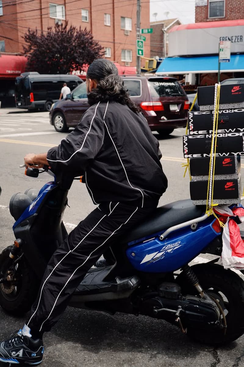 Awake NY 最新鞋款 Jordan V Boro 即将在品牌故乡纽约街头掀起踩街旋风;因此,没有比下东城街头 —— 以及街坊们的脚下 —— 更好的舞台来为这双抢眼新作造势。 Angelo Baque 于 2023 年夏天在 Orchard Street 开设品牌首家实体店,其影响力自此节节上升。此番发布的系列造型照《Our Block To Your Block》正是一封写给街坊的情书,正如品牌所言:「It takes a village」才能造就今日声量。 为彰显日益壮大的在地影响力,Awake 邀请多位下东城传奇面孔入镜,并选在 LAAMS、Scarr’s Pizza、Ron David Studio 及 Las’ Lap 等标志性店面前实景拍摄。 整个企划以「Community builds immunity」为内核信念,主角 Awake NY Jordan V Boro 带来粉调粉红与黑蓝两款配色,另有以 Air Jordan 4 混合重塑的靴型版本,仅限深蓝色。 想在《Our Block To Your Block》系列造型照中捕捉熟悉的下东城面孔,并近距离欣赏 Jordan V Boro 的细节,立即滑上方图库。 |