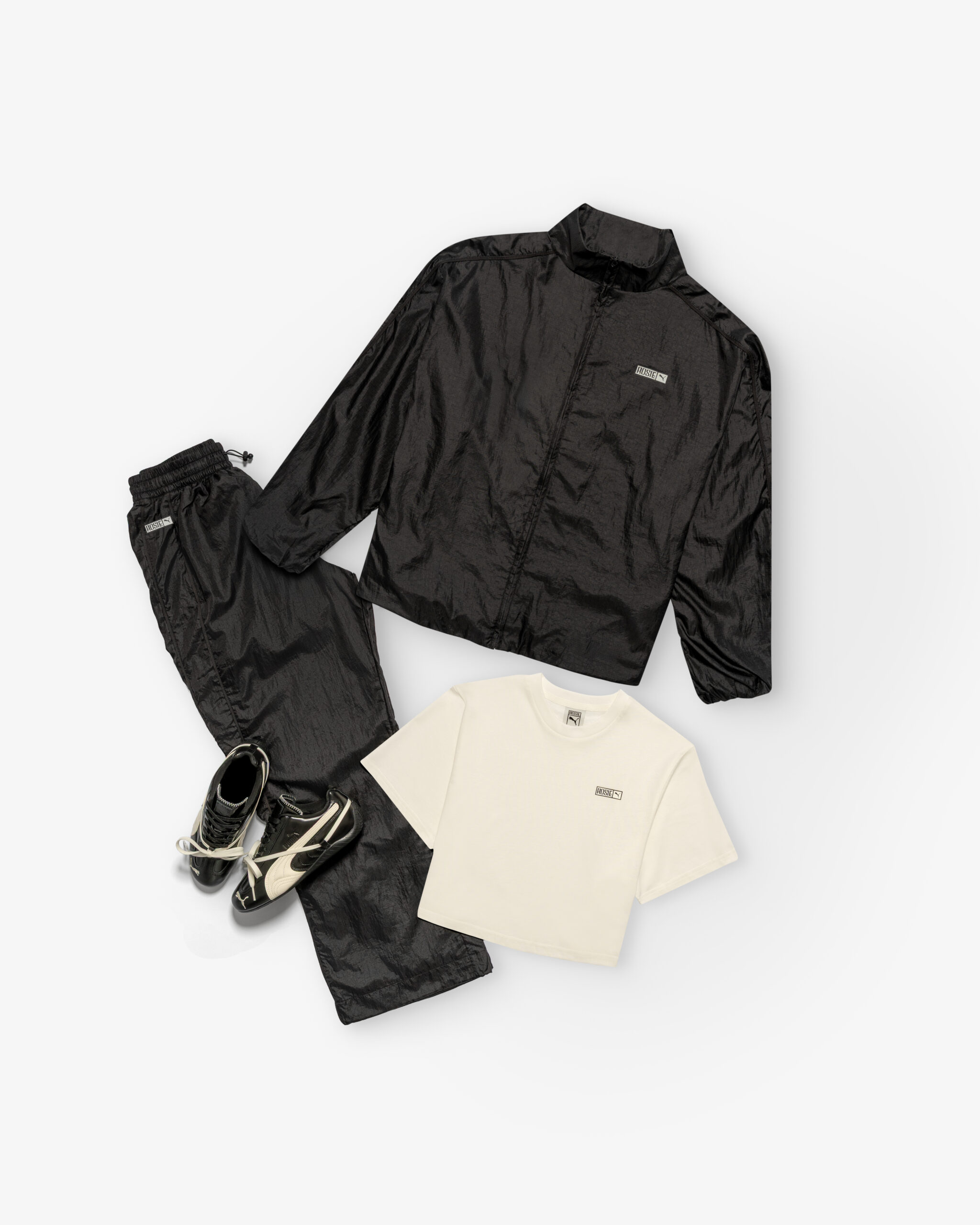 在成为 PUMA 全球大使与合作伙伴后,Rosé 正式推出与 PUMA 的首个合作系列。系列通过 Rosé 的视角展现独特魅力,融合了许多个人化的元素,最终呈现出一款充满创意的系列。宽松的基础单品与独具女性化的设计和定制元素相结合,汲取了 PUMA 运动服装设计的历史,同时还加入了特别的「ROSIE」字样图案,并对 PUMA Speedcat 进行了两种全新的设计诠释。Speedcat Ballet 采用了类似芭蕾舞鞋的鞋带设计,而 Speedcat OG Premium 则为鞋面增加了包裹式鞋带细节。 在服装方面,合作系列的设计理念传达了 Rosé 对运动和街头风格的诠释。通过对 PUMA 标志性运动套装的重新演绎,系列中的宽松运动夹克和休闲运动裤为经典款式注入了现代气息。休闲舒适的运动服灵感款式还包括半拉链夹克和全拉链卫衣,以及背后印有大胆「ROSIE」字样图案的网面上衣。系列中的 X-Small Duffle 包和 Micro Grip 包作为有趣的视觉亮点,以迷你尺寸为整体增添了个性和比例感。 这次合作的宣传片在大自然中拍摄,展现了「静谧的反叛」「真实自我表达」和「日常生活中的自信」等主题,完美呈现了 Rosé 的独特个性和时尚理念。 据悉,PUMA x ROSÉ 系列将于 2025 年 8 月 28 日正式上线,感兴趣的朋友届时可以通过 PUMA 官方渠道进行入手。  |