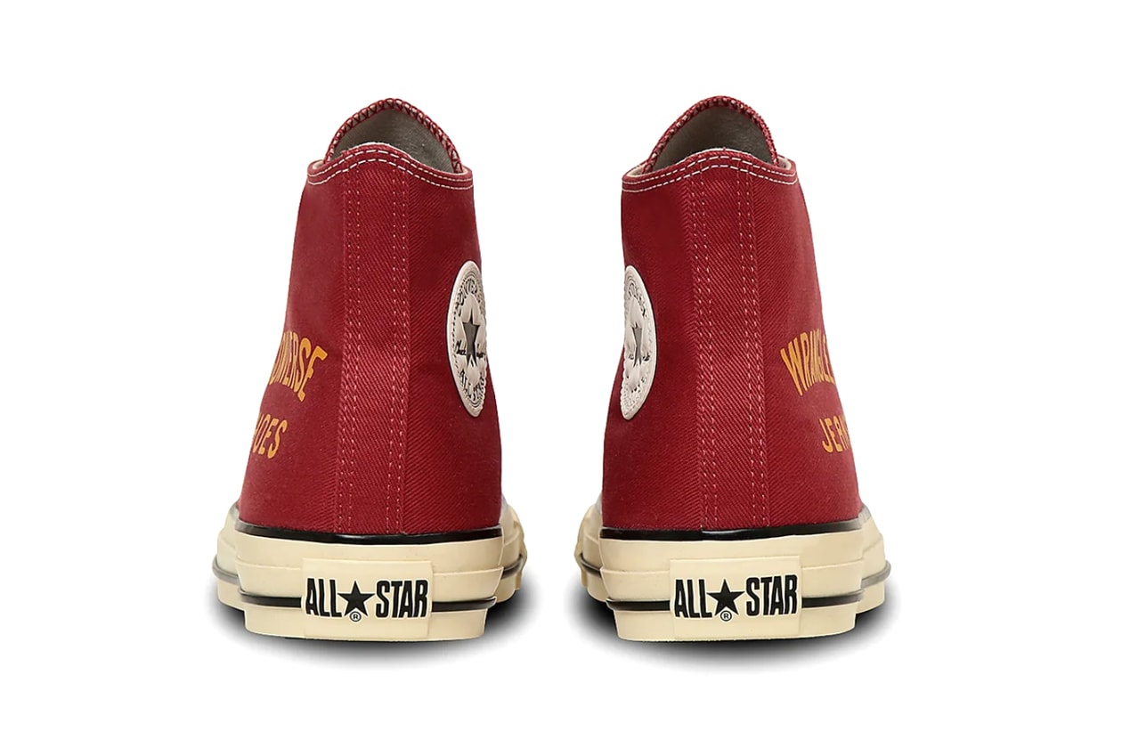 名称:Wrangler x Converse All Star Aged Hi 复古高帮配色:靛蓝、红色货号:31315590210, 31315600210 建议零售价:¥12,100 日元(约 80 美元),¥15,400 日元(约 100 美元)发售日期:9 月 12 日购买渠道:Converse.co.jp Wrangler 携手 Converse Japan 带来一款东西合璧的 All Star Aged Hi 联名之作。 其中,「Indigo」配色以日本 Kaihara 丹宁布打造鞋面,向 Wrangler 根深蒂固的牛仔血统致敬;深邃靛蓝调与浅色饰条形成对比,再辅以外露橙色车线、棕色皮革圆形 Converse 侧标及侧边 Wrangler 布标,层次感瞬间拉满。相对的「Red」配色汲取 50 年代牛仔竞技冠军专属红色夹克灵感,在左右鞋外侧分别绣上 “Wrangler Jeans” 与 “Converse Shoes” 字样,重现赛场传奇。 两款均配备标志性橡胶 All Star 后跟铭牌与联名鞋垫,置于米白色中底和经典华夫外底之上,并随鞋附赠蓝色或黑色鞋带,为整体造型画龙点睛。 |