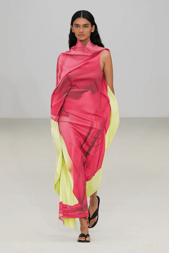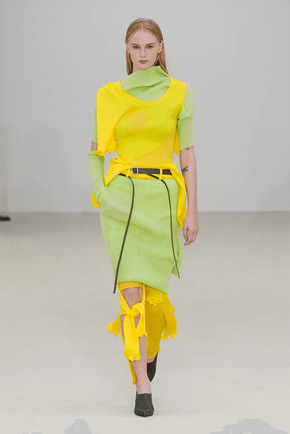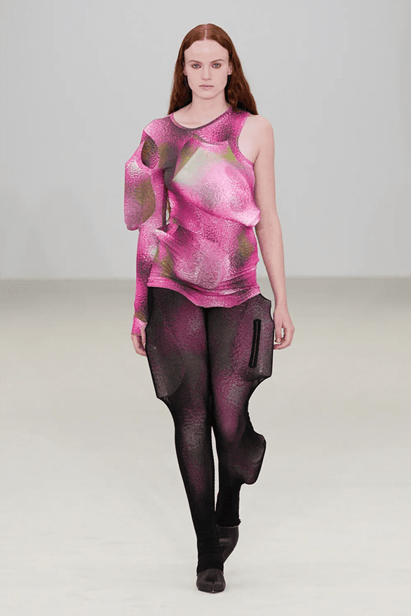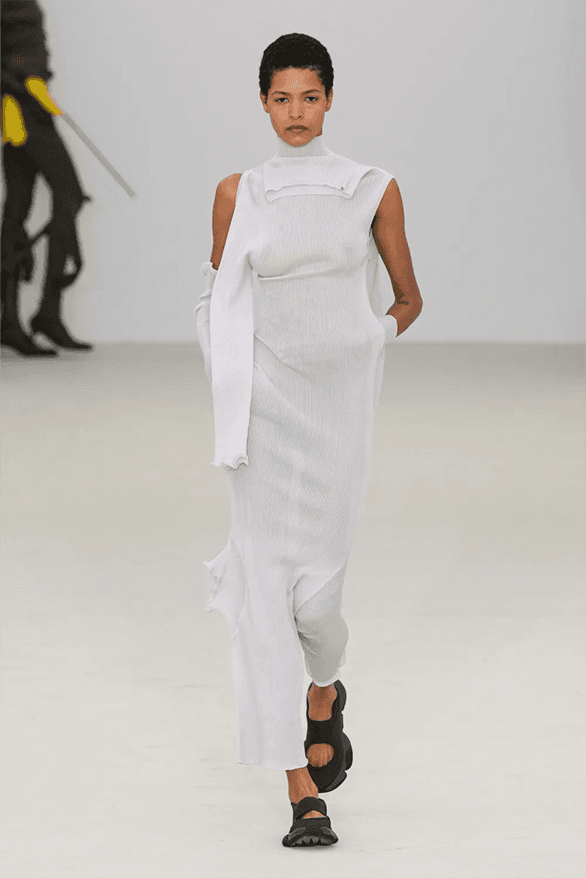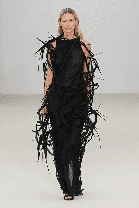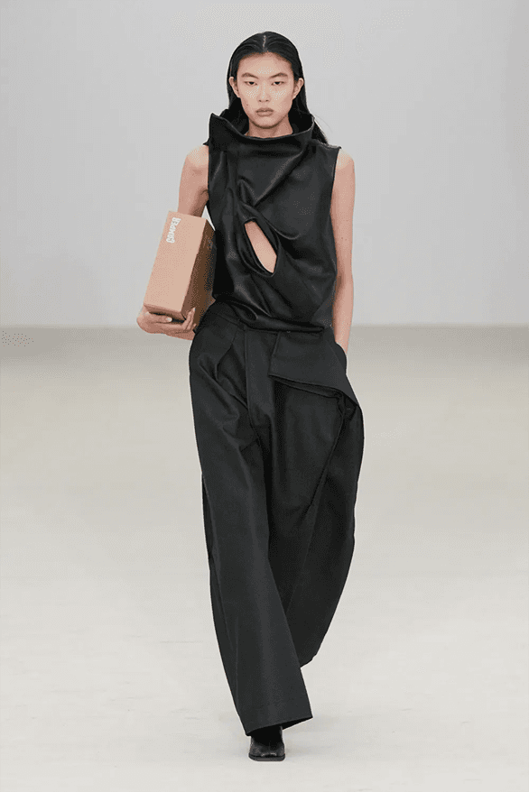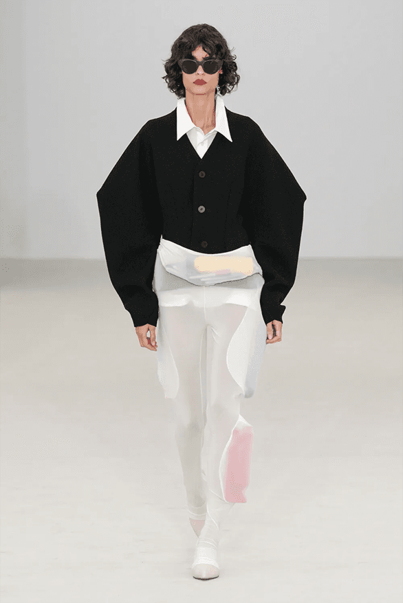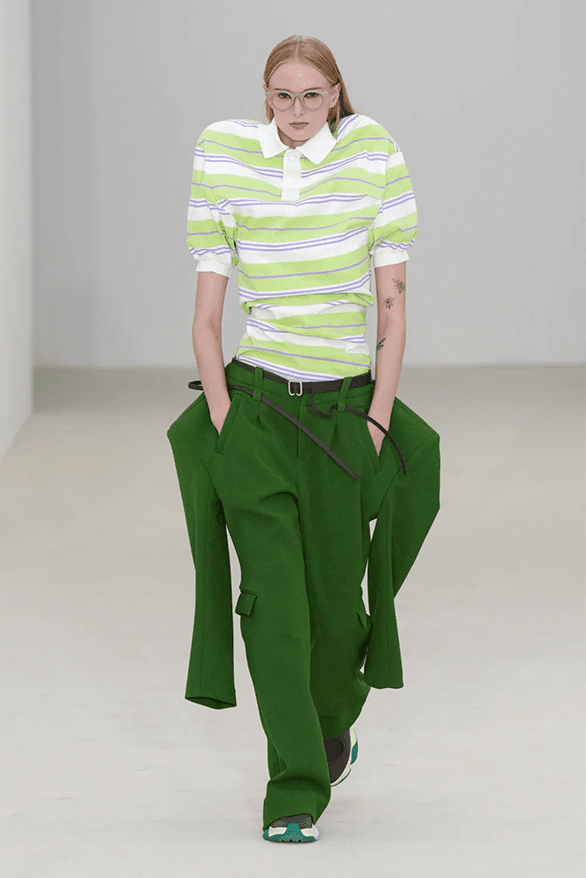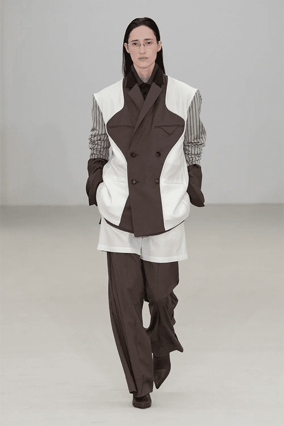 来到 2026 春夏系列,Issey Miyake 把身体视为一件「物」,以带点玩味的耸肩为巴黎时装周第五日揭幕。这家日本时装巨擘以现场乐声与雕塑感造型迎接来宾;系列将不对称肩垫铺展至印花 T 恤、间条 Polo 恤与未收边衬衫,邀请穿着者把自身形态视作一个自主个体。 系列以「Being Garments, Being Sentient」为题,设想衣物拥有自我意识,每件单品彷彿各有主张。它鼓励人们重思熟悉的穿衣规则:扣襟衬衫在背部敞开、袖子任其自由垂落、羊毛西装外套去掉一侧袖。外套被改裁成长裤;图案 T 恤与缩身版连帽卫衣则加上外凸肩部设计,整体节奏随 Tarek Atou 的现场音景推进。 垂坠与折裥在雕塑感连身裙上寻得新解,并延展至罗纹长袍、植物印花晚装,以及如万花筒般的错配色。压轴一幕,模特儿手捧崭新的 Camper Lab 鞋盒走过天桥,首度公开 2026 春夏系列的全新联名一脚蹬。 上方可进一步细看 Issey Miyake 2026 春夏系列。 |