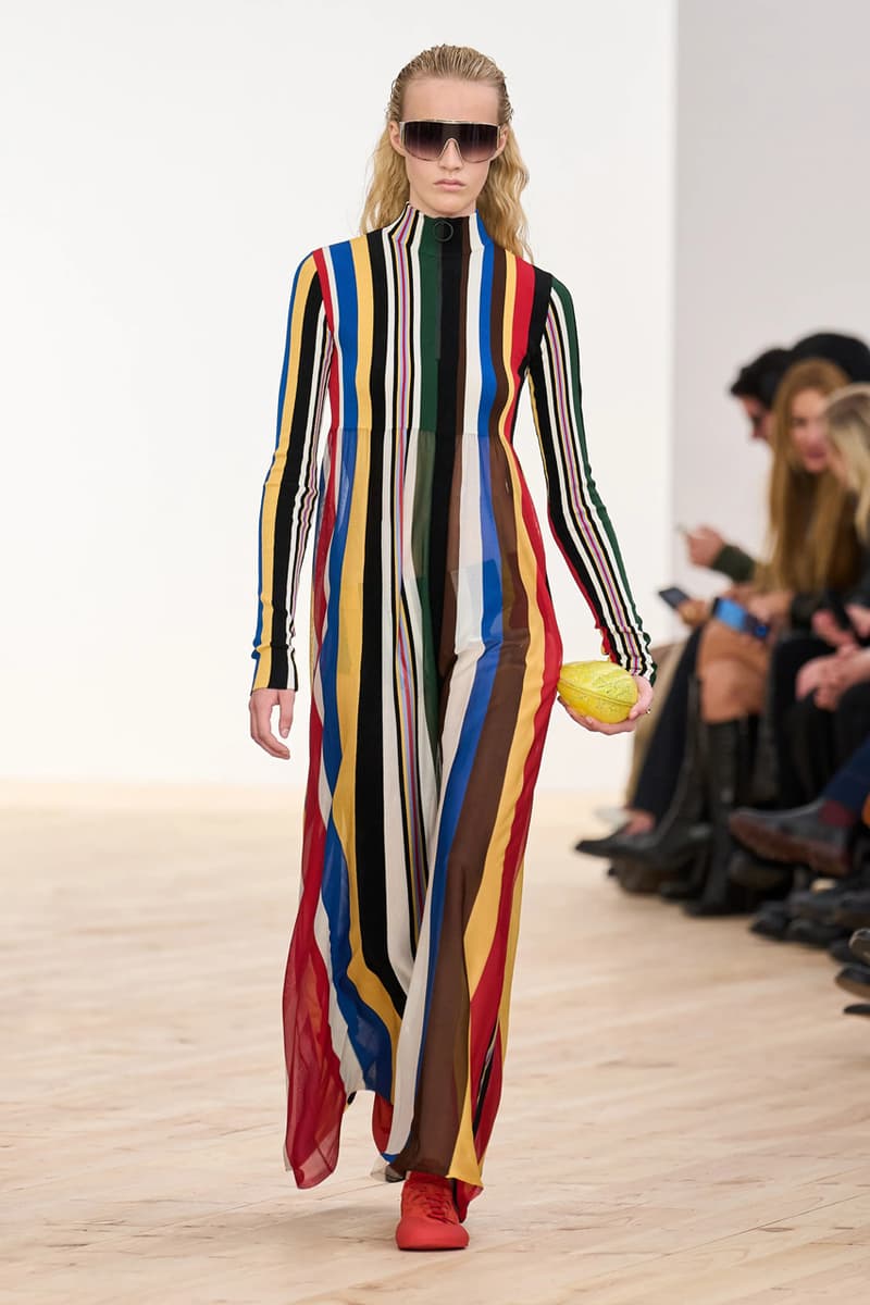 美国设计师 Jack McCollough 与 Lazaro Hernandez 正式从 Jonathan Anderson 手中接棒 Loewe,并将于本周五在 2026 春夏巴黎时装周发表二人首个女装系列。 接棒自 Anderson 之后,这对出身 Proenza Schouler 的新任设计师肩负不小压力:他的任期横跨逾十年,至离任仍广受赞誉,而这间时装屋本身亦近两个世纪历史。两人从一手建立的美国品牌,过档至拥有多代传承的欧洲时装屋;然而,这场双人首秀绝不令人失望。 延续 Anderson 的美学脉络,俏皮剪影带出超现实气息,同时展现对剪裁与皮革工艺的细致掌握。向 Loewe 的西班牙根源致敬,系列无论在明媚的地中海调色盘,抑或是沙滩取向的造型上,都显得格外大胆。 开场多套造型呼应 Anderson 在 2022 秋冬与 2023 秋冬所见的「Polly Pocket」式剪影。皮革迷你连身裙以三原色红、蓝、绿呈现,亦有缀以细致小花的图案款。其后,硬挺皮革延伸为迷你裙、西装外套与超大容量手袋,与系列整体的轻盈柔软形成鲜明对比。 从离身挺立的硬质皮革单品,到让人联想到 Flamenco 服饰的飘逸长裙,整体几乎不强调贴身剪裁。同时,荷叶边、隐藏色块与带有弹跳感的流苏等设计,令衣摆在微风中呈现悦目动感。不对称礼服以黑色外层覆面,背后拼接橙、洋红与黄色片段,模特儿走动间宛如火焰流动。另一边厢,斜裁裙摆在线条收束的西装外套后曳地延展,并带出微微膨胀的量感。 临近尾声,「海滩客」踏上天桥:虹彩毛巾式裹身裙与大尺幅条纹长裙亮相,彷彿把海滩小屋的遮阳篷整块拆下,随意改造成罩衫。看似寻常的针织 Polo 恤、背心与 T 恤,也被特意揉捏出宛如在阳光下曝晒多时的皱褶质感。这种带点戏谑的题旨,可视作向 Anderson 的奇趣风格致敬。 总括而言,Jack McCollough 与 Lazaro Hernandez 展现出强大的适应力:一方面尊重并延续 Loewe 的标志性元素,另一方面在 Anderson 留下的基调上注入新鲜能量。 完整系列请见上方图集,更多时尚产业最新观察,请持续关注 Yobest.com。 |