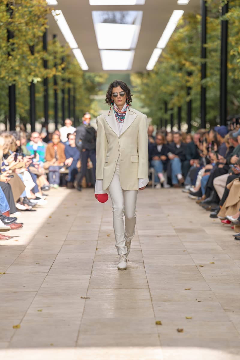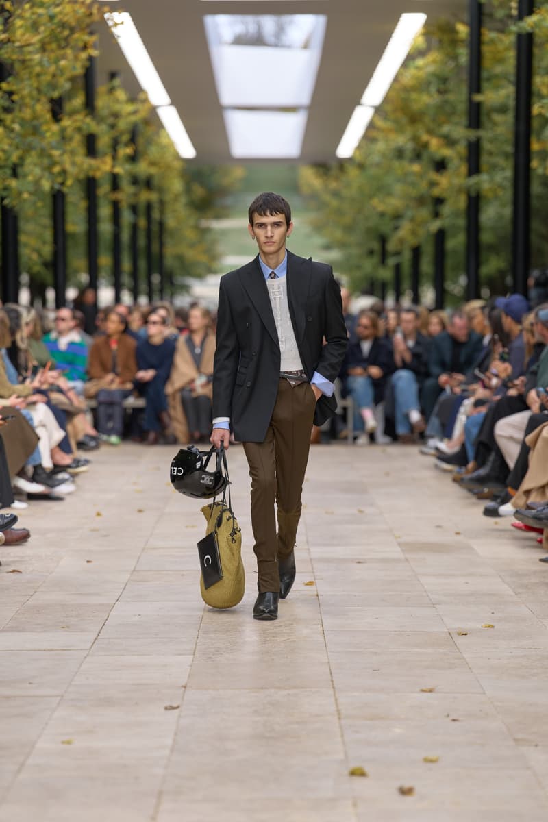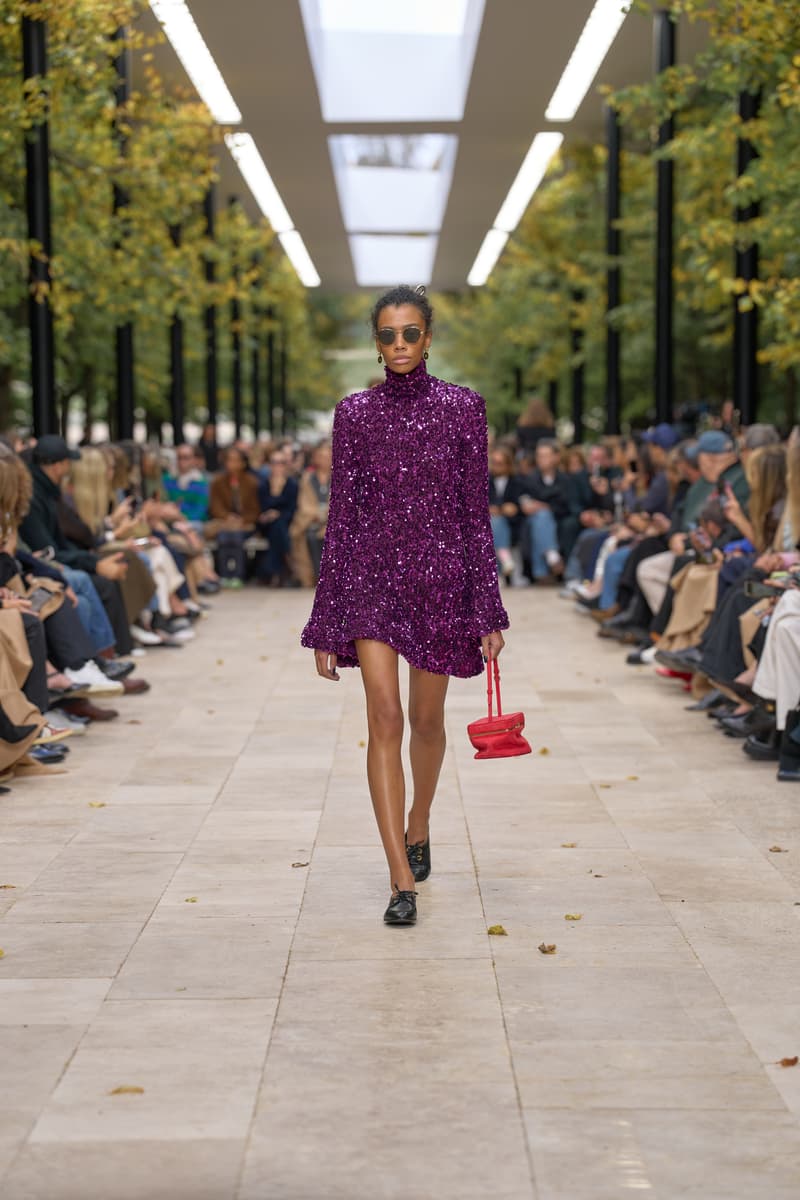 在七月完成首秀之后,美国设计师 Michael Rider 再度呈现他对 CELINE 的愿景。他于巴黎时装周发布第二个系列,带来一个大胆自信、蓄势重掌 T 台话语权的 CELINE。在 Hedi Slimane 去年离任之后,Rider 为这家时装屋想象了一个全新的起点——以学院派廓形、锋利剪裁与毫不妥协的结构感为底色。 2026 春夏延续他开篇的叙事——一则关于考究工艺与灵动用色的推演。这个涵盖 59 套造型的系列在季节之间自如切换,将男装与女装的语汇柔和糅合为一场流动的对话。以流苏与图案连衣裙开场,随后是双排扣权力西装,内搭有色衬衫,并以彩虹色调水桶包点睛。 垂坠连衣裙、开衩橄榄球上衣与满饰亮片的造型,透出克制的自信;双色风衣、夸张腰带与印有 CELINE 标识的机车头盔,则一骑绝尘驶向巴黎的暮色。浸润于华丽与气场之中,Michael Rider 宣告 CELINE 奢华新纪元的曙光。 更多精彩,移步上方图集近赏 CELINE SS26。 |