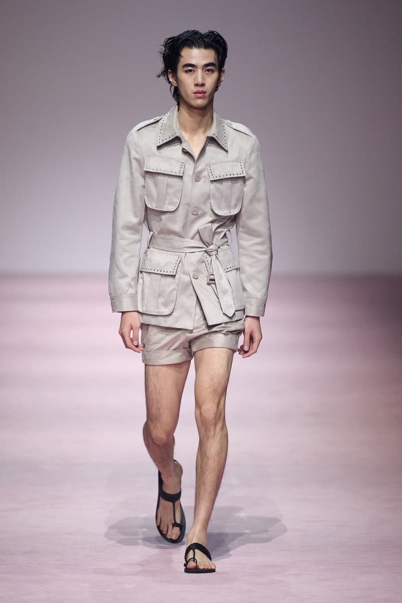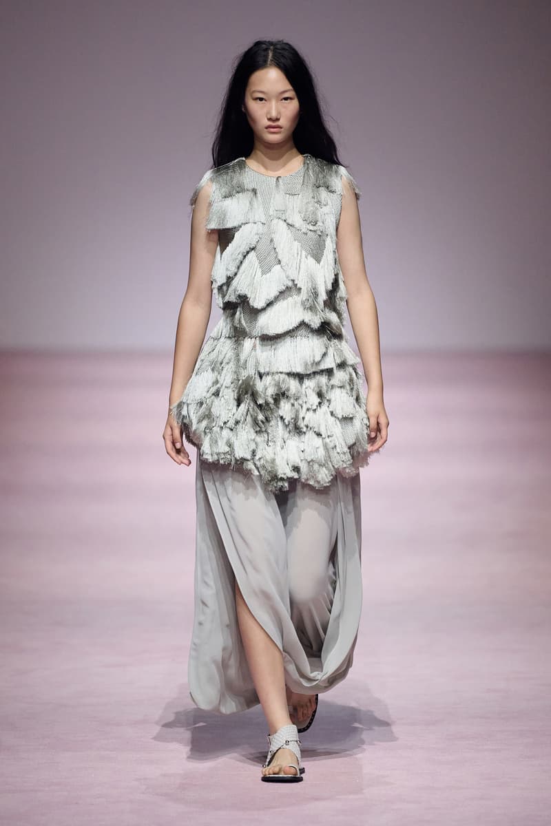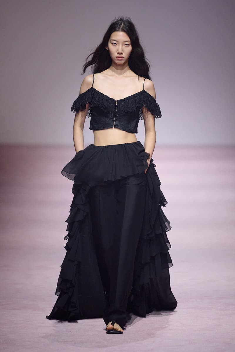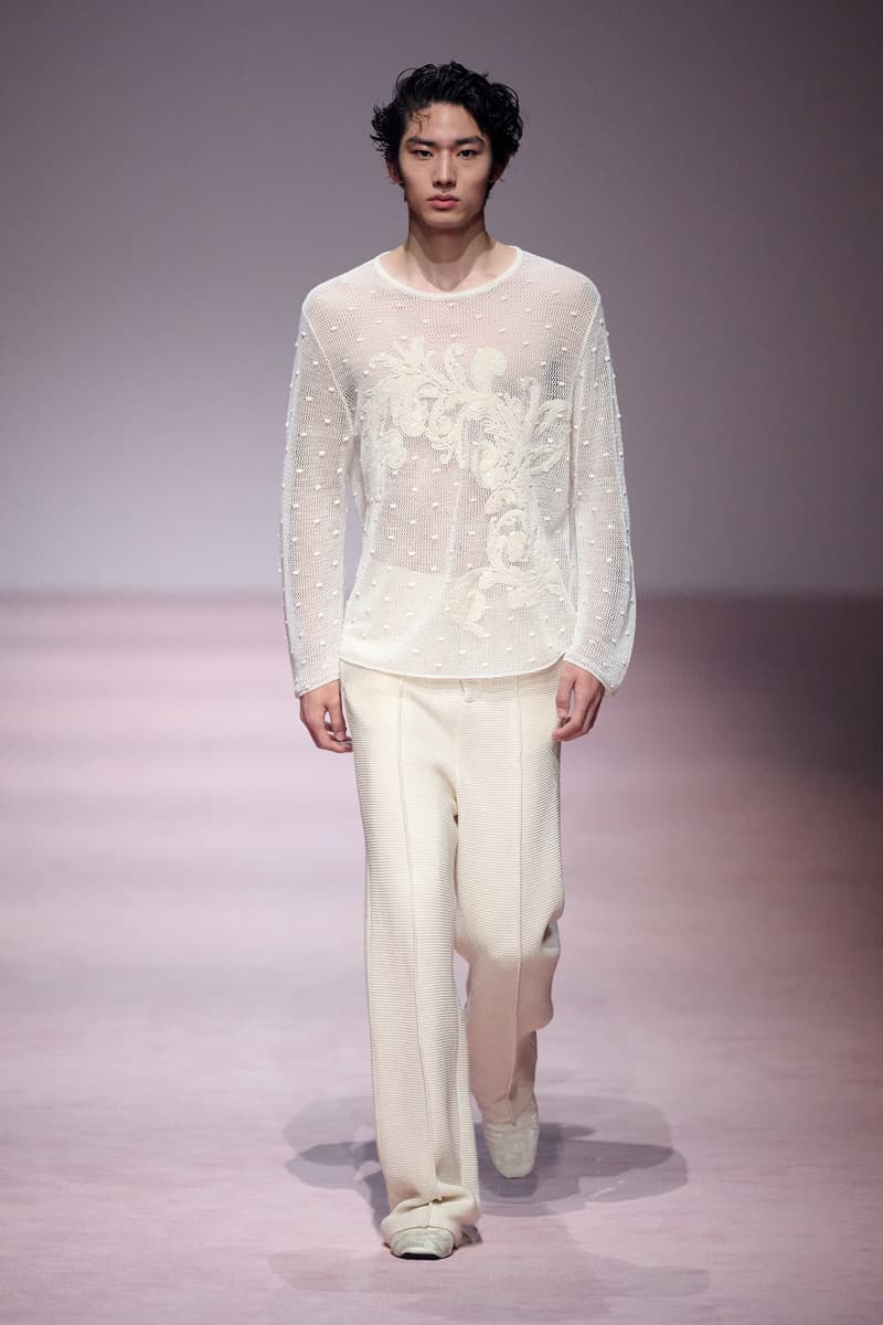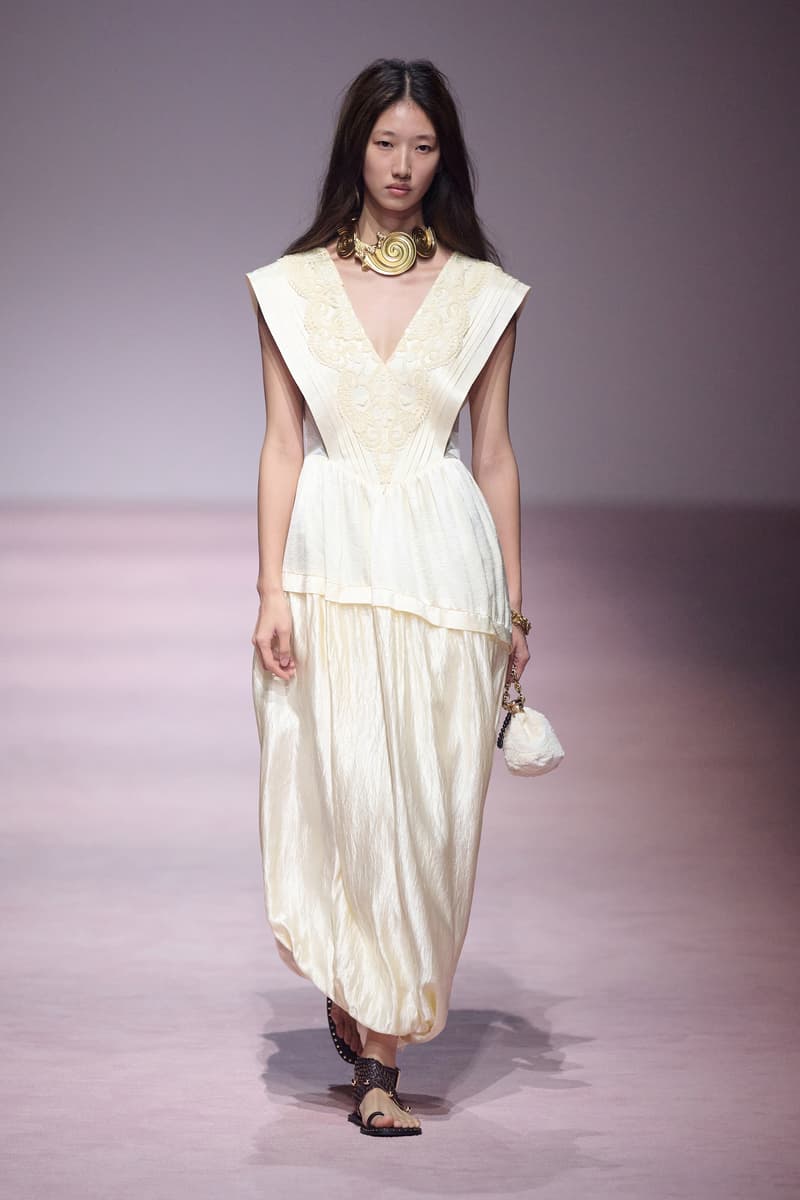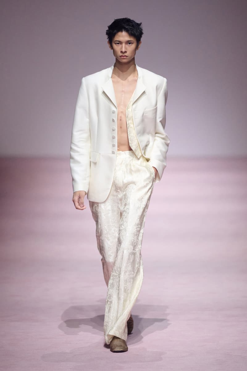 XU ZHI 2026 春夏系列以 Arthur Rimbaud 这位浪漫主义诗人的精神世界为起点,探寻理想主义与颓美的边界,将其漂泊的诗意底色与游历轨迹转化为一场跨越世纪的美学对话。 设计师陈序之从垂坠褶皱、东欧刺绣、吉普赛流苏与巴黎沙龙绸缎中汲取灵感,以解构与拼贴的手法带来纯粹而恒常的设计张力。融合了来自不同时代与地域的多元文化符号、美学印记与图案纹样:细腻的褶皱肌理与波西米亚风格手工艺在面料间轻盈流转;古希腊爱奥尼克柱式的优雅与陶器上的棕榈纹、回纹勾勒出古典之美;William Morris 经典繁复的自然元素则经过提花与立体珠绣的重新演绎,呈现出一场融合古典浪漫与率真叛逆的精神对话。 本季,品牌标志性的编绳流苏与精致刺绣被赋予了新的诠释:水溶蕾丝的轻盈质地与贴布绣、盘带绣的立体层次相得益彰;受新艺术运动启发的蜿蜒流畅、不对称的藤蔓花卉被转化为立体的珠绣细节;William Morris 笔下缠绕的枝蔓、盛开的花簇与鸣叫的鸟儿在典雅的提花中绽放。这些细腻的工艺细节仿佛呼应着兰波笔下对永恒的追寻,以针线描绘诗人漫游时所见的异域风情。绣线游走于面料之间,或如荒野中摇曳的青草,或似远方陌生城市里斑驳的街灯,一针一线都在诉说着对自由与远方的向往。 秀场演绎以一种渐进的叙事展开:从静谧的旷野气息起始,随着造型的推进,廓形与材质逐渐呈现出丰富变化。秀场造型悉心呈现了与英国经典功能性时尚品牌 HUNTER 的特别合作,标志性「Original Wellington Boot」为合作造型注入了随性而实用的探索气息。这些造型仿佛在讲述一个游历于都市与荒野之间的探索者故事,每一个细节都在暗示着不受拘束的旅途精神,巧妙地连接着经典传统与现代、优雅与实用,呼应着「追寻」与「逃离」的永恒主题,展现出兰波式探索远方的不息渴望。 秀场铺就柔和的粉色地毯,仿佛通往远方的诗意旅途。现场音乐由 Tutu Chan 创作,12 弦鲁特琴的开场旋律与层叠的弦乐、海浪声交织,在 E 和声小调与 C 小调间流转。伴随着受兰波启发再创诗句的念白,营造出梦境般的漂泊感,整场如诗人旅途的延伸,于现实与幻象之间,追寻那片「生活在别处」的浪漫。 这场诗意的表达是兰波式漂泊的最佳注脚,这个系列不仅是对浪漫主义精神的致敬,更是对当代人心灵自由的深情呼唤。在快速变迁的时代,XU ZHI 用细腻的工艺与创新的设计理念,为观众开启了一扇通向诗意栖居的大门。对自由与远方的不懈探索,终将指引我们找到那个「别处」的浪漫世界。 |