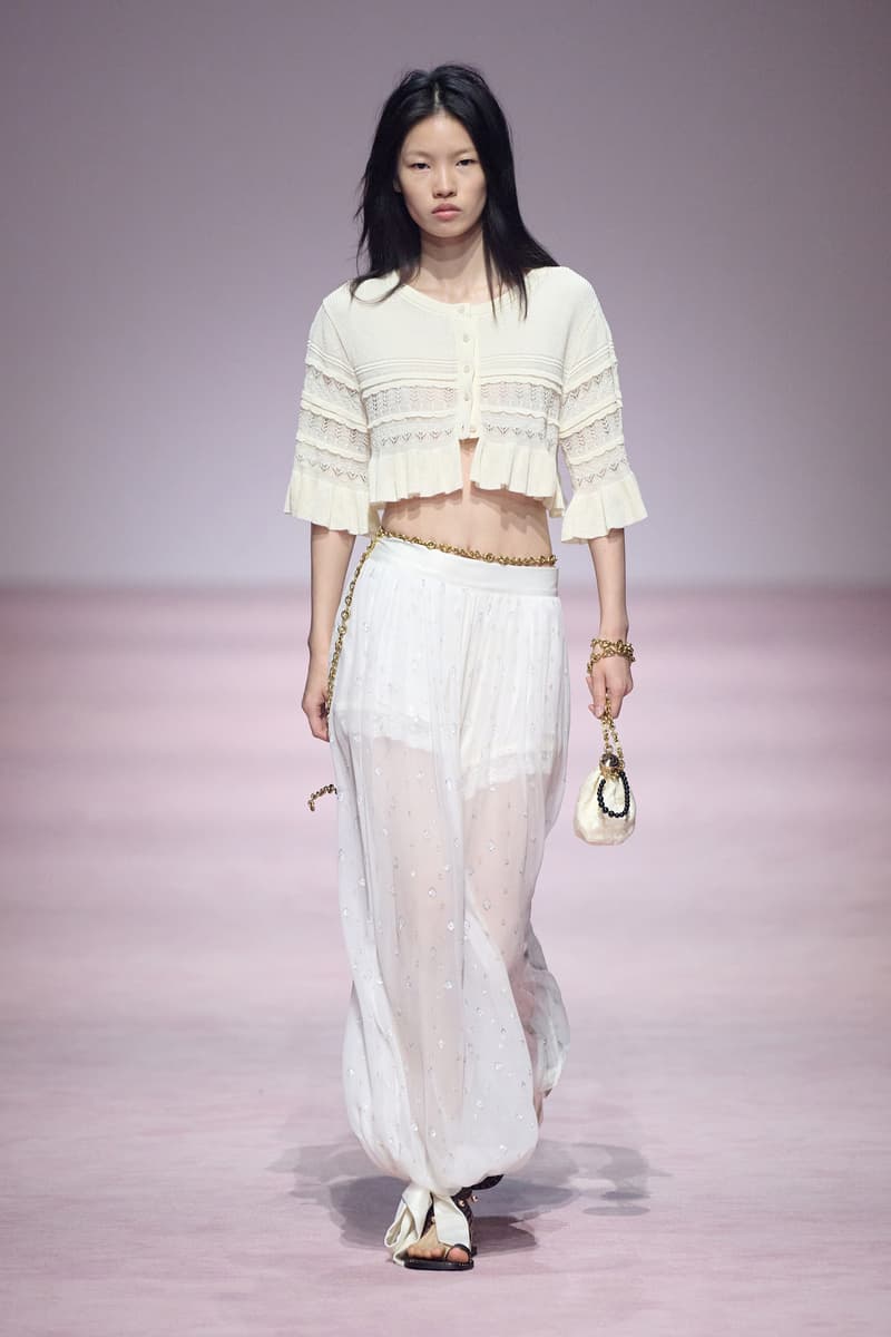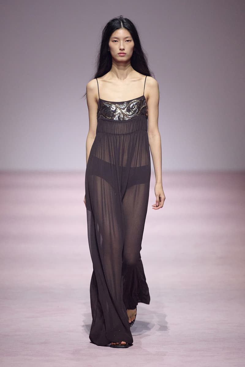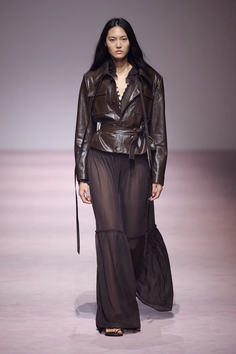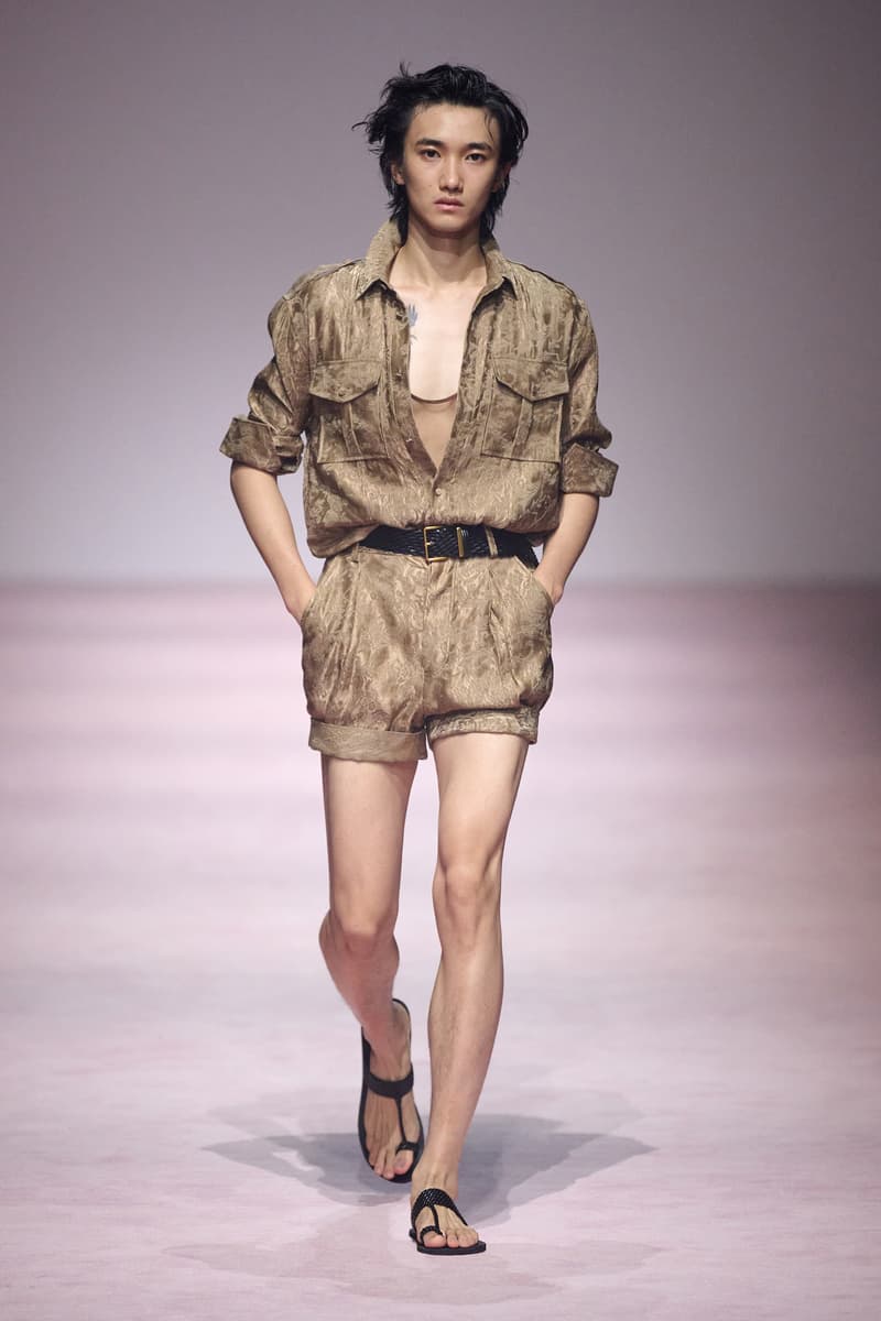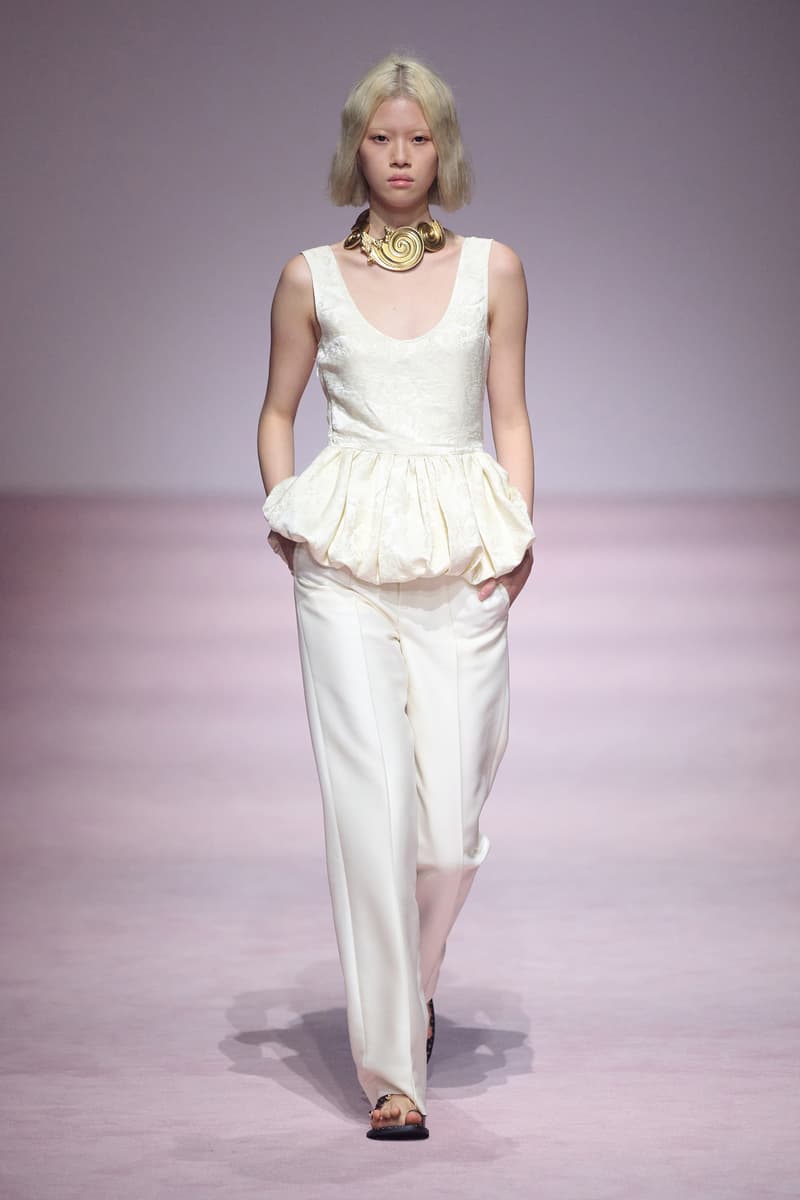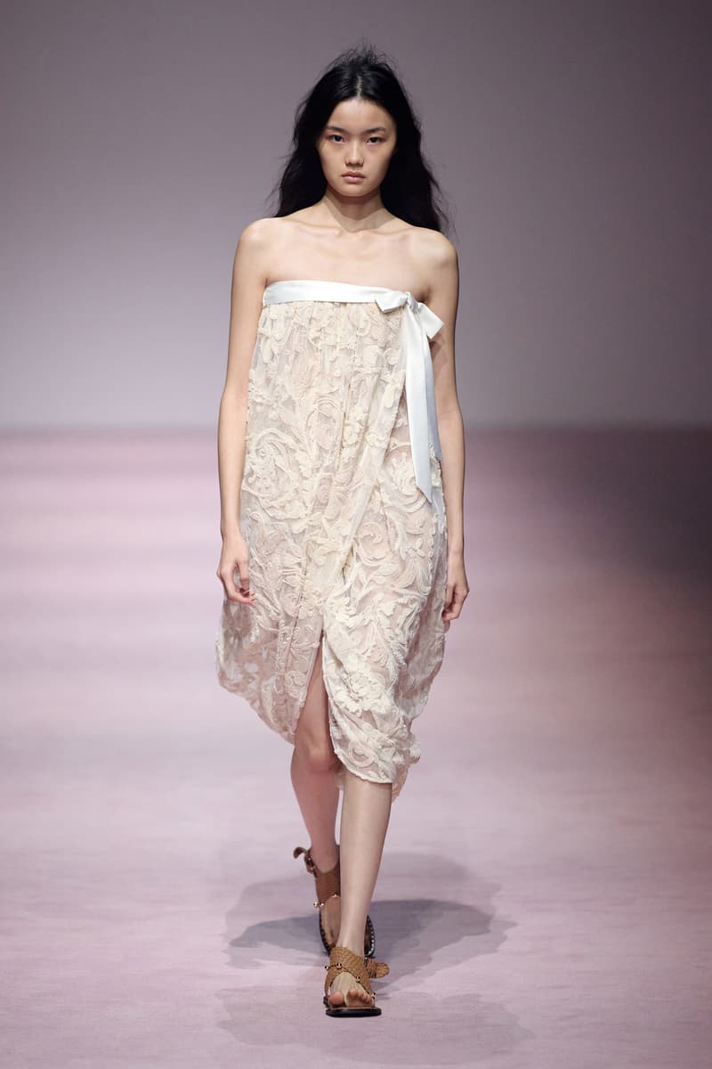 XU ZHI 2026 春夏系列以 Arthur Rimbaud 这位浪漫主义诗人的精神世界为起点,探寻理想主义与颓美的边界,将其漂泊的诗意底色与游历轨迹转化为一场跨越世纪的美学对话。 设计师陈序之从垂坠褶皱、东欧刺绣、吉普赛流苏与巴黎沙龙绸缎中汲取灵感,以解构与拼贴的手法带来纯粹而恒常的设计张力。融合了来自不同时代与地域的多元文化符号、美学印记与图案纹样:细腻的褶皱肌理与波西米亚风格手工艺在面料间轻盈流转;古希腊爱奥尼克柱式的优雅与陶器上的棕榈纹、回纹勾勒出古典之美;William Morris 经典繁复的自然元素则经过提花与立体珠绣的重新演绎,呈现出一场融合古典浪漫与率真叛逆的精神对话。 本季,品牌标志性的编绳流苏与精致刺绣被赋予了新的诠释:水溶蕾丝的轻盈质地与贴布绣、盘带绣的立体层次相得益彰;受新艺术运动启发的蜿蜒流畅、不对称的藤蔓花卉被转化为立体的珠绣细节;William Morris 笔下缠绕的枝蔓、盛开的花簇与鸣叫的鸟儿在典雅的提花中绽放。这些细腻的工艺细节仿佛呼应着兰波笔下对永恒的追寻,以针线描绘诗人漫游时所见的异域风情。绣线游走于面料之间,或如荒野中摇曳的青草,或似远方陌生城市里斑驳的街灯,一针一线都在诉说着对自由与远方的向往。 秀场演绎以一种渐进的叙事展开:从静谧的旷野气息起始,随着造型的推进,廓形与材质逐渐呈现出丰富变化。秀场造型悉心呈现了与英国经典功能性时尚品牌 HUNTER 的特别合作,标志性「Original Wellington Boot」为合作造型注入了随性而实用的探索气息。这些造型仿佛在讲述一个游历于都市与荒野之间的探索者故事,每一个细节都在暗示着不受拘束的旅途精神,巧妙地连接着经典传统与现代、优雅与实用,呼应着「追寻」与「逃离」的永恒主题,展现出兰波式探索远方的不息渴望。 秀场铺就柔和的粉色地毯,仿佛通往远方的诗意旅途。现场音乐由 Tutu Chan 创作,12 弦鲁特琴的开场旋律与层叠的弦乐、海浪声交织,在 E 和声小调与 C 小调间流转。伴随着受兰波启发再创诗句的念白,营造出梦境般的漂泊感,整场如诗人旅途的延伸,于现实与幻象之间,追寻那片「生活在别处」的浪漫。 这场诗意的表达是兰波式漂泊的最佳注脚,这个系列不仅是对浪漫主义精神的致敬,更是对当代人心灵自由的深情呼唤。在快速变迁的时代,XU ZHI 用细腻的工艺与创新的设计理念,为观众开启了一扇通向诗意栖居的大门。对自由与远方的不懈探索,终将指引我们找到那个「别处」的浪漫世界。 |