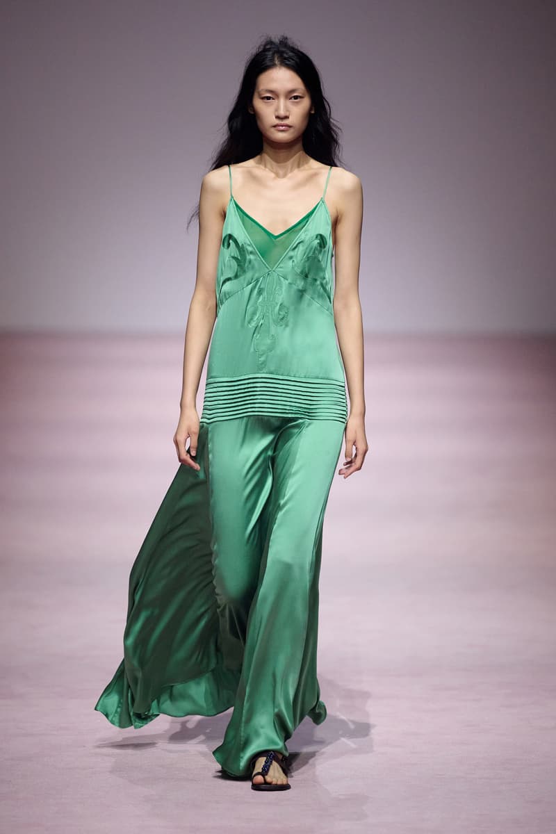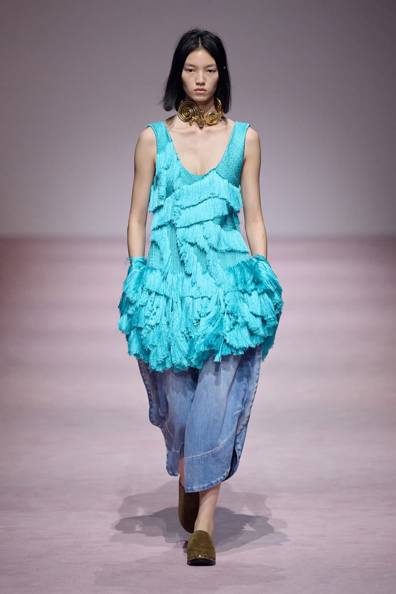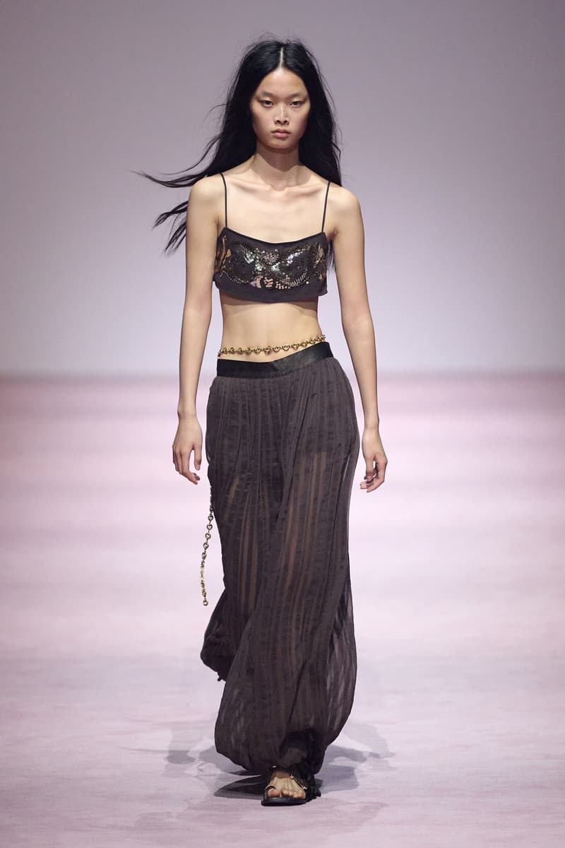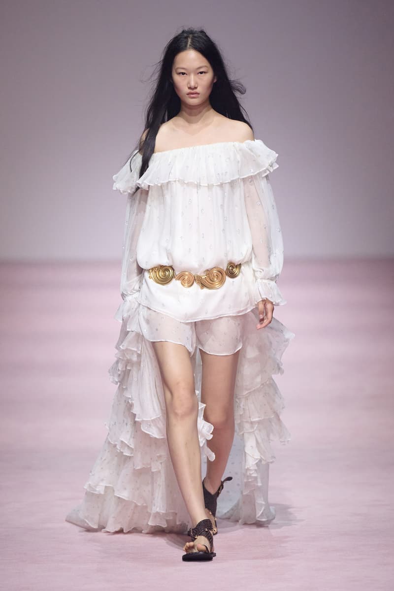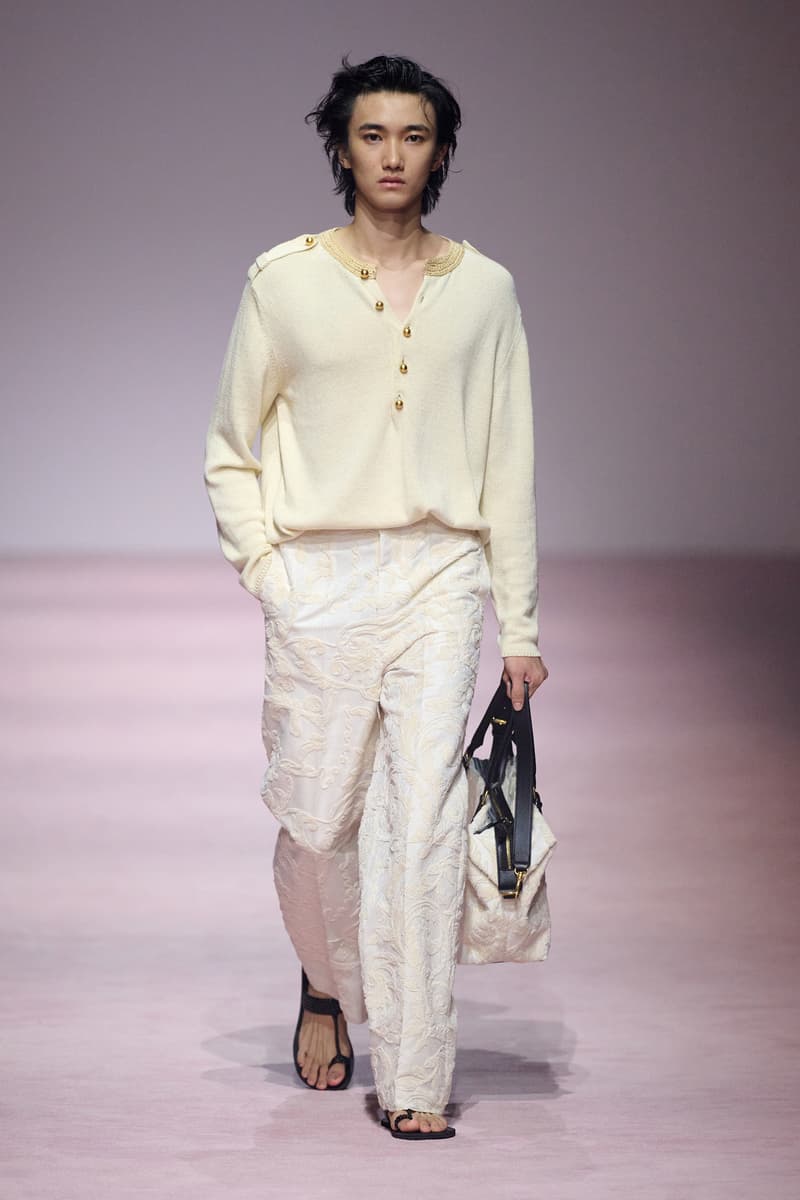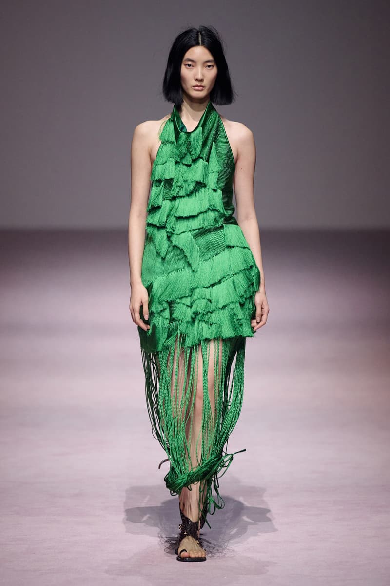 XU ZHI 2026 春夏系列以 Arthur Rimbaud 这位浪漫主义诗人的精神世界为起点,探寻理想主义与颓美的边界,将其漂泊的诗意底色与游历轨迹转化为一场跨越世纪的美学对话。 设计师陈序之从垂坠褶皱、东欧刺绣、吉普赛流苏与巴黎沙龙绸缎中汲取灵感,以解构与拼贴的手法带来纯粹而恒常的设计张力。融合了来自不同时代与地域的多元文化符号、美学印记与图案纹样:细腻的褶皱肌理与波西米亚风格手工艺在面料间轻盈流转;古希腊爱奥尼克柱式的优雅与陶器上的棕榈纹、回纹勾勒出古典之美;William Morris 经典繁复的自然元素则经过提花与立体珠绣的重新演绎,呈现出一场融合古典浪漫与率真叛逆的精神对话。 本季,品牌标志性的编绳流苏与精致刺绣被赋予了新的诠释:水溶蕾丝的轻盈质地与贴布绣、盘带绣的立体层次相得益彰;受新艺术运动启发的蜿蜒流畅、不对称的藤蔓花卉被转化为立体的珠绣细节;William Morris 笔下缠绕的枝蔓、盛开的花簇与鸣叫的鸟儿在典雅的提花中绽放。这些细腻的工艺细节仿佛呼应着兰波笔下对永恒的追寻,以针线描绘诗人漫游时所见的异域风情。绣线游走于面料之间,或如荒野中摇曳的青草,或似远方陌生城市里斑驳的街灯,一针一线都在诉说着对自由与远方的向往。 秀场演绎以一种渐进的叙事展开:从静谧的旷野气息起始,随着造型的推进,廓形与材质逐渐呈现出丰富变化。秀场造型悉心呈现了与英国经典功能性时尚品牌 HUNTER 的特别合作,标志性「Original Wellington Boot」为合作造型注入了随性而实用的探索气息。这些造型仿佛在讲述一个游历于都市与荒野之间的探索者故事,每一个细节都在暗示着不受拘束的旅途精神,巧妙地连接着经典传统与现代、优雅与实用,呼应着「追寻」与「逃离」的永恒主题,展现出兰波式探索远方的不息渴望。 秀场铺就柔和的粉色地毯,仿佛通往远方的诗意旅途。现场音乐由 Tutu Chan 创作,12 弦鲁特琴的开场旋律与层叠的弦乐、海浪声交织,在 E 和声小调与 C 小调间流转。伴随着受兰波启发再创诗句的念白,营造出梦境般的漂泊感,整场如诗人旅途的延伸,于现实与幻象之间,追寻那片「生活在别处」的浪漫。 这场诗意的表达是兰波式漂泊的最佳注脚,这个系列不仅是对浪漫主义精神的致敬,更是对当代人心灵自由的深情呼唤。在快速变迁的时代,XU ZHI 用细腻的工艺与创新的设计理念,为观众开启了一扇通向诗意栖居的大门。对自由与远方的不懈探索,终将指引我们找到那个「别处」的浪漫世界。 |