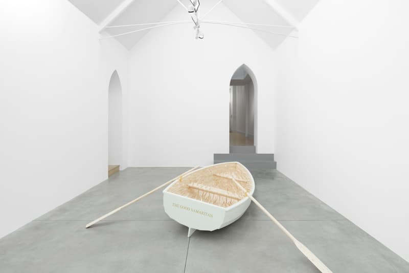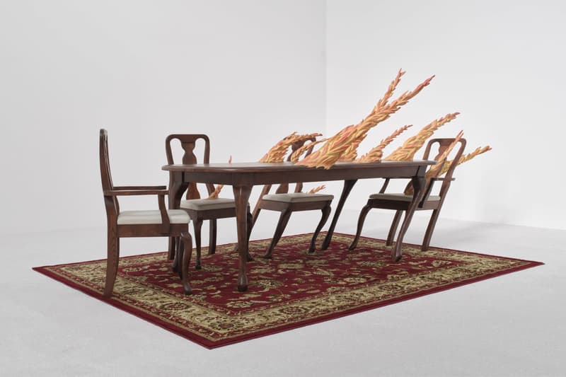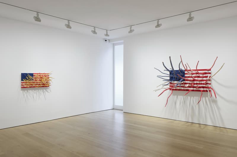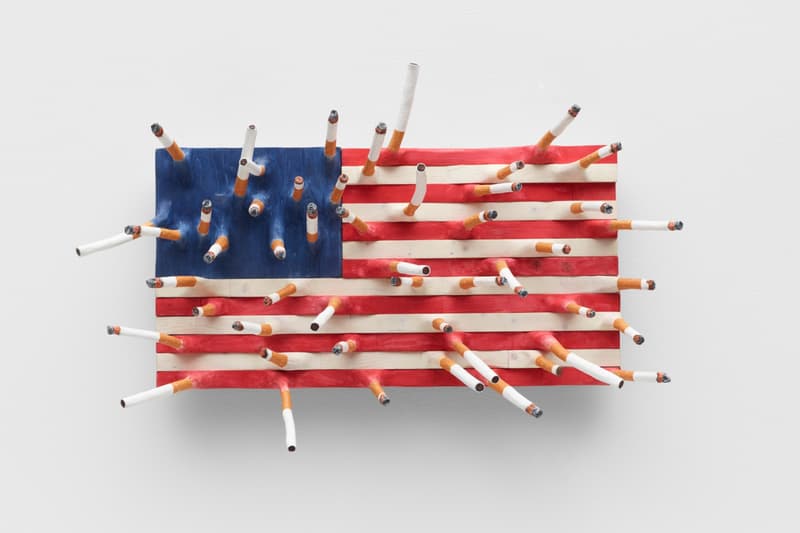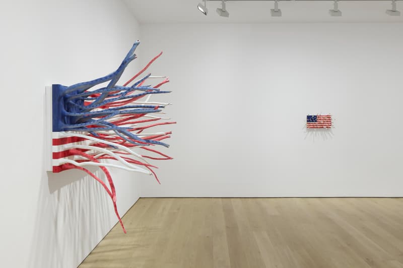 在伦敦里森画廊,雕塑家 Hugh Hayden 揭幕 Hughmanity,这是他在该画廊英国空间的第四次个展。延续其对共融、身份与归属的探究,这位来自达拉斯的艺术家带来一组全新木质作品,直面「同化」与其常常并不体面的代价之间的张力。 每件作品都始于一棵树——砍伐、切割、雕琢、层压——再被重塑为富于张力的文化遗物:既保留木材的原始性格,又见精妙的雕塑手感。此处,Hayden 引入上色表面,标示其材质语言的一次演进。 在展厅各处,熟悉的符号被重释为焦虑、反抗与信仰的象征。其中一组作品以 50 支香烟、50 支铅笔或 50 条响尾蛇取代美国国旗上的 50 颗星,如新闻稿所言,呈现出「一个承受重压的国家」,并就身份在国家与个体层面的持续抹除、改写与重构,展开一场有力的思辨。 在另一处,Hayden 将批评延伸至服饰语境。西装外套布满荆刺,将地位象征化作令人不适的器具;而包覆树皮的正装皮鞋,则凸显在「融入」与「被那些承诺接纳的结构所吞噬」之间的张力。 展览的核心之作「The Last Supper」,以一张被拉长、被火焰吞没的餐桌为主体,指向贯穿家庭叙事的悲喜与共的复杂交织。旁侧,13 口嵌入非洲面具的铸铜煎锅,令人想起 Hayden 的 American Food 系列,以工艺将「滋养」与「使命」相连。 「综观这些作品,它们为 Hughmanity 注入一种在圣经寓言与当代批评之间摆荡的精神底色,」画廊写道。通过蜕变,Hayden 邀请观者重新思考归属、信仰以及人的处境本身那脆弱的结构。 展览现已对外开放,展至11月1日。 里森画廊 伦敦 27 Bell St, London NW1 5BY, United Kingdom |