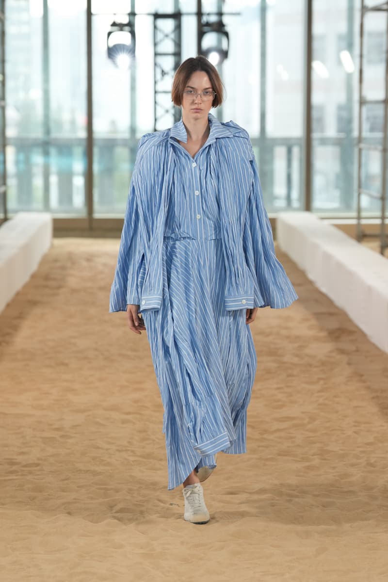 十月,上海的秋意里仍浮动着夏日未尽的躁动。人群、街道、高楼间的喘息,都在周末来临前酝酿着一场出逃。在消费如潮的当下,「精致穷」已成为一种不言自明的常态,在这场被精心编排的「自我定义」游戏中,人们在看得见的地方极致投入,却在看不见的地方极致压缩。当一只包袋价值普通人数月的薪水时,我们忍不住探讨,我们所追求的「精致」,究竟是别人定义好的模板,还是真正源于内心、敢于打破规则的、自由的自我表达? MASONPRINCE 2026 年度时装发布会以「玩乐时间」为灵感,于现实与幻想的裂隙之间,构筑一个超越线性时间的异质时空,将未完成的空间叙事转化为时空扭曲的超现实主义影像:引力在毛坯中庭蜿蜒曲折,时空随着钟表的融化变形,感知游移于真实与虚幻的边界。在这里,逻辑失去坐标,直觉成为导航,错乱成为新的秩序。当一切规则失去效力,时装是否仍需承担「扮演」的使命? 答案,早已藏在每一个颠覆的造型中。超长球袜改造而成的鞋子、满印夏日元素的蕾丝长裙、被大幅度收窄的裤脚、刻意露出的后领标、由衬衫堆叠而成的礼裙…品牌一贯强调矛盾与冲突感,以「不合理」的姿态挑战时尚教条。造型的性别颠倒、材质的不合理性、极度反差的风格混搭、将日常物件“时尚化”…这举重若轻的“反时尚”游戏,恰是对消费主义最犀利的调侃。 此刻,规训已被狂欢取代。在这处注定成为消费载体的场景内,MASONPRINCE 借扭曲剪裁、解构重组与立体拼接等手法,打破规训化审美,将时空错乱的感知具象化,探索符号化消费与自我定义潜在的矛盾与共生关系,精准解构消费主义。 而这场发布会,更像是一场解放于符号化消费的狂欢。我们拆解所有身份标签,让衣橱成为不设界限的游乐场。秀场将沙滩搬进粗旷的水泥空间,以高级拉绒地毯创造出一片「海洋」,用最经典的配色元素营造轻快的假日氛围。而秀道两侧的钢筋和脚手架却「不合时宜」地出现在这度假海滩,将观众瞬间拉回熟悉的城市景观。这样看似反逻辑的组合所带来的矛盾感,从更宏大的场景表达本次秀场的核心主题。 当音乐渐退,人群散去,MASONPRINCE 2026 年度时装发布会也顺利闭幕。而品牌面对时尚与消费主义的“玩乐”态度越发鲜明,不设限的自由表达亦越发确立。 |