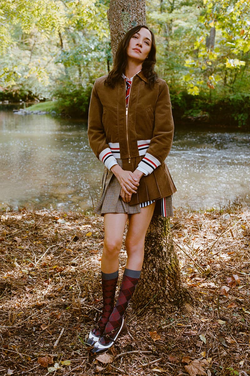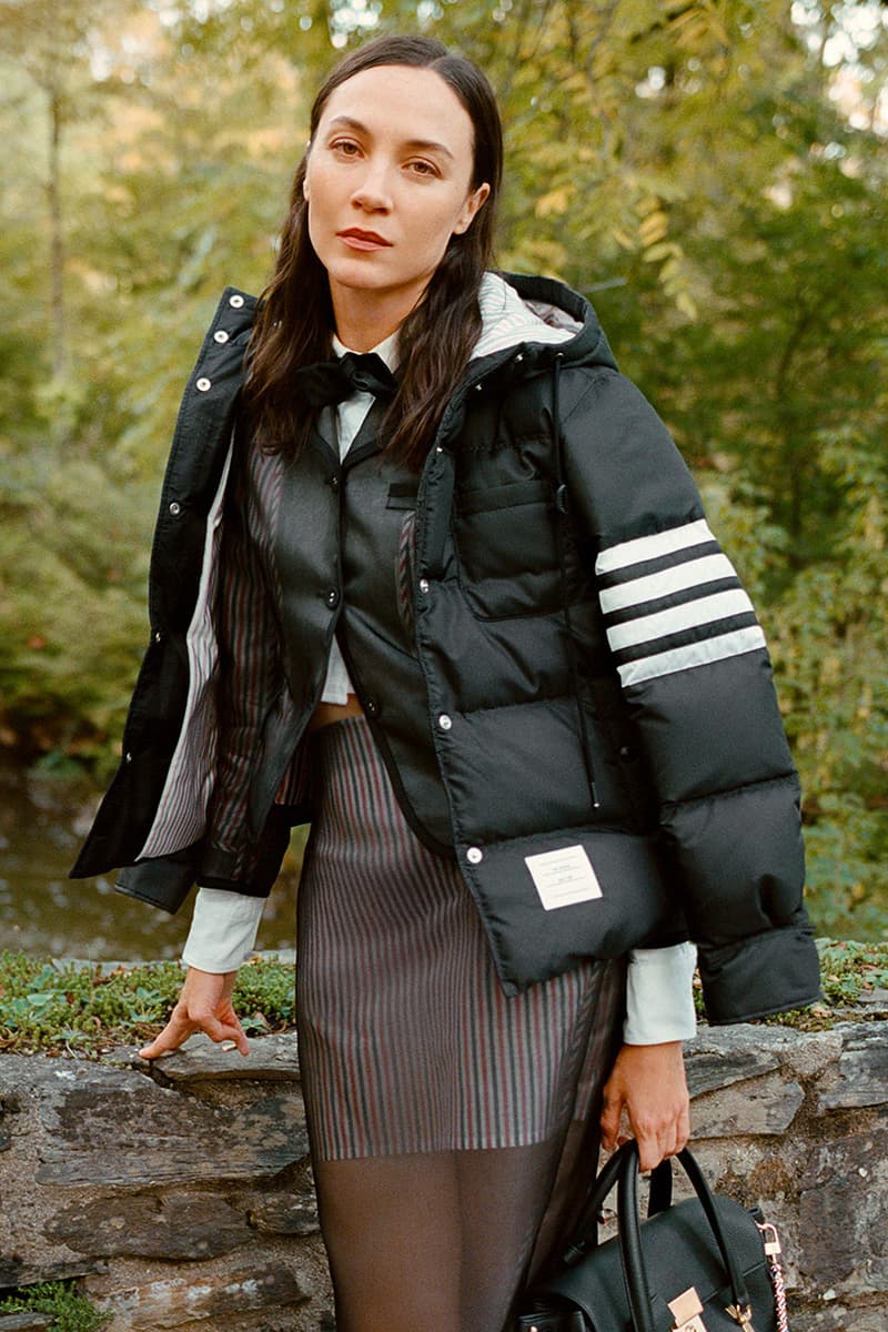 Thom Browne 的 2025 高冬系列如同一场发生在哈德逊河谷的电影式日程,清冽空气与静谧景致定下优雅而从容的基调。篇章由黑色羽绒外套开场,在晨光映照下,配以羊毛长裤与小牛皮短靴,踩踏碎石小径发出清脆声响。这是一场关于动与静的习题——手插口袋、叶色转红,身影被低悬的阳光勾勒。品牌的机能外套于意大利制作,可在清晨抵达与深夜欢聚之间无缝切换,在功能性与精致剪裁之间拿捏分寸。 日渐回暖,宾客卸下羽绒飞行员外套,信步园中,层层内搭露出 2025 秋季系列的细节。灯芯绒与羊毛细条纹西装,与方格纹、羊绒开襟外套及错视效果连身裙相映成趣,色调尽是大地秋意。贴饰的鹅图案掠过格纹百褶裙,标志性的「4-bar」元素现身于皮革 Varsity 外套与羊毛拉链套头针织。这些单品邀人起兴——溪畔垂钓、草地游戏、手执香槟——让正装与休闲的界线变得模糊。 入夜,气氛转入室内。石径之上,粗花呢长裤遇上翼纹高跟鞋,黑色领结在小化妆镜前被细心整理。以黑色薄透丝质欧根纱裁成的便装西装外套、束身衣与铅笔裙,若隐若现透出下层的三色内里,宣告步入黑领结规格的精致场域。就在这些瞬间,系列的多变性尤为鲜明:机能退让于仪式感,每一件都成为更大叙事的一部分——关于亲密、期待与内敛华丽。 Thom Browne 2025 高冬系列不止于季节性作品;更是一段层层递进的叙事。自双陆棋的第一掷到炉边最后一杯敬酒,Thom Browne 的设计贯穿一日之间的连结与对比。当室外空气愈发锐利,羊毛、羽绒与良伴将温度留在身侧;室内,烛光之间,品牌标志性的剪裁与叙事随之被唤醒。 |