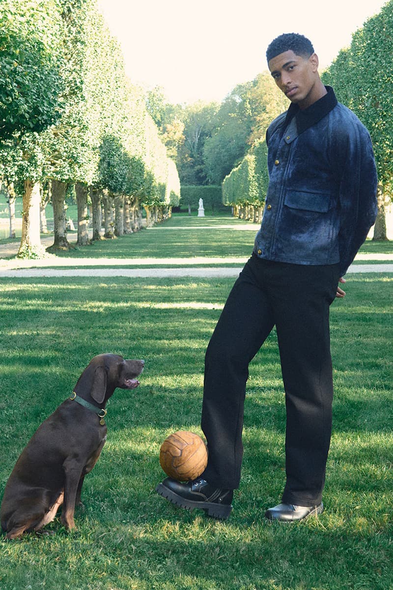来到 2026 早春,Louis Vuitton 跨越海峡走进英国,从英格兰乡间汲取灵感;本次形象由品牌挚友/足球员 Jude Bellingham 与演员 Callum Turner 以取材自经典野外装备与英式裁缝的造型,展现各自的英伦底蕴。 Bellingham 与爱犬踢着足球,身穿一套带仿旧质感的植绒牛仔工装套装。另一边厢,Turner 伴狗出游,以一套「Monogram」威尔斯亲王格纹羊毛西装亮相。不过最抢眼的,属模特儿 Mathieu Simoneau 身上的错视雨滴造型。他身着丝质衬衫与短裤套装,配上格纹防风外套,衣面布满带点超现实的雨滴图案。 贯穿全系列,英式狩猎母题与各式格纹,为更具表现力的细节注入朴实底色。大地色调羊毛短外套、人字纹与粗花呢外套,以及带迷彩感的绿色 Monogram 图案,将整体扣回传统男装冬季衣橱。当中特别亮眼的是一套棕色涂蜡牛仔外套与长裤,隐约印上褪色的 Monogram。系列最后以多款齿纹厚底乐福鞋、短靴与球鞋收结,应付湿冷结冰天气绰绰有余。 即日起可于 Louis Vuitton 官方网店选购 2026 早春男装系列。更多时装产业观点,请持续关注本站。 |