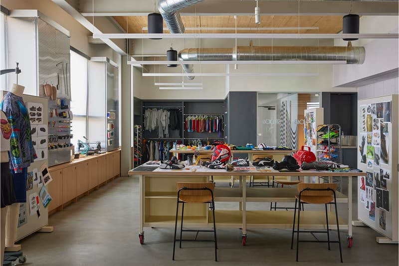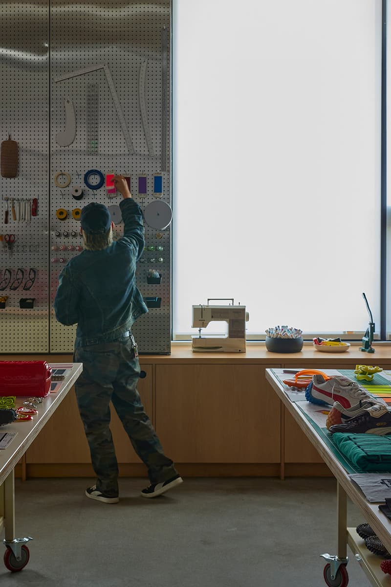 West of West 为全新 PUMA Studio Los Angeles 所作设计,将其定位为兼具创意枢纽与文化平台的空间,亦与品牌位于麻萨诸塞州与德国的既有工作室相互呼应。 以当代工坊为概念,整体以灵活框架集成陈列室、工作空间、数据室与打样实验室,同时可因应接待、娱乐及活动等不同场景切换。此一策略让职场不仅是生产场域,亦成为推动文化的引擎——未竟的点子、原材料与完成品得以并置共生,催化试验与创新。 工作室的内核是 STUDIO48——一个呼应 PUMA 位于德国 Herzogenaurach 与美国波士顿设施的专用设计工作坊。空间内备有完整的鞋履与服装物料库、大、小幅打印设备、缝纫机,以及可移动的「pin-up」展板与背景板。另设一间独立、湿度可控的房间,内有 3D 打印机、DTG 直喷打印机、激光切割机,以及配备专用抽风系统的喷漆房等先进工具。这些资源让设计、营销与文化合作伙伴得以并肩工作,模糊概念与实作之间的界线。重点不只在效率,还在于协作与交叠所激发的创造能量。 陈列室则以明亮画廊的姿态延续这股精神,抛光混凝土地面搭配镜面板材,能在私人造型试身与大型活动之间无缝切换。不同功能分区以温暖而克制的材料语汇划界——木材、半透明玻璃、帘幕、染色饰面与哑面铝材——并通过订制的纹理与透光度,营造层次变化。 位于空间中央的一座雕塑感楼梯,成为串连各层的关键链接元素。灵感取自一缕在建筑间舒展的布带,木楼梯以流动姿态盘旋而上,链接承载社交与活动的楼层与上方更内向的设计楼层。让动线同时促成交流,并框取跨层视野,这道楼梯体现出工作室的开放与交流精神。得益于此种弹性,PUMA Studio 得以多重模式运作:既可作办公室、聚会场、时装天桥,亦可化身为工作坊——成就一座与洛杉矶创意生态深度交互的「可能性建筑」。 |
