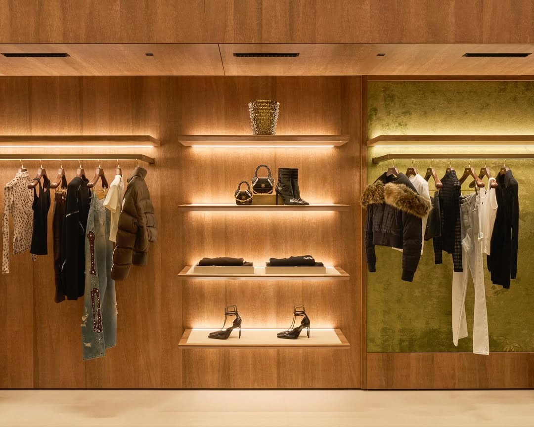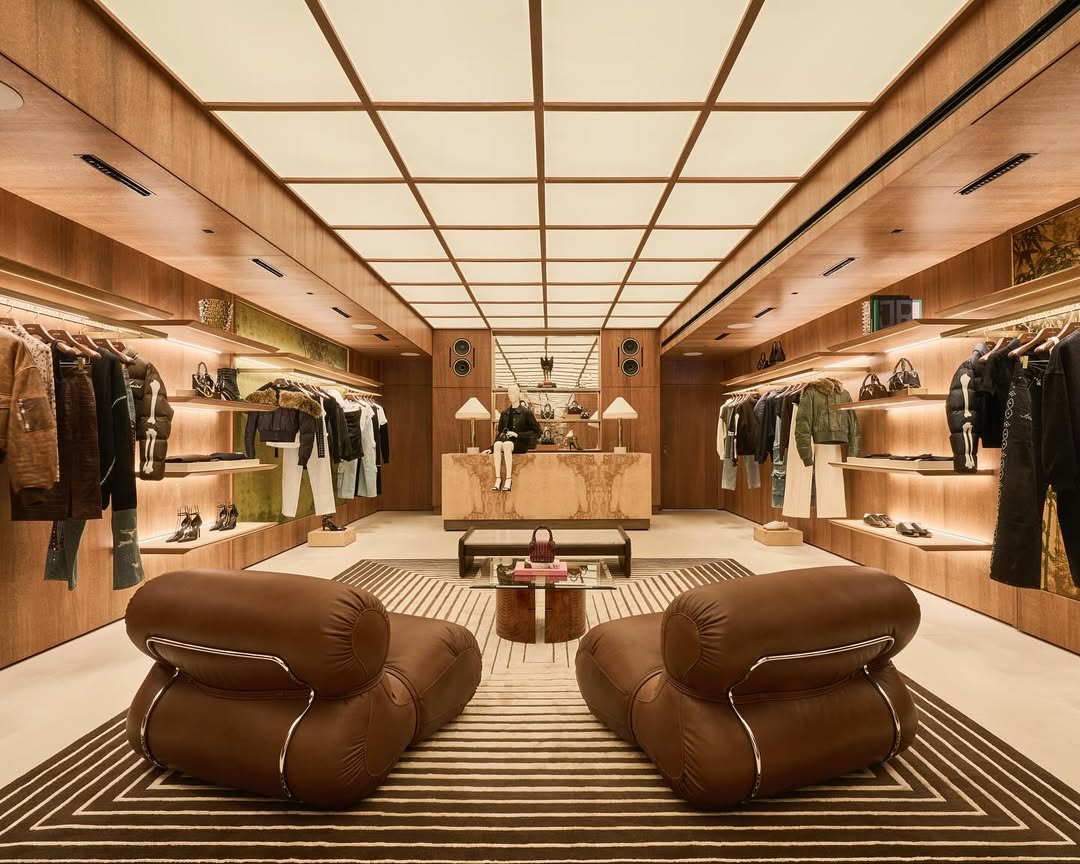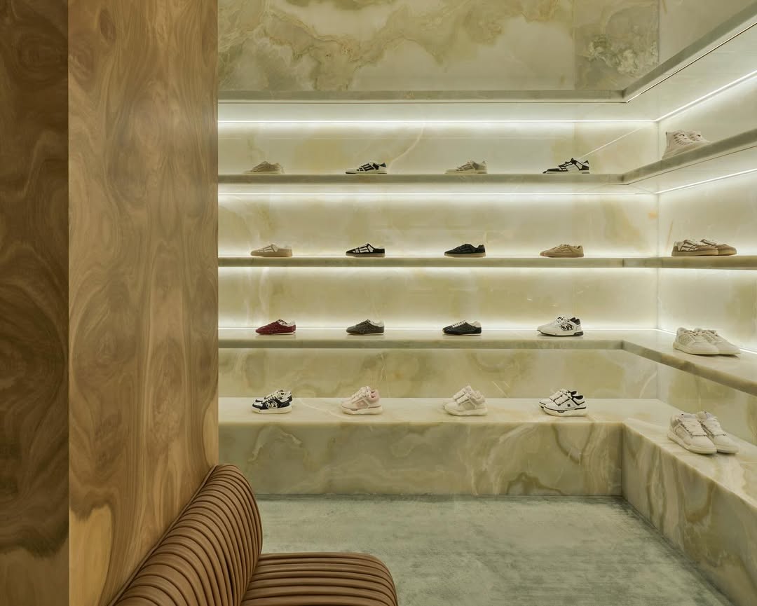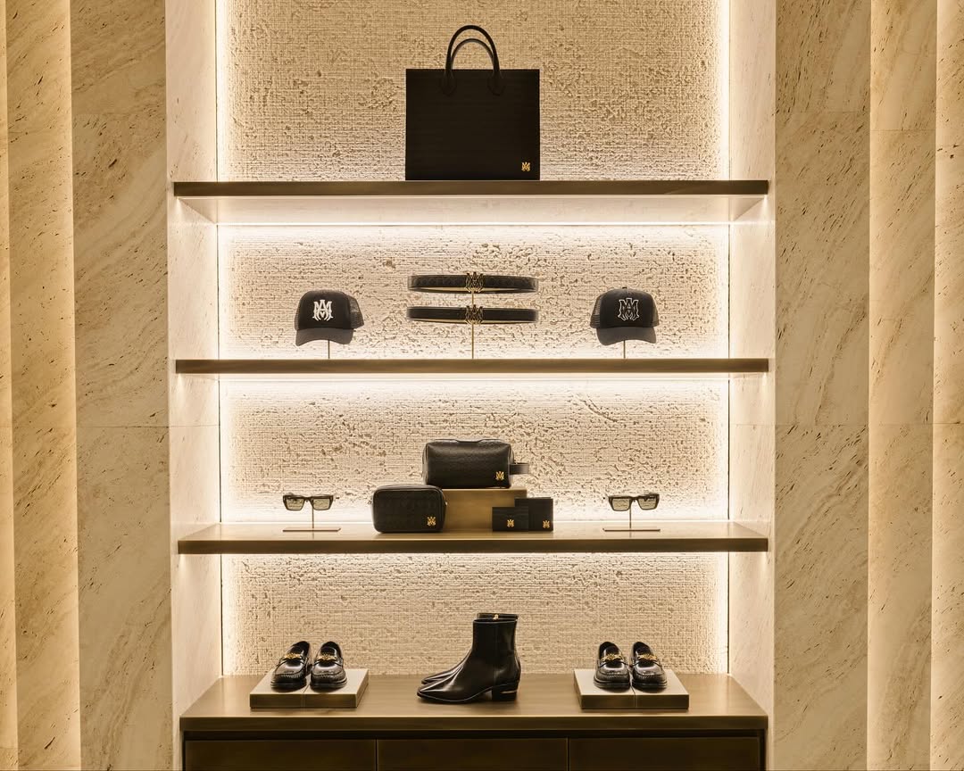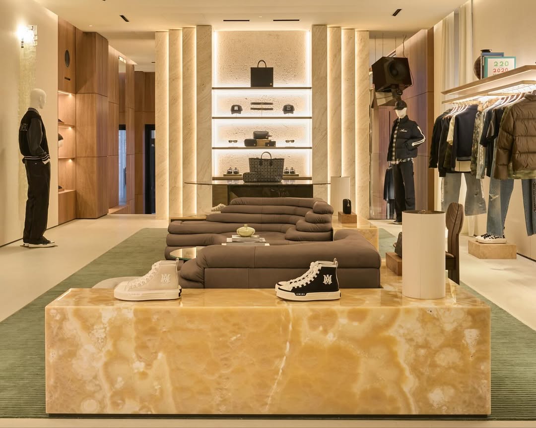 AMIRI 于米兰开设了其欧洲首家独立精品店,进一步巩固其地位。这家欧洲旗舰店位于 Via della Spiga 和 Via Sant’Andrea 的交汇处,由创始人 Mike Amiri 与米兰工作室 PconP 合作设计。其风格融合了 AMIRI 的加州根源与欧洲的文化氛围,并深受好莱坞黄金时代的影响,唤起人们对经典酒店、复古西海岸住宅以及已为 AMIRI 品牌核心的电影元素的记忆。 店铺被设计成一系列独立的空间——如同沉浸式的电影场景供顾客体验。映入眼帘的木材、石灰华和石灰石等天然纹理交相辉映,搭配以方格石英石地板,流畅的线条巧妙结合了 20 世纪 20 年代标志性建筑风格,同时兼具好莱坞和米兰的特色。整个空间体现了 AMIRI 的持续发展,及其今年早些时候在米兰开设欧洲总部后,构建全球零售网络的雄心。 |