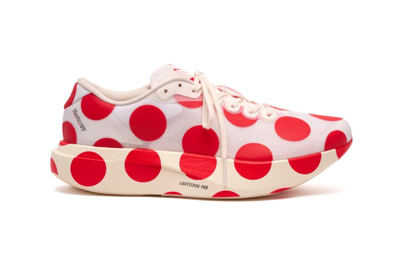 产品名称: Hartcopy x adidas Adizero EVO SL F&F 配色: TBC SKU:TBC 建议售价: TBC 发售日期: 2026 年 发售通路: Hartcopy、adidas Hartcopy 与 adidas 最新联乘带来 Adizero EVO SL「Friends and Family」特别版本,将这款跑鞋拉进全新维度。设计目的在于颠覆现今跑鞋市场愈趋同质的风景,大胆采用满版波点图案,并以「让跑鞋重新变得有趣」为核心理念,刻意摆脱一贯只讲求机能、偏重工具感的传统性能鞋美学。 这款特别版以半透明合成物料鞋面为主轴,其上铺满抢眼的猩红色大波点,并一路延伸至厚实的 LIGHTSTRIKE PRO 中底。鲜明红调与白色、奶油色鞋身形成强烈对比,鞋外侧后跟印上 Hartcopy 的衬线字体标志,而 adidas 标志性的 3-Stripes 则以雕刻质感隐现于内侧鞋身,最终勾勒出既玩味又极具辨识度的视觉语言。 即使暂未公布具体技术细节,这双 EVO SL 版本本身已是一件替 Hartcopy 社群发声的强烈宣言之作。现阶段仅限品牌核心圈层「Friends and Family」内部配发,尚未释出任何公开发售日期或更进一步的零售资讯。 |