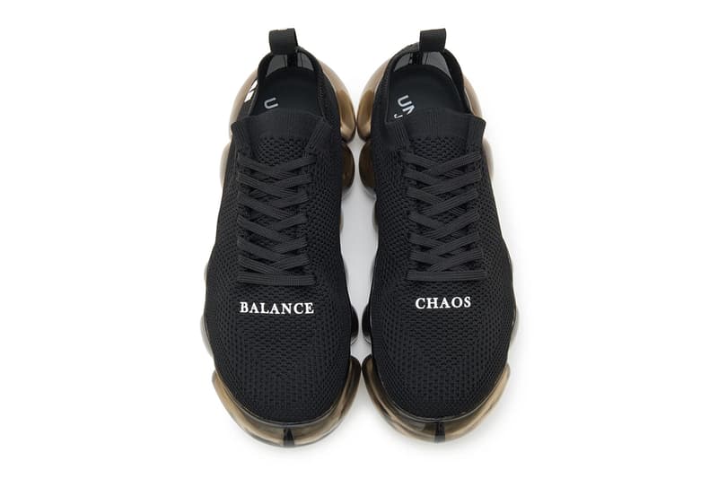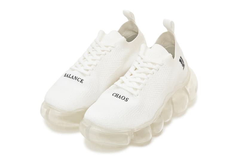 UNDERCOVER 携手日本鞋履品牌 grounds 打造 JEWELRY 球鞋全新联名版本。将 grounds 独特的建筑感设计语汇,与 Jun Takahashi 带有朋克气息的字体美学相互交织,这次合作塑造出在前卫结构与穿着舒适度之间拿捏得宜的鞋款轮廓。 这双鞋款率先于 UNDERCOVER 2026 年早春系列发布中登场,以 grounds 标志性的 JEWELRY 外底为整体核心。大底由一圈圈透明、宛如宝石般的球体组成,为穿着者营造仿若漂浮的步行感受。本次胶囊系列中,这组充满技术感的鞋底配置搭配柔韧针织鞋面,与下方饱满、雕塑感十足的平台厚底形成俐落的视觉对比。 视觉识别鲜明却不繁复,延续 Takahashi 一贯冷峻俐落的美学语言。鞋身前掌印上「CHAOS」与「BALANCE」字样——这组经典标语一再贯穿 UNDERCOVER 品牌世界观——鞋跟则点缀双方标志细节,进一步强化联名印记。全系列仅以黑、白单色呈现,维持洗练克制的调性,让这一独特鞋型轮廓自然跃升造型焦点。 |