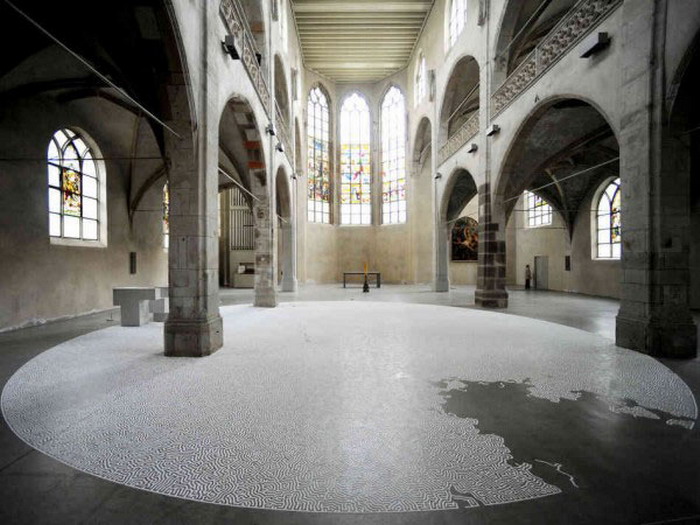 在日本传统信仰中,盐除了能用于调味消毒等较日常化的方面之外,还有哀悼、净化与驱邪的功能,所以撒盐成为了日本丧礼上必不可少的仪式。由于妹妹正值花季,却被脑癌夺去生命,极度痛苦的日本艺术家Motoi Yamamoto开始用盐来创作出落樱、迷宫、盐墙与漩涡等图画与雕塑,以表达对爱妹的深切思念。 有点类似于我们见惯的沙画和沙雕,这些以普通食用盐来作为素材描绘堆砌的作品有的错综复杂,有的则直白简单却透著孤寂。虽然盐细腻洁白,平铺开来就像刚下了一场大雪,能够顷刻唤醒心中的安宁平静,但这成千上百斤盐的背后却藏着艺术家记忆深处的一段段难以言表的无尽痛楚。 虽然这个艺术故事的开始让人悲伤,但Motoi Yamamoto对盐这种物质的控制力确实非常了得,如果你对他的创作颇感兴趣,那么可以登入motoi欣赏更多作品,以及他近期在北卡罗来纳州的Mint Museum展出的新作。 ##########NextPage########## ##########NextPage########## |