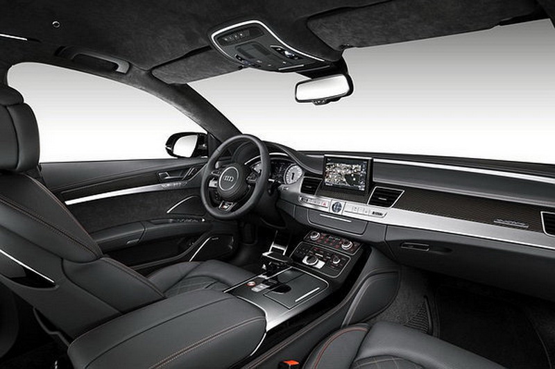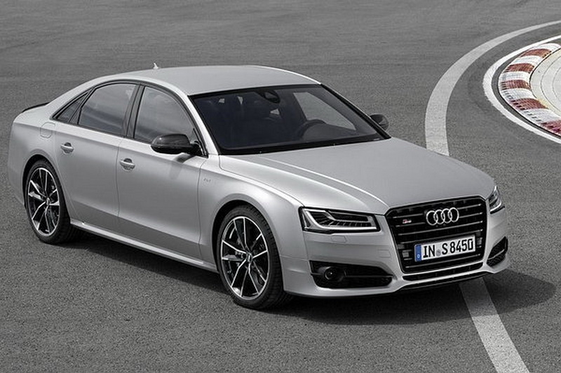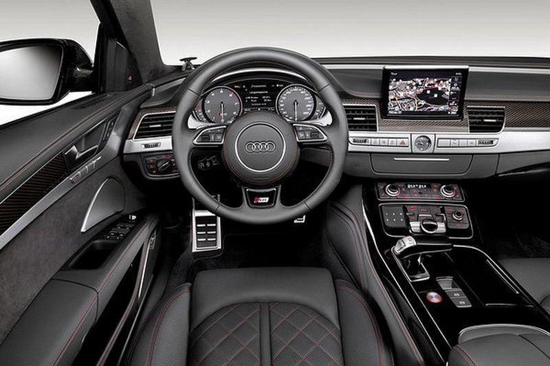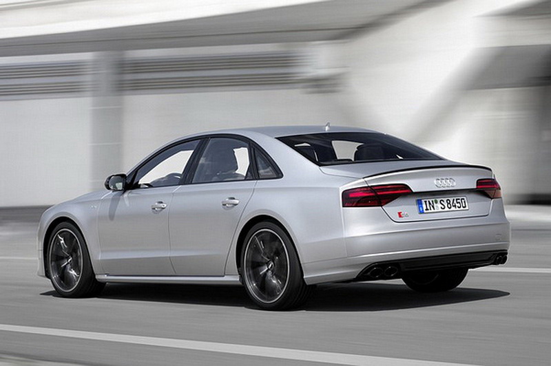 近日,AUDI(奥迪)官方发布了S8 plus的车型图片。相比于现款S8车型,奥迪S8 plus最大的亮点是动力性能上的升级,新车有望于9月份开幕的法兰克福车展期间正式亮相。 造型方面,奥迪S8 plus整体风格延续了S8的设计风格,但细节方面进行了更具侵略性的处理,包括熏黑涂装的前进气格栅、前保险杠两侧开口和车窗边框等。奥迪S8 plus前大灯组采用矩阵式LED大灯设计,同样进行了熏黑处理。另外,新车还配备了碳纤维材质的外后视镜,并采用全新21寸双五辐轮圈。尾部造型方面,奥迪S8 plus融入了小型碳纤维扰流板以及保险杠下方的下扰流板,配合双边共四出的尾喉布局,运动气息更加明显。 内饰方面,奥迪S8 plus与现款S8的设计基本保持一致,车内采用黑色皮革和麂皮材质打造,并配有银色和碳纤维材质装饰板。新车,座椅采用的是黑色皮革与红色缝线搭配设计,也是明显的运动型车型的装扮。 奥迪S8 plus最大的亮点来自动力上的提升,新车所搭载的经过重新调校的4.0TFSI双涡轮增压V8发动机,最大功率为605马力,峰值扭矩达到700牛·米,而在超增压模式下其更可迸发出750牛·米的最大扭矩。传动系统方面,与发动机匹配的是8速手自一体变速箱,同时新车还搭载了quattro四驱系统。官方数据显示,称新车0-100公里/小时加速时间为3.8秒,新车极速为305公里/小时。