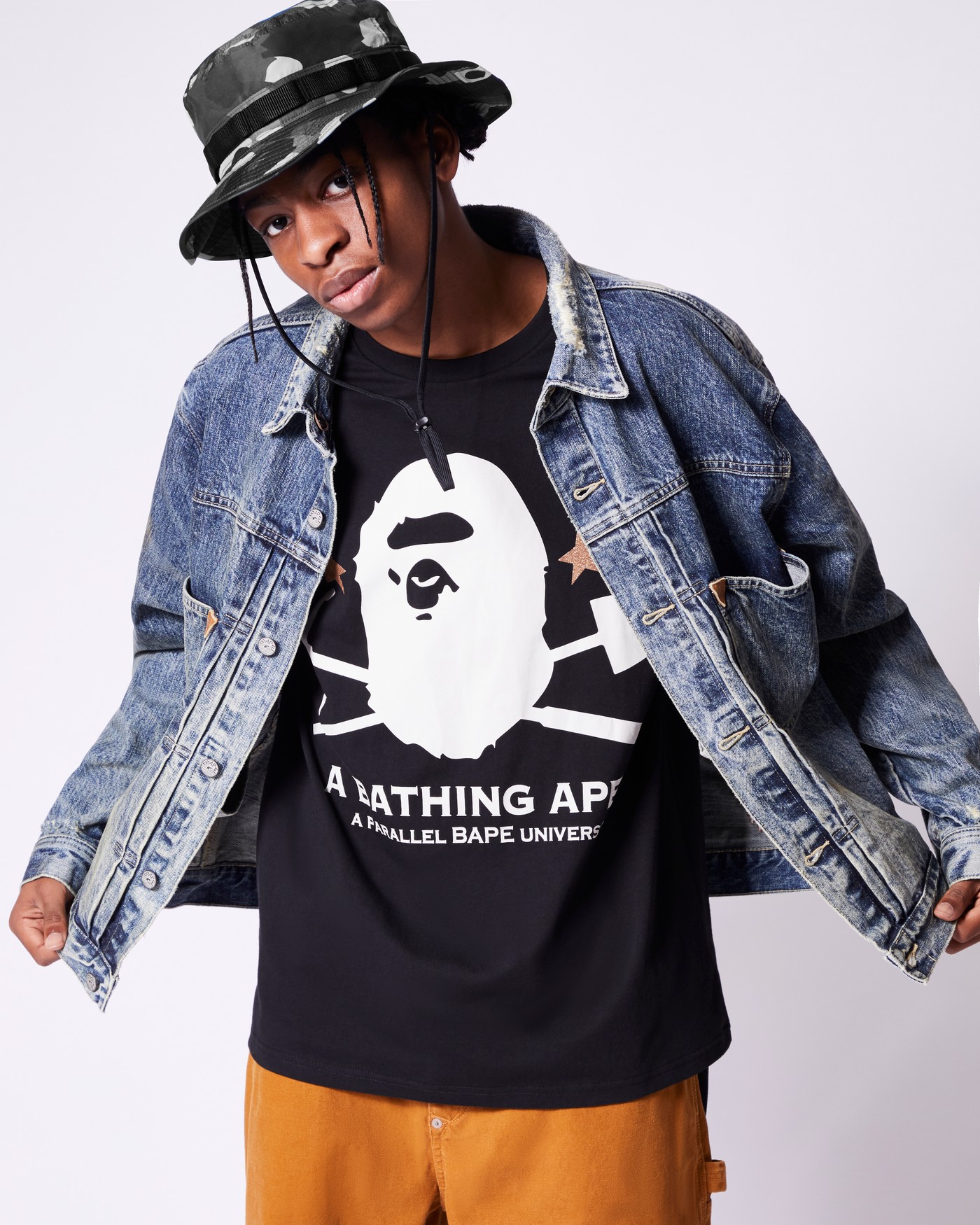 A BATHING APE® 一直都有以 Denim 作为元素去推出服装,上年便曾以二战前后的美国艺术风格,还有以及「THE RETURN OF ICARUS」之名,取灵感自 1968 年经典电影《Planet of the Apes》,分别带来春夏及秋冬的系列。来到今年春夏季度,BAPE 便以后 19 世纪工人服装为灵感出发,将当时掘金矿工的衣服,以 BAPE 的丹宁风格重现,当中的牛仔外套、背心及牛仔裤都有着当时期的灵感,因为系列亦以「Gold Rush」来命名。有关服装系列将于明日 2 月 29 日率先于香港 BAPE STORE 专门店发售,3 月中旬将于全球上架,想先睹为快的香港朋友们明天便要早点出门了。  |