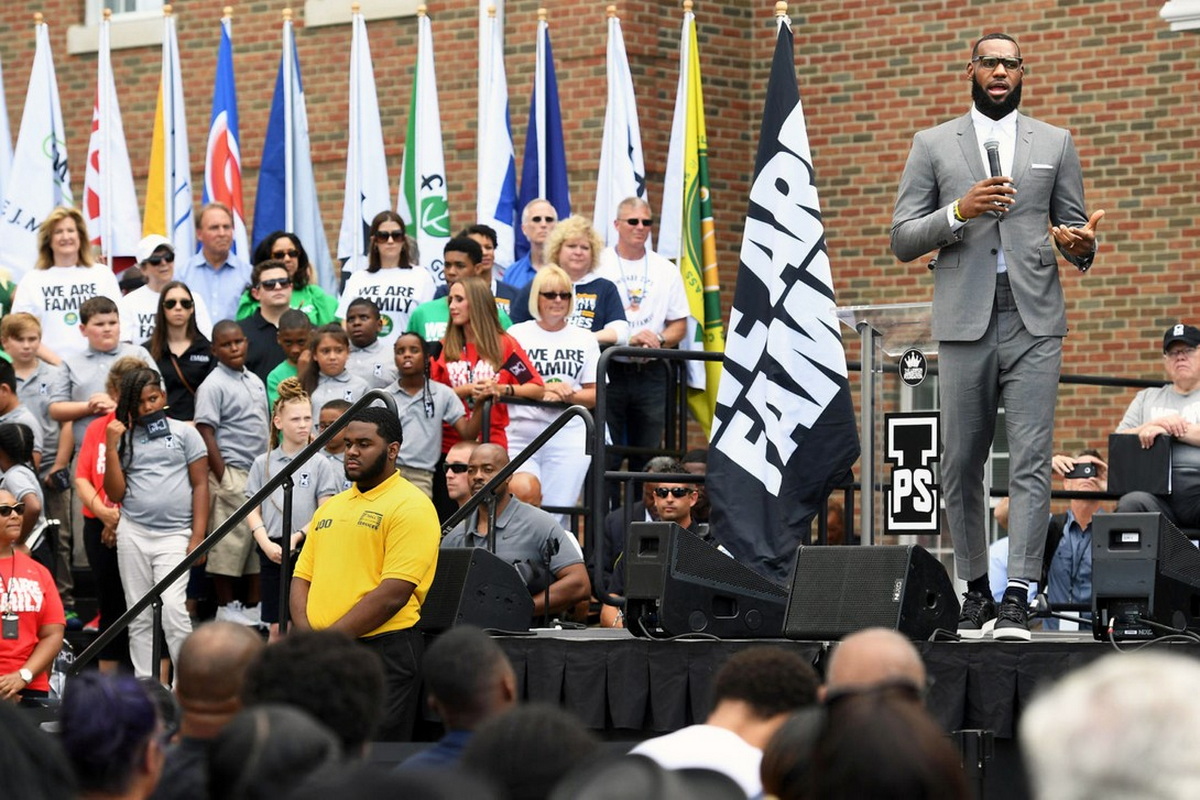 由 ESPN 出品的 Michael Jordan 纪录片《The Last Dance》,在过去五周的时间里陆续播放全部 10 集内容,除了创下每集 560 万平均观看人数的 ESPN 纪录片收视记录外,更在全球社交媒体上引发了一波又一波有关「篮球之神」的话题,这其中就包括他与现役传奇球员 LeBron James 谁才是「史上最佳」的讨论。 为此 ESPN 也在社交平台上发布了一项球迷调查中,请球迷投票选择自己心目中的 NBA 历史最佳球员,最终在近十万名的参与者中,有 69% 的人选择了 MJ,而 LeBron 则得到了 31% 的选票。仅从现有的 NBA 赛场履历来看,后者距离「篮球之神」无疑还有一定差距,尤其考虑到 MJ 在总决赛中「六投六中」和两次三连冠的统治性表现。 「当你还是一个 9 岁的孩子时,你需要从某人身上获取激励,而我成长过程中的超级英雄就是蝙蝠侠和 Michael Jordan。」 对比之下 LeBron 或许缺了一些「运势」,在连续保持 10 几年巅峰状态的情况下,仅有三座总冠军奖杯让他在这场比较中落了下风,更何况这位 18 岁就进入联盟的「The Chosen One」,本身就是 NBA 历史上受期待程度最高的球员,没有之一。但反过来想,能以候选人身份参与这次「竞选」并获得三成支持,LeBron 早已无需用证明自己的伟大。 LeBron 一直将 MJ 视作自己的超级英雄,但他也曾多次表达过对于成为「GOAT」的渴望。与 MJ 在赛场外低调处事、闷声赚钱的准则不同,LeBron 更习惯于通过自己的影响力去为更多人发声,正如「More Than An Athlete」这句广告语所说的那样,King James 正在通过场外的一系列举动,赋予「GOAT」更加深层次的定义。 贫困家庭及年轻一代的精神领袖 参与慈善事业对于如今的 NBA 球员来说已经是家常便饭,但没有人能做到像 LeBron 那样「倾其所有」。根据不完全统计,LeBron 以个人和其家庭基金会名义,在慈善事业上的总投入早已超过 $2 亿美元,要知道从 2003 年进入联盟到 2018 年与 Lakers 签下 4 年 $1.54 亿的合约,LeBron 的生涯总薪酬也只是 $3.87 亿美元。 出身贫寒的 LeBron 深知教育的重要性,对于很多贫困家庭而言,他认为接受良好教育是最好的出路。正因如此,他的家庭基金会一直致力于发展青少年教育,并帮助那些贫困家庭和年轻人,而在 2018 年,他更以慈善教育企划「I Promise」之名,在家乡阿克伦建成了一座同名公益学校,创造了职业运动员在慈善领域的一大壮举。 如今 I Promise School 已经免费资助了几百位家境贫寒的当地学生,除了免除学费外,该学校还为学生提供免费的校服、自行车,以及早餐、午餐和点心,甚至还会向学生家人提供食品救济站,并为他们提供通识教育和工作安置。而每个从 I PROMISE School 毕业后考入阿克伦大学的学生,将会继续得到 LeBron James 家庭基金会的学费支持。 LeBron 还一直致力于关怀和激励年轻一代。因为受到新冠疫情的影响,2020 级的全美高中毕业生们不能延续 Prom 舞会的传统了,而为了让他们不留遗憾,LeBron 特别策划了一场名为「Graduate Together」的线上毕业典礼,包括前美国总统 Barack Obama,以及 Kevin Hart 和 Pharrell Williams 等人均受邀分享寄语,并通过 ABC、CBS、NBC、Fox 和 YouTube 等平台面向全美播出。 「2020 级的毕业生们,现在是时候扬帆起航了,是时候追逐梦想、接受挑战,并带头承担起改善社区的责任。」 除此之外,LeBron 还邀请艺术家 JR 将线上征集到的学生照片制成了特殊的「毕业校刊」,在时代广场的大屏幕上展出,而他本人也在这次活动中奉献了一段鼓舞人心的演讲:「2020 级的毕业生们,现在是时候扬帆起航了,是时候追逐梦想、接受挑战,并带头承担起改善社区的责任。」这次特殊的毕业仪式,无疑会在精神层面为年轻一代带去激励,而 LeBron 是率领大家砥砺前行的「精神领袖」。 勇于为黑人社群及运动员发声 在《The Last Dance》第五集中,MJ 谈及了自己对于运动员在政治上发声的看法:「我的确称赞 Muhammad Ali 为他所相信的事情而发声,但我从没想过要成为一个政治上的积极分子。我将自己视为一名篮球运动员,而不是一个政客。」而这也许是 LeBron 与 MJ 最大的区别,高举「More Than An Athlete」大旗的他将责任放在了整个时代的议题上,尤其是那些与黑人族群有关的问题。 2012 年美国黑人少年 Trayvon Martin 遇害一案轰动一时,为了回击脱口秀主持人 Geraldo Rivera 关于 Trayvon 因为穿着一身不吉利的连帽衫才导致其遇害的荒谬言论,LeBron 晒出了与 Heat 队友一同穿上黑色 Hoodie 低头默哀的合影;两年后,以 LeBron 为代表的球员们又穿上了印有「I CAN’T BREATHE」字样的 T-Shirt,以表达对于警察使用窒息手段让受害者 Eric Garner 致死事件的不满。 同样是 2016 年的 ESPY 颁奖典礼上,LeBron 和他的「香蕉船兄弟」们发表了一段经典的演讲,四人公开呼吁停止种族歧视,抵制枪支暴力,并要求警务改革,同时也号召运动员们运用各自的影响力,去改变这个社会。而在现任总统 Donald Trump 上任后,LeBron 也一直通过社交媒体表达自己对于其不恰当举动的看法,即便此举让他受到不少右翼份子的质疑和反对。 除了针对种族歧视事件表态之外,LeBron 也愿意承担为职业运动员发声的责任。橄榄球是全美最受欢迎运动,但 NFL 的明星球员们似乎并没有得到与 NBA 相同量级的关注度,很大程度上与球员们带着头盔比赛不无关系。为此 LeBron 的多媒体平台 UNINTERRUPTED 特别提出了一个「透明头盔」的提案,倡导橄榄球运动员在比赛时换上透明头