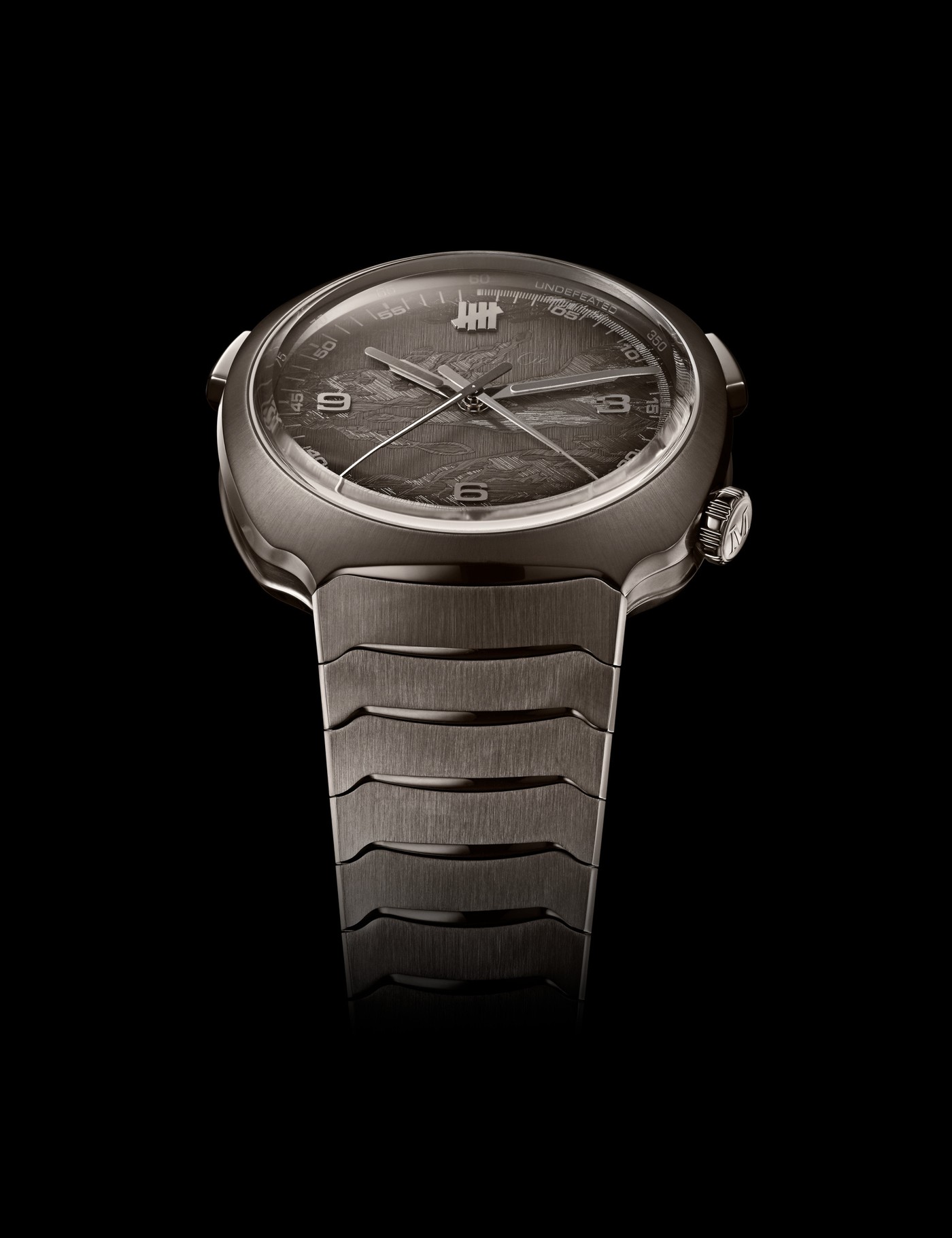 融合两个领域的创意灵感,此番 UNDEFEATED 联手瑞士独立制表品牌 H. Moser & Cie.亨利慕时携手打造全新限量版疾速者计时码表特别版(Streamliner Chronograph UNDEFEATED)。以胜利与美德为主题,极简风格和可读性的大胆设计凸显疾速者系列的流畅线条。该系列首次将枕形表壳覆以炭灰色 DLC 涂层,并搭配一体式精钢材质表带。订制腕表采用黑虎迷彩纹烟熏表盘。灰色刻度环绕表盘边缘,外侧轨道刻度测量秒数,内侧轨道刻度计算分钟。12 时位置的黑色镀铑精钢 UNDEFEATED 标志与三个镶嵌数字时标完美呼应。据悉,此款疾速者计时码表 UNDEFEATED 特别版将于 6 月 22 日起通过网站与指定 UNDEFEATED 店铺以及亨利慕时发售。 |