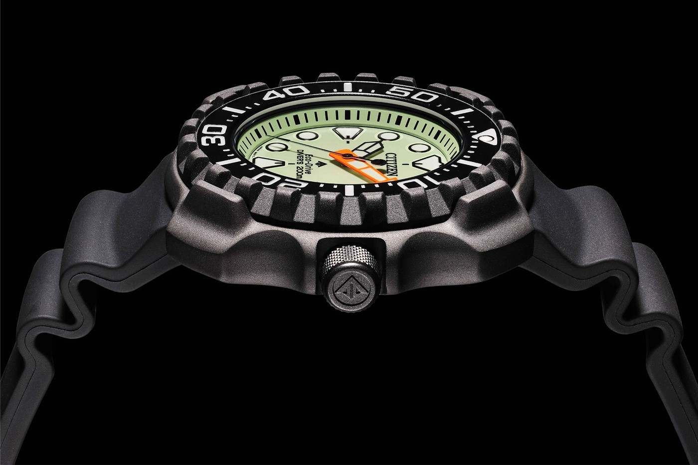 Citizen 继上年推出 Promaster Marine BN022 系列后,今回乘胜追击,再度追加 BN0227-17X 与 BN0225-04L 两款 2022 年新作。BN0227-17X 以 Promaster NY0040 的经典夜光表盘腕表型号为原型,由于 Eco-Drive 腕表是依靠光源推动,因此表盘特意采用半透明,令光线能够穿过表盘抵达底下的太阳能电池。同时为了增加易读性,一反常态的未在秒针、表圈刻度、表壳和表带涂上夜光涂层,令夜光下的表盘更加清晰可见。表壳也经过细致喷砂处理,复刻 1982 年原版专业潜水表之余,其 Duratect MRK+DLC 涂层还能够防止刮花和压痕。 接着 BN0225-04L 是特别以鲸鲨为设计灵感打造,表圈和表盘皆以蓝色调为主轴,搭配表盘上的独特小圆点纹理呼应鲸鲨皮肤上的斑点纹路,表壳底盖同样刻有鲸鲨图样。此表秒针及表盘夜光点均符合 ISO 6425 潜水表规格,指针换上白色涂料与蓝色表盘相对比,白天与昏暗环境皆有高度可读表现。BN0225-04L 和 BN0225-04L 防水性能皆为 200 米,预计在今年秋冬季度正式发售,BN0225-04L 一共仅限量发行 5,000 枚,部分销售收益将捐赠予保护国际基金会(Conservation International),支持开展鲸鲨保育项目,有兴趣的读者不妨多加留意。 |