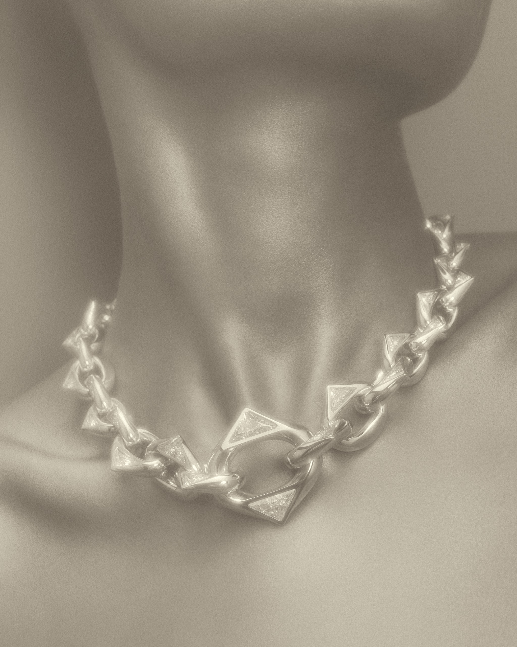 Prada 正式推出 ETERNAL GOLD 高级珠宝系列。 钻石的普遍力量与意义是作为价值的衡量标准、时间的纪念、卓越的标志与永恒之物。于 Prada ETERNAL GOLD 高级珠宝系列的下一个演变中,Prada 继续以全新方式诠释钻石,彻底改变高级珠宝的传统与惯例,既保留钻石的历史特质,又体现二十一世纪的价值。本系列引用并颂扬前瞻性的进步技术,为高级珠宝提供全新视角。采用 100% 经认证的回收黄金精心打造,并缀饰以独特切割之实验室培育钻石为特色,为奢华的价值创造另个永恒象征。 大胆而现代、创新而独特的 Prada Cut 首次亮相,其独特形状以标志性 Prada Triangle 的特定比例为基础,充分体现于形状与光彩夺目的三角形琢面上。从 0.8 克拉到 5.5 克拉,每颗 Prada Cut 实验室培育钻石都经过 100% 认证,并以卓越的切割,无色与 VVS 净度创造最高品质。 Prada Cut 的工艺并运用于蛇型手镯与蛇型戒指的头部和尾部;而链式项链以三角形刻面链节为特色,镶嵌总重约 40 克拉的实验室培育钻石,此钻石经过特殊设计,大小不一,反映出珠宝本身独特且易于识别的形状。 Prada Eternal Gold 高级珠宝完美结合科学与工艺,于义大利由多位精湛技艺的工匠亲手制成。于此,实验室培育钻石不再是地位的象征,而是进步的标志、人类成就的痕迹。所有 Prada 实验室培育钻石都经过 GIA 美国宝石研究院 (Gemological Institute of America) 认证,GIA 是一家非营利组织,被认为是世界上最重要的权威机构,也是钻石、有色宝石与珍珠知识、标准和教育的主要来源。 |