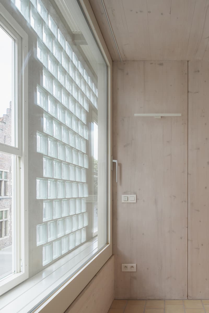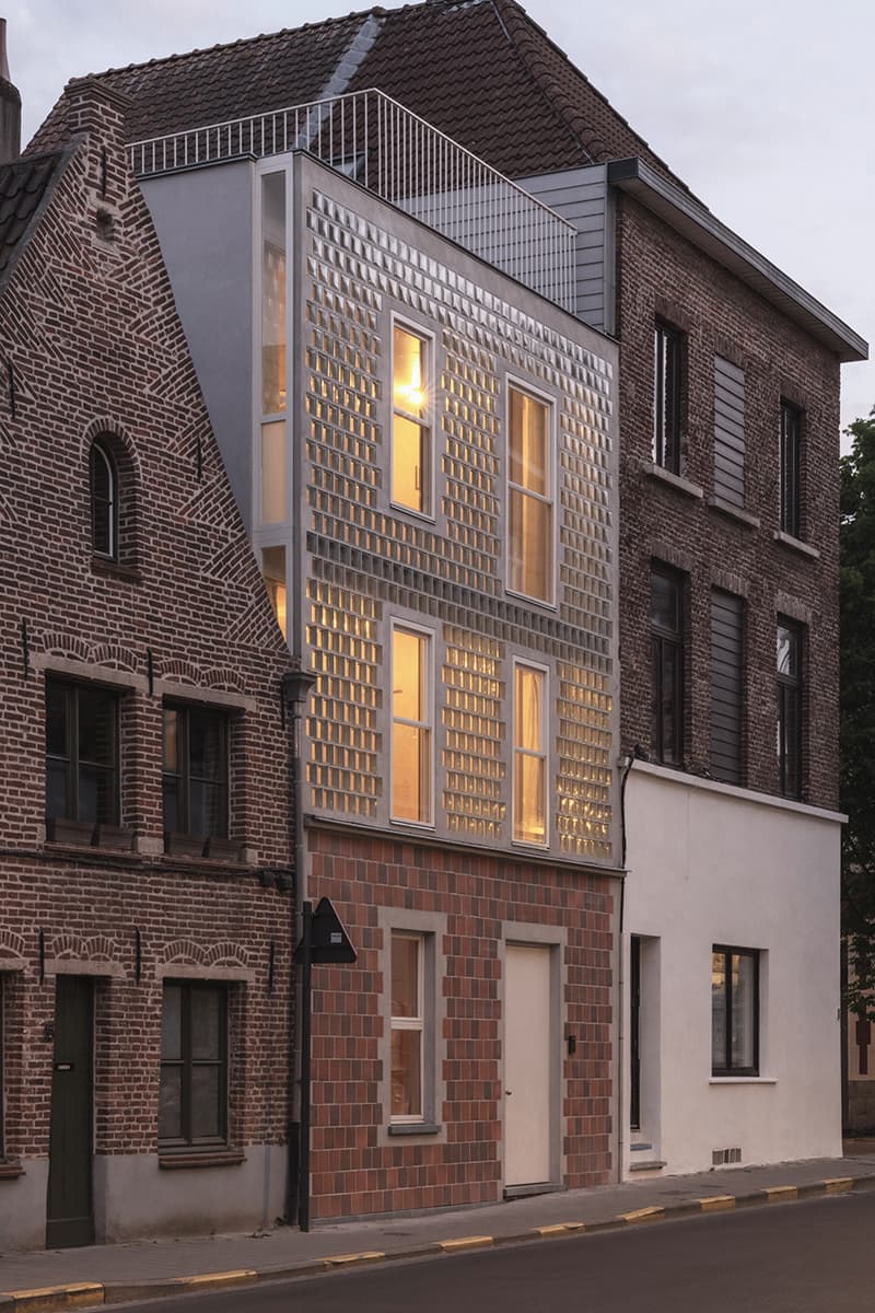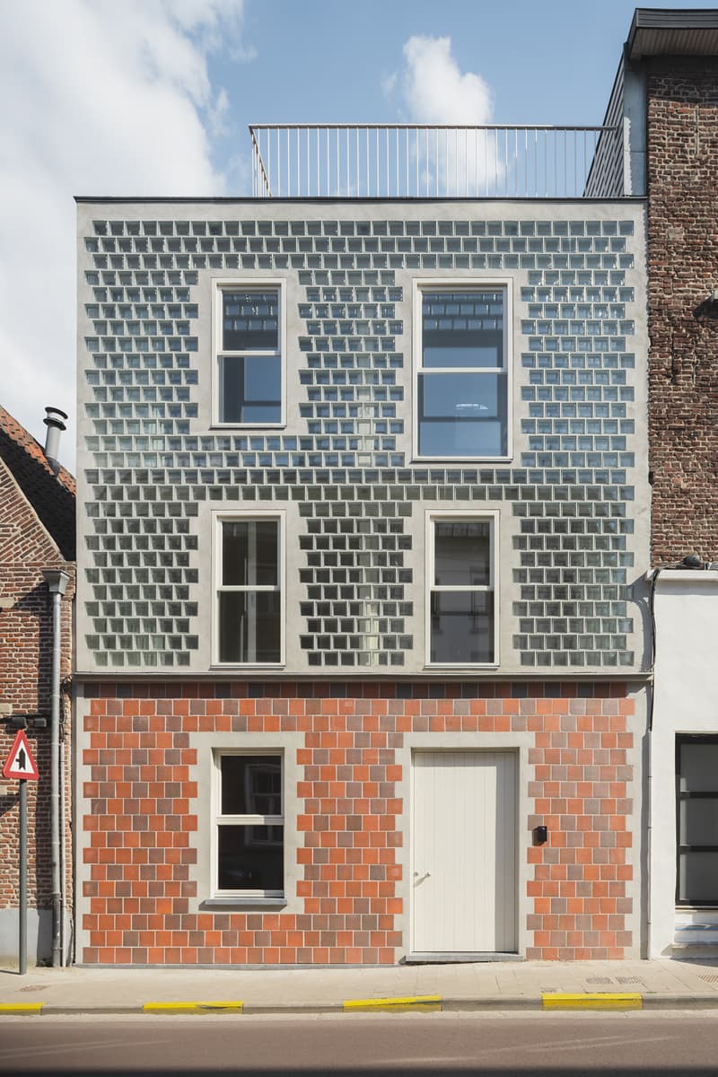 坐落于荷兰阿姆斯特丹 Waterwijk 区的 Glass Brick House,是一座与历史环境对话的醒目当代建筑。由比利时事务所 Delmulle Delmulle Architecten 操刀,这座三层高的住宅占地狭小且被邻房包围,因此采用了创新的「倒置式」布局——把睡房设于下层,将起居空间提升至上层。 本案的关键创新是其双层立面系统。底层覆以带泥土温度的陶瓦,楼上则换上晶透的玻璃砖,引入大量自然光的同时,亦守护了住户的私隐。这种垂直配置,以及从砖面图案到传统窗框线脚的细腻语言,皆呼应邻近建于 1707 年的阶梯山墙老宅,为这一大胆之作在 Waterwijk 层叠的城市肌理中找准定位。 室内延续了材料克制与结构清晰的语言:全屋采用 CLT 结构,白染木面衬以质朴的陶土地砖,营造出温暖而极简的气息,与外立面节奏互相呼应。顶层的屋顶露台则成为垂直生活的静谧延伸,以温柔且通透的姿态,对有限空间作出优雅的反击。 |