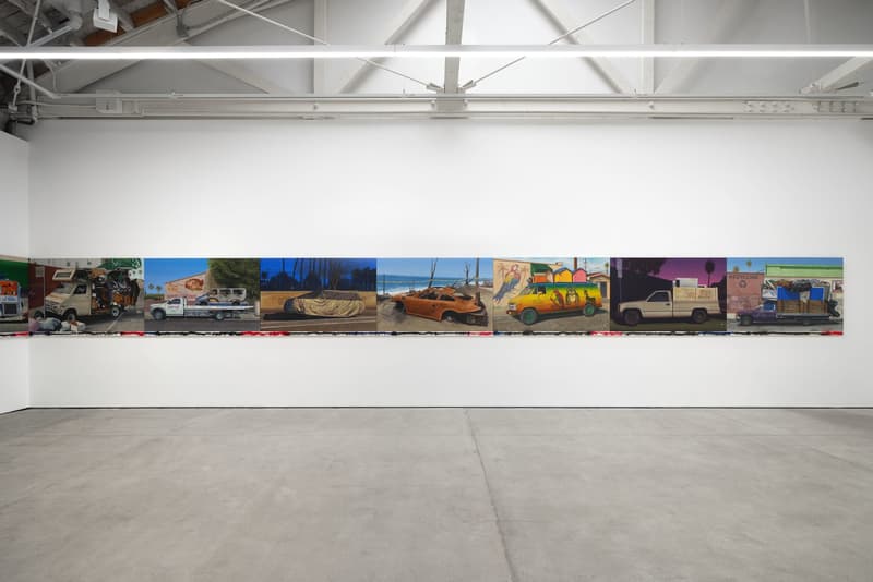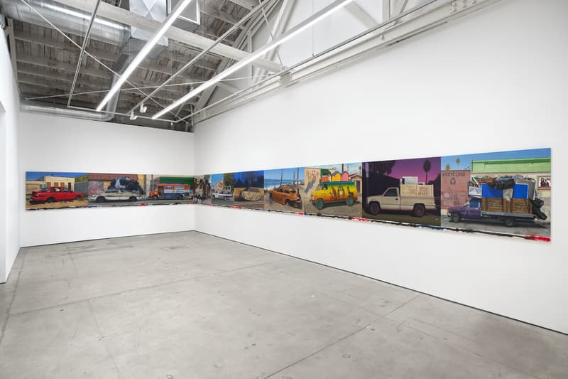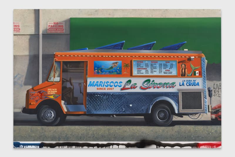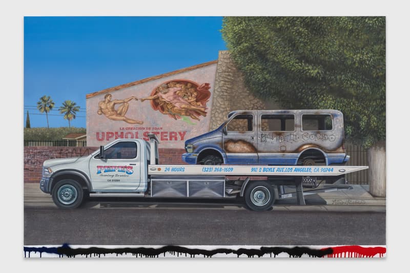 Matthew Brown Gallery 开展《NO PARKING》,为活跃于洛杉矶的艺术家 Alfonso Gonzalez Jr. 的第二次个展,展期至 10 月 29 日。 展览以车辆作为城市生活的记号。被焚的厢型车、涂鸦满身的货车、挤迫的露营车(RV)与闲置的餐车,皆成为其内居住者的替身。虽无人物出场,劳工、通勤者与居民的存在感依然强烈。Gonzalez Jr. 将每一部车视作关于生存、时间与记忆的肖像。 展览由两件大型雕塑揭序,外观如临时「No Parking」路障与标志。粗犷的涂层与积垢既让人联想到古老结构,也指向当代街头的碎屑。旁侧三幅画作,将都会景观化为关于肌理与形态的沉思。 主展厅内,一组 10 幅连作横跨两面墙;一条喷漆线把画布串连起来,呼应壁画的节奏。当中包括《Medrano》——一辆烧毁的厢型车,位于米开朗基罗《创造亚当》壁画之下——以及《Tocco》——一辆在 Malibu 海岸被烈火侵蚀的 Porsche——等作品,皆凸显车辆如何同时成为遗迹与见证者。 受过招牌绘字训练的 Gonzalez Jr. 以笔触、喷漆痕与层叠肌理拥抱不完美,捕捉洛杉矶这座由韧性、伤痕与褪色痕迹构成的城市面貌。 Matthew Brown 633 N La Brea Ave #101F Los Angeles, CA 90036 |