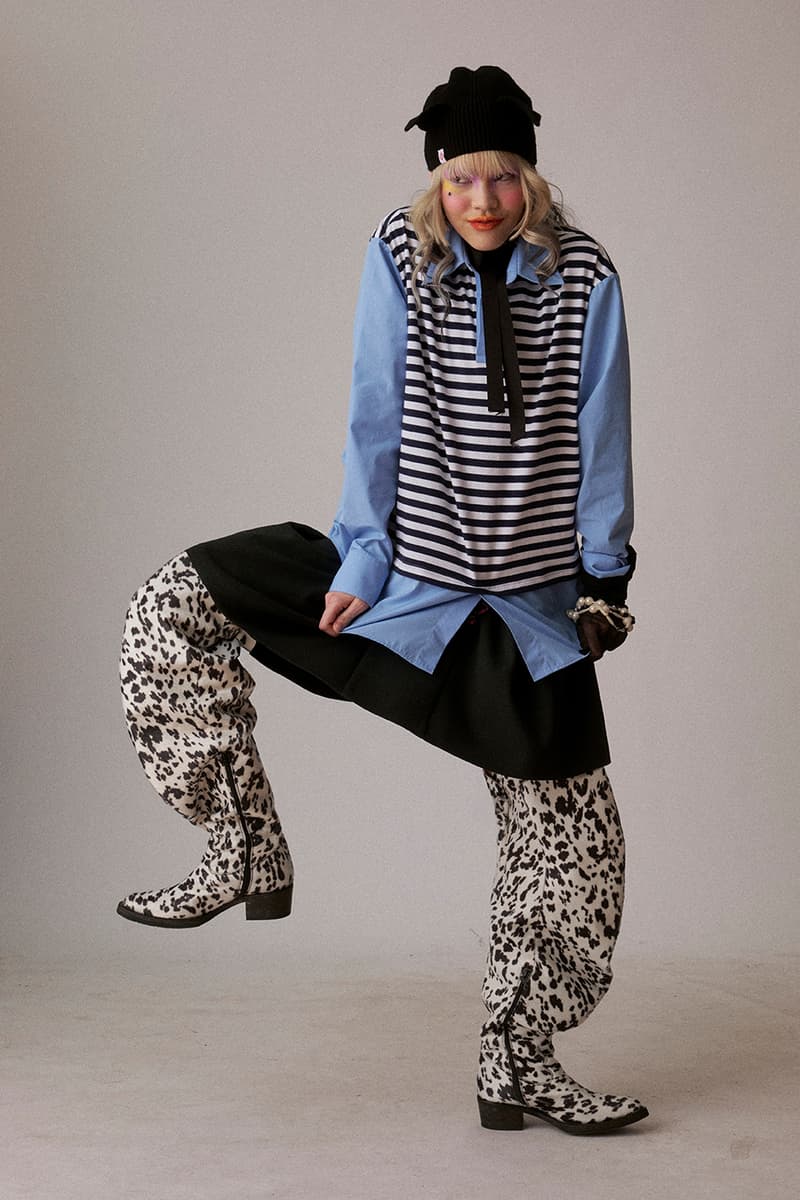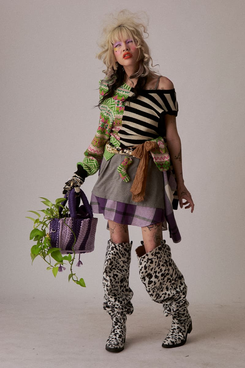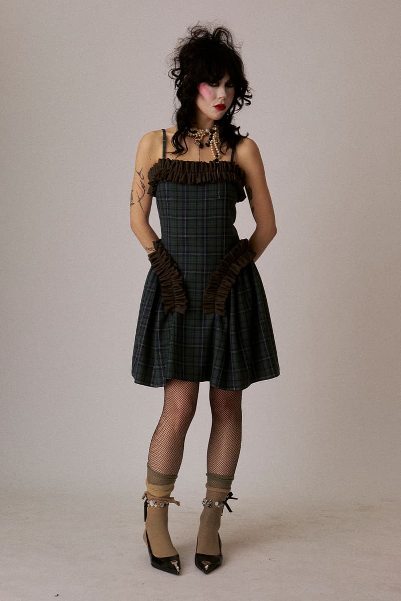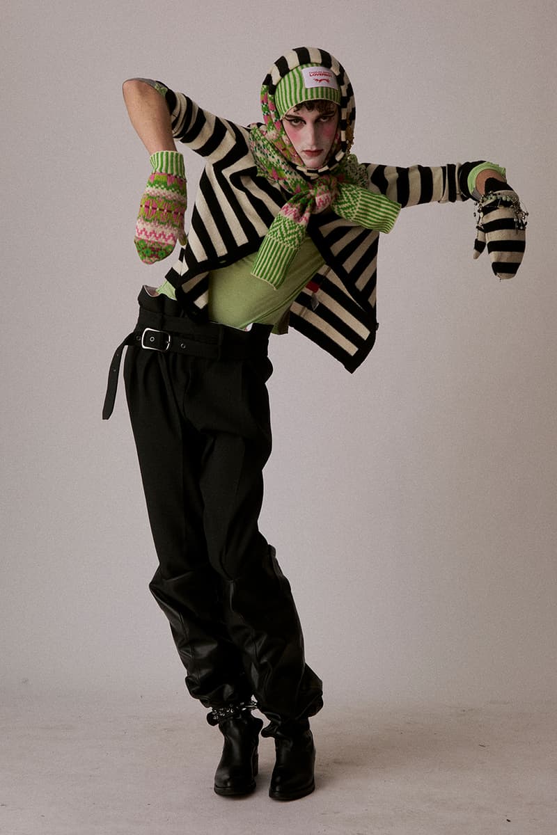 Charles Jeffrey LOVERBOY 放弃传统伸展台形式,将 2026 秋冬系列带到 Dover Street Market Paris,以弥漫伦敦 Punk 气息的失序场景演绎。Jeffrey 表示,这次发表是刻意回到自己在 Dalston 的 Club-kid 出身脉络,他亲自花上 5 日手绘布景,营造近乎异教仪式般的 Punk 沉浸空间。整场发表以「酷儿化民族主义」为概念核心,将象征防御与韧性的苏格兰 Thistle 作为主体图腾,并配合现场演奏的 Baby’s Berserk,完整捕捉品牌原始而实验性的精神,将笑声、反抗、关怀与杂乱置于「完美」之上。 本季系列命名为「THISTLE」,透过「Availableism」视角诠释苏格兰式浪漫与鲜明 80 年代剪裁,交织出一种精心编排的失序感。整体造型延续设计师标志性的 Punk 氛围与性别流动语汇:撕裂格纹叠搭沙漏型轮廓,Frankenstein 式剪裁则将夸张西装解构重组,塑造全新比例与形体。视觉风格由冲突与份量感主导,包括荷叶边连身裙、解构毛帽,以及被绑作绶带的衣袖。配饰依然是品牌强项,发表重点展示话题鞋履的扩充阵容,当中包括 Banana Shoes 与 Claw Boots 的全新版本,同场亦加入趣味钩织动物袋与大量针织单品,从「mushroom spots」图案到苹果绿 Fair Isle 一应俱全。 Jeffrey 指出,本季系列是一份为品牌未来定调的宣言,在收束视觉方向、确立一致性的同时,更加放大当初推动品牌诞生的酷儿好奇心。他强调,即使时装产业持续动荡,品牌仍会是一个受保护的安全空间,并直言 LOVERBOY「永远是为怪人而生、由怪人缔造」。Charles Jeffrey LOVERBOY FW26「Thistle」系列预计于今年稍后登陆 Dover Street Market 及全球指定零售店。 |