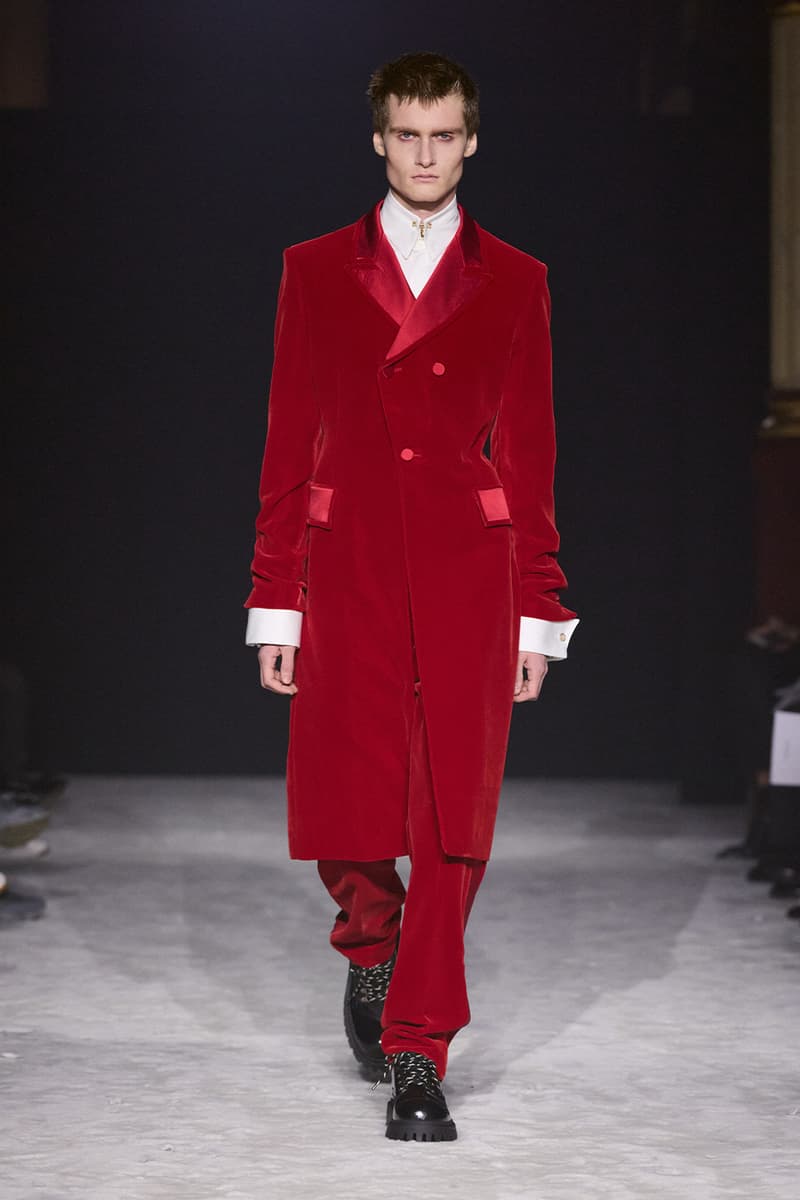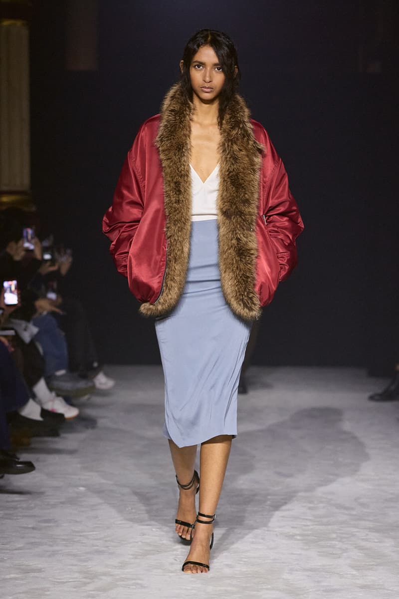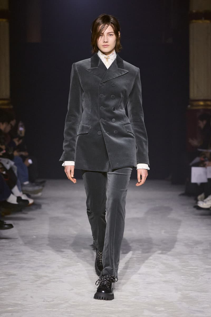 2026 秋冬,Madame Woo 将 WOOYOUNGMI 的世界搬上 Gyeongin——韩国首条铁路——冰封的站台。整季围绕「防护式优雅」展开一场戏剧感十足的时装思辨,在世纪之交的蒸汽火车时代与当代首尔地铁的流动能量之间架起桥梁。灵感源自一则「Far Eastern fantasia」:雪压群山与冰冷城景,将冬天重构为一场有意为之的着装表演,而不只是需要熬过去的季节。 整体廓形在 Edwardian 式纨绔风度与 1970 年代的慵懒华丽之间展开一场精致拉锯。剪裁讲求对身体曲线的自律贴合——西装外套、仿 astrakhan 皮胸饰与沙漏型皮质野战夹克紧裹身形,为抵御风雪构筑「刚而不硬」的结构。经典外套面料被颠覆为利落亲肤的日常主角,而蓬松的仿皮草飞行夹克,以及配有柔软翻驳领的 Chesterfield 大衣,则呈现游牧式的奢华对位。 韩国文化底色被真正「织进」全球冬季衣橱之中:经典北欧针织花纹被巧妙替换为 dancheong 图案——即韩国寺庙上繁复精细的彩绘,而丝质 foulard 则勾勒覆雪的宝塔。这场文化对话延伸至配饰领域,挺括袖口与配有银质横杆的高领化身首饰点睛。以釉面皮质登山靴和填充感歌剧手套为根基,系列将通过异域压纹旅行包唤起的旧式旅行情调,与当代都市通勤者的「techno-wear」和谐并置。伴随由数字技术生成的佛教诵经与 Gregorian 圣咏音轨,WOOYOUNGMI FW26 正定义一个游牧华丽的新纪元。 |