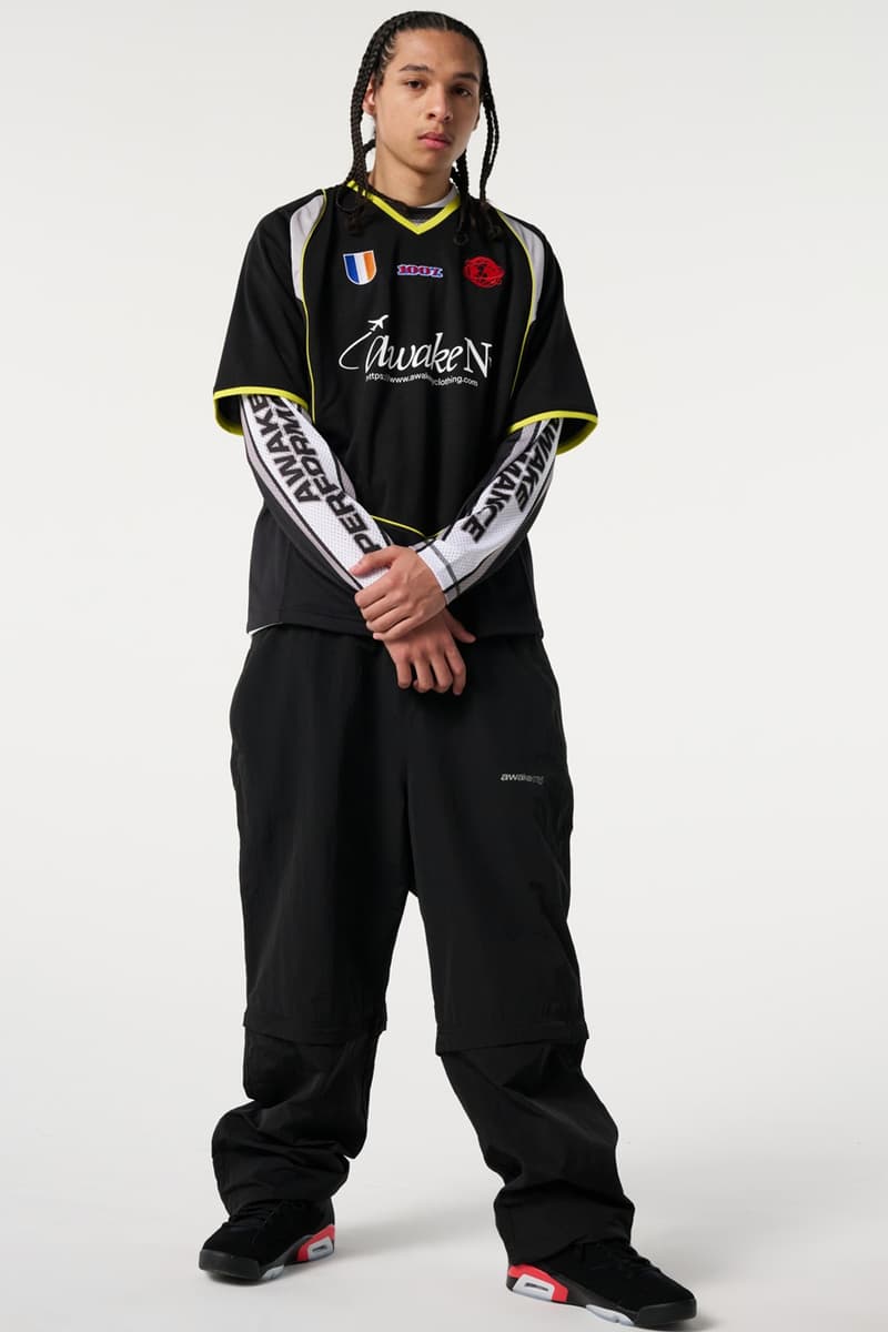 Awake NY 刚刚释出一组话题度爆棚的新品系列,由与 Air Jordan 6 的联名打头阵,但整条服装线同样亮点密集:印花与刺绣火力全开,贯穿艺术家的拼接式图像与二次演绎的视觉语言——来自 Omi。 在纽约短时间内都不会退场的外套赛道上,多色 North Face 壳夹克印上这位纽约本地创意人的喷绘作品,他擅长把流行文化元素与讽刺意味糅合在一起:有搭配绿色底的 Che Guevara 肖像、映衬蓝色背景的骷髅图案,以及配红色底的耶稣画像等。 整个系列中,水蓝、泡泡糖粉、紫罗兰与孔雀绿等「多巴胺」色彩,为偏锋利的街头态度注入一抹轻盈愉悦。粉色 Awake polo 以橄榄球球衣为灵感,肩部点缀图标;而孔雀绿冰球球衣则在胸前放大 NY 字样,背后是分裂式 Logo 设计,存在感十足。 下装表现尤为抢眼,裤腿布满纵向 Logo、复古拼色裁片以及双层护膝等细节;Awake 当然也备好基础款——靛蓝与黑色牛仔。最后,还有紫色与蓝色做旧运动套装,以多向排布的 Logo 点缀,一套上身即可轻松拿捏「随性却有态度」的造型。 作为型录主角的 Air Jordan 6 预计要在今年稍晚才会登场,配色包括 「Midnight Navy」,以及有望亮相的 「Playful Pink」。关于这次 AJ6 联名的发售信息敬请持续关注,同时别错过将于 2 月 27 日率先上线的春季系列单品。 |