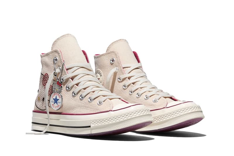 名称: Hello Kitty x Converse Chuck Taylor 70「Swarovski」 配色: White/Red SKU: A17695C-100 建议售价: $140 USD 发售日期: 2026 年 3 月 5 日 贩售通路: Converse 经典流行文化符号再度登场,Converse 携手 Hello Kitty,为经典 Chuck Taylor 70 带来更高级考究的全新演绎。 作为整个联乘系列中的焦点之作,Hello Kitty x Converse Chuck Taylor 70「Swarovski」摒弃一贯满版图案的夸张视觉效果,以更俐落、精致的气质亮相。沿用深受追捧的 Chuck 70 鞋型轮廓,鞋面以百搭奶油色帆布打底,再在侧身大胆镶嵌夺目的 Swarovski 水晶 Hello Kitty 图案,随步伐摆动折射光芒,为整体造型瞬间提升华丽层次。 在低调中性色调之上,鞋款以亮眼粉红点缀细节,巧妙分布于中底滚边、鞋内衬里与脚下的半透明外底之中,营造俏皮反差。鞋头位置嵌入小巧迷人的蝴蝶结装饰,鞋跟则以醒目 Hello Kitty 图案取代 Converse 一贯的复古标志。最后以可拆式吊饰为整双鞋作结,将 Converse All Star 标志与特别打造的水晶 Hello Kitty 吊饰优雅相连,完整呈现高级质感。 Hello Kitty x Converse Chuck Taylor 70「Swarovski」将于本周正式登场发售。 |
