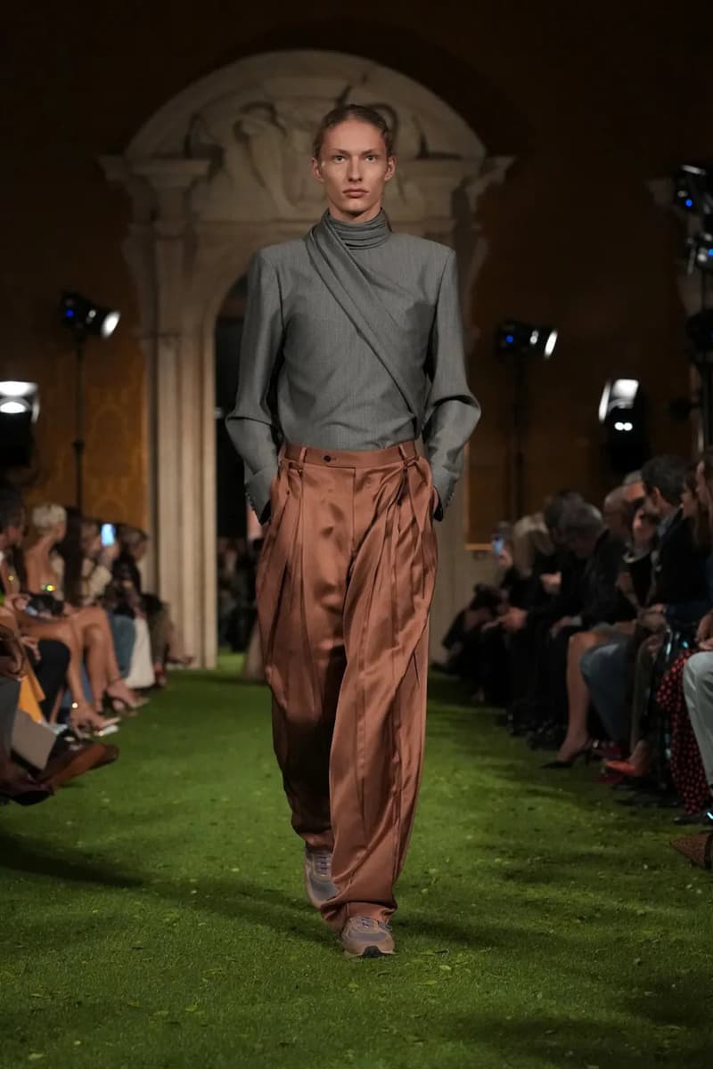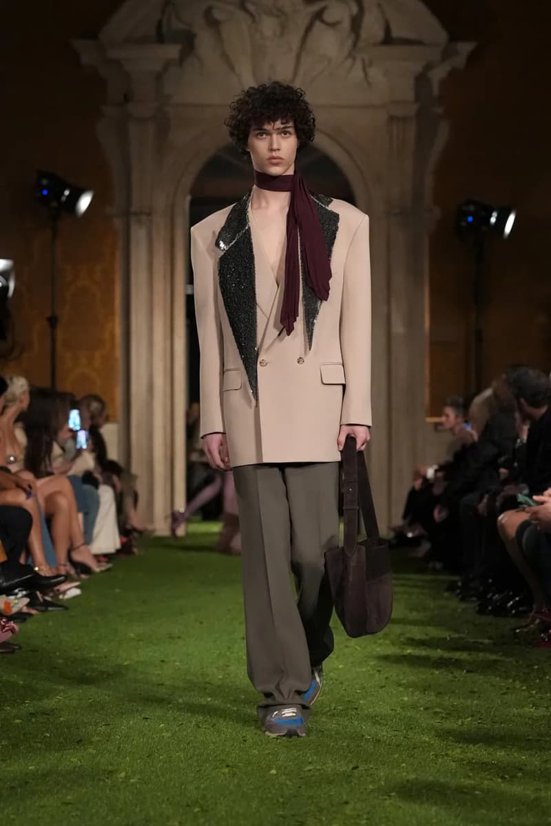 若说 Demna 在 Gucci 追求的是「外形最大化」,那 Alessandro Michele 在 Valentino 则是把「书卷气」发挥到极致。品牌自 Garavani 逝世后的首场成衣时装秀,选址罗马历史悠久的 Palazzo Barberini 举行。创意总监 Alessandro Michele 更以一篇长达 4 页的文章呼应时装秀,深入梳理 Palazzo 的历史与建筑身份。整份 Show Notes 充满对建筑、哲学与文化的思辨,引述 Friedrich Nietzsche、Walter Benjamin、George Simmel 等思想家的观点。临近结语时,Michele 指出:「Palazzo Barberini 并非单纯的背景,而是一套促成批判性再启动的装置。这座建筑远远不只是身体的载体,它主动挟持、引导并呈现身体,迫使人们直面一段关于阶序与扭转、轴线与曲线的历史。」 那么,这些概念如何化为衣装?Michele 以一组辩证命题概括本季的设计路线,交织「规则与偏离、轻盈与厚重、秩序与繁盛、通透与晦暗、循规与逾矩」。这套思路被具象成服装语言,例如一件从肩线到下摆单侧打褶、呈现流动变化的大衣。其他造型则以垂坠线条取代硬挺剪裁,其中一位男模以优雅垂坠的淡紫色 Crewneck,配衬经典西裤与运动鞋,营造轻松却精致的对比。 自 Michele 离开 Gucci 并于 2024 年加入品牌以来,这一季可说是他最具份量的系列之一。回看他在 Gucci 任内偏向极繁、反讽、满版 Logo 的表达,如今的 Valentino 则显得节制、深思且充满艺术感。干净俐落的经典轮廓,透过出其不意的细节产生变异;具建筑感的剪裁与精准掌控的布料垂坠相互结合;复杂与简约在其中取得微妙平衡,而所有层次都以得体而含蓄的方式呈现。 欲完整欣赏 Valentino FW26 系列,可浏览上方图集,并持续关注 Yobest.com,掌握最新时装业动态与深度观点。 |