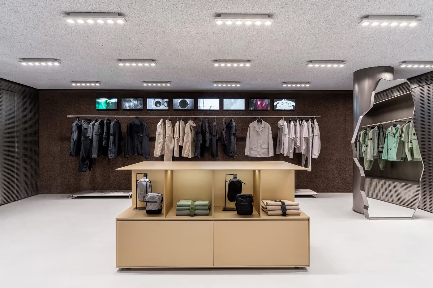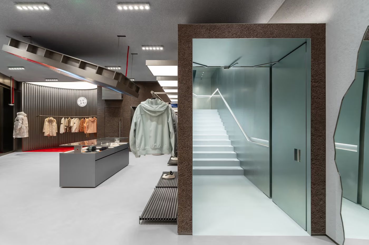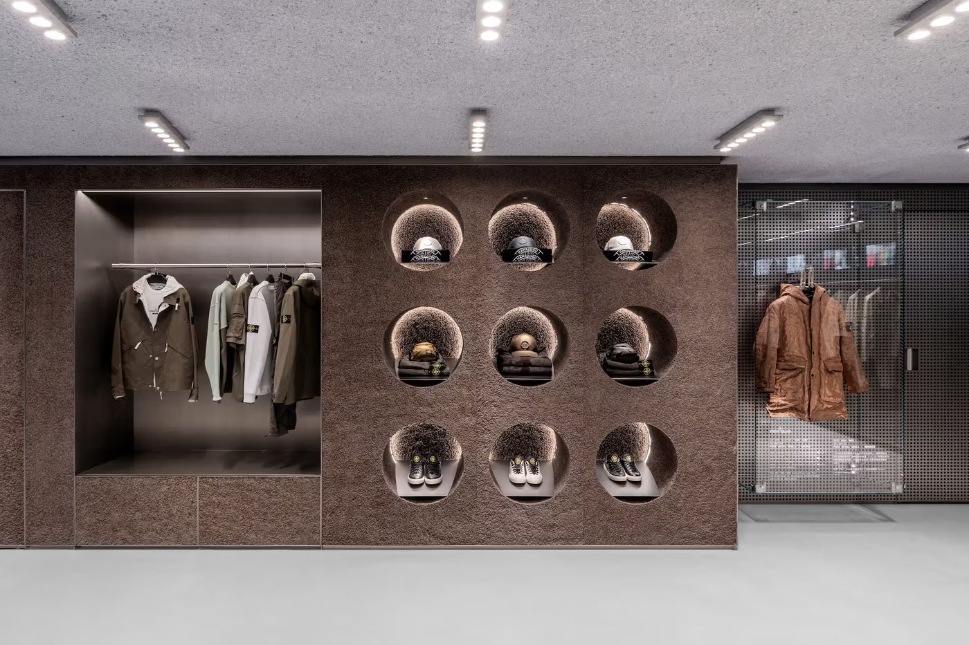 Stone Island 杭州旗舰店选址于杭州湖滨银泰 in77,面积逾 370 平方米,延续品牌与 OMA/AMO 共同打造的全球零售概念,汇聚创新工艺、材料和设计合作成果,彰显品牌一贯的研究与实验精神。旗舰店共占地三层,其中一、二层为零售空间,全面展示品牌包括 Stone Island Ghost,Marina,Stellina 子系列在内的全系列作品。透过巨大的橱窗,Chandelier 数字显示系统映入眼帘,这是品牌全球零售概念的标志性创新之一。吊灯悬挂在天花板上,可以倾斜、上升和下降,也可以作为照明展示功能。 步入店内,波纹金属壁龛呈半圆形陈设,呼应 Stone Island 巴黎和上海旗舰店的设计语言。在 OMA/AMO 公司的 Samir Bantal 主导下,整个店铺的设计理念凸显出材质的重要性。软木墙是全球零售概念的重要元素,经过烧制、喷砂和涂层处理,由此形成的深色结构软木墙具有吸音和防潮的功能特性。 在首层空间中,墙壁由经过烧制、喷砂和涂层处理的软木材料所覆盖。楼梯所采用的蓝色氧化金属材质,展示品牌在店铺材料实验方面的研究成果,这与首次应用于慕尼黑旗舰店的设计理念相呼应。二层空间则融入了 Stone Island 的一系列关键设计元素,包括带有圆形壁龛的软木墙、波纹喷砂更衣室、夯土墙,以及带展示壁龛的穿孔金属墙,再次彰显了品牌对材料创新的不懈追求。 与其他旗舰店一样,杭州旗舰店融合了独特的合作设计元素,包括 Tim Hooijmans 为品牌专门设计的横跨天花板的灯光系统、Johan Viladric 特别打造的极简风电镀铝展示台、Markus Toll 设计的 SUPERBENCH 长凳,以及用于展示 Stone Island 典藏系列的单品玻璃陈列柜,由 Phil Procter 为品牌特别定制。 STONE ISLAND 杭州旗舰店 地址:杭州市上城区东坡路 7 号湖滨银泰 in77 A 区 L1014 店铺 |