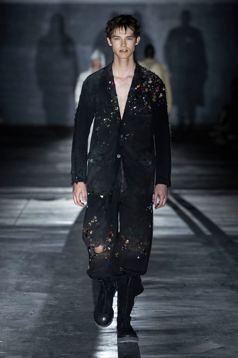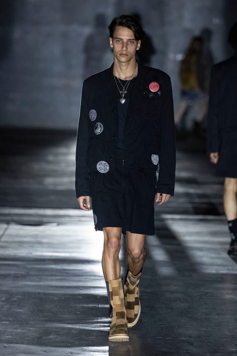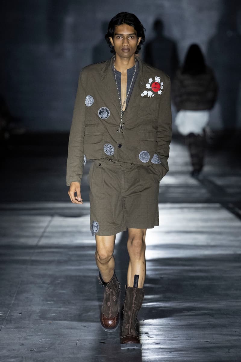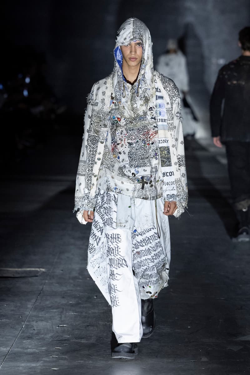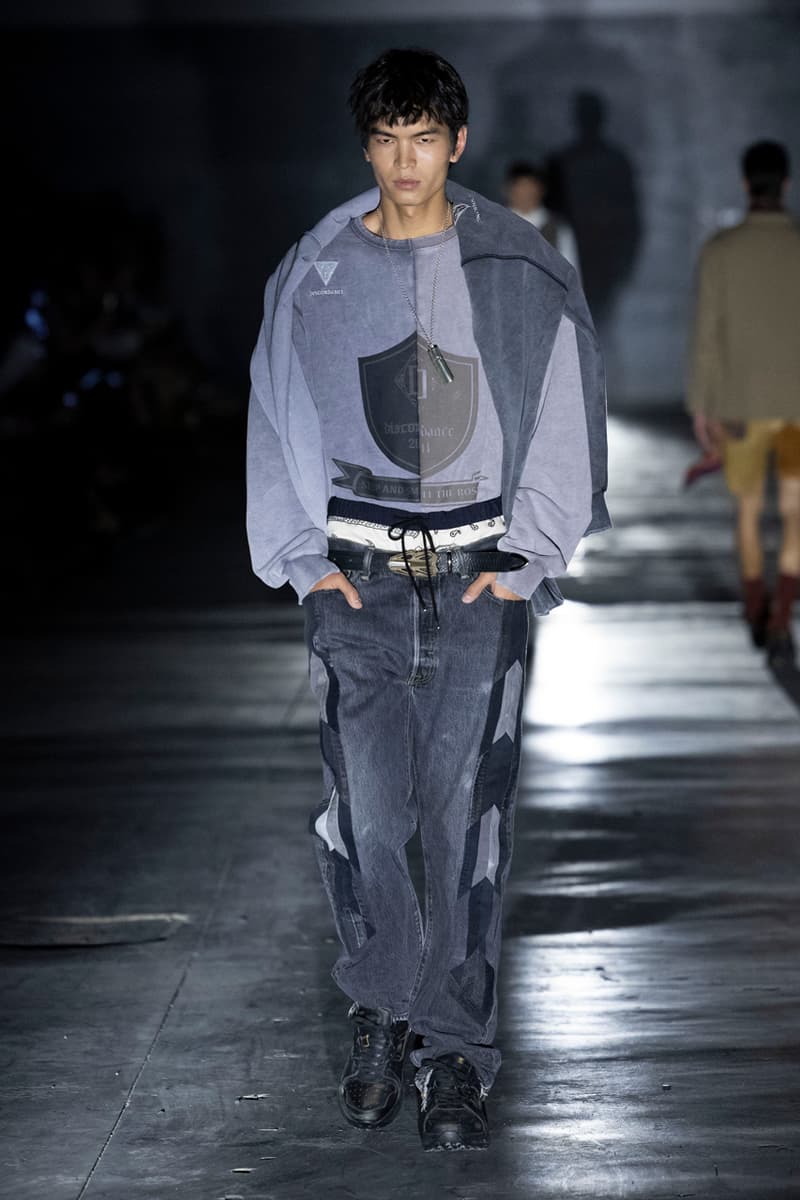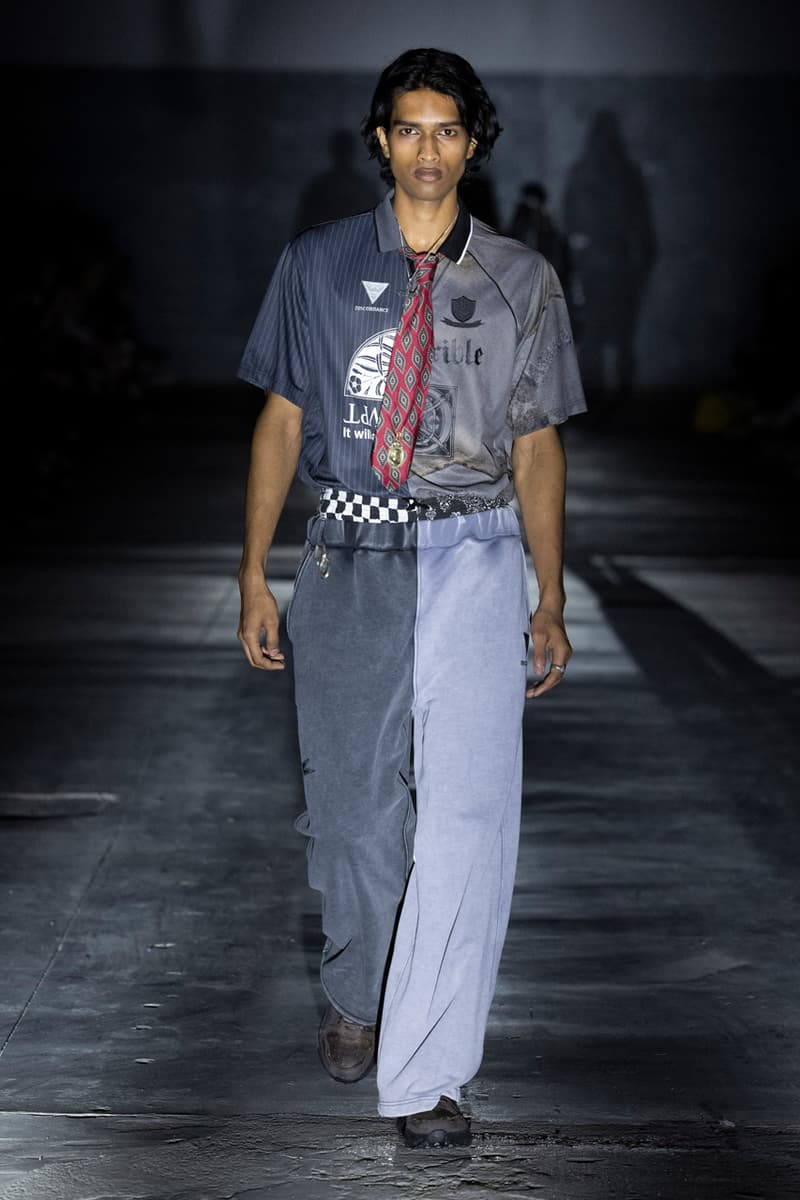 正如先前预告,Children of the Discordance 今日重返佛罗伦斯 Pitti Uomo 108,与其他亚洲品牌 Post Archive Faction (PAF) 和 Homme Plisse Issey Miyake 共同担任特别嘉宾。设计师志镰英明(Hideaki Shikama) 毫不保留地带来一系列极具表现力的解构与精致重制服饰,反映出叛逆青年文化和城市生活的混乱能量。 在一份官方声明中,Shikama 将自己和同儕早期的时尚比喻为 DJing——这与该系列「混音、剪切再加工」的理念不谋而合。「DJ 会避免播放相同的曲目,」他说,「这也适用于我们选择穿着的服装。这种在地语汇融入了我所做的一切。」 针对结构化裙装、夹克、长裤和短裤,志镰英明特别邀请一位伦敦培训的裁缝密友,将精致剪裁融入设计中。然而,品牌仍透过古铜色套染、解构轮廓和不对称结构等进一步的工艺,维持其前卫美学。拼接西装结合了纯黑色、海军蓝、卡其色和灰色面料的不同色调组合;此外,深色碎布被缝制成横向条纹织物,用于短夹克、长裤和外套。 「不和谐 Discordance」的概念透过对半缝合的服装具体呈现,包括一件饰有动物图案的传统日式横须贺外套、套染运动裤、图案足球球衣以及成套运动服。其他互相叠加和碰撞的重点印花、饰边和细节包括变形虫图案、涂鸦、褪色徽章、七彩宝石点缀,当然还有大量的破坏处理。 最后,Children of the Discordance 以一套非传统的婚纱造型为发表会划下句点,该造型由揉皱的白色和黑色 T-Shirt 组成,并以镶有宝石的十字架装饰兜帽与头纱的混合设计。 有兴趣的读者们敬请持续关注 YOBEST.COM,掌握 Pitti Uomo 108 的更多最新动态。 |