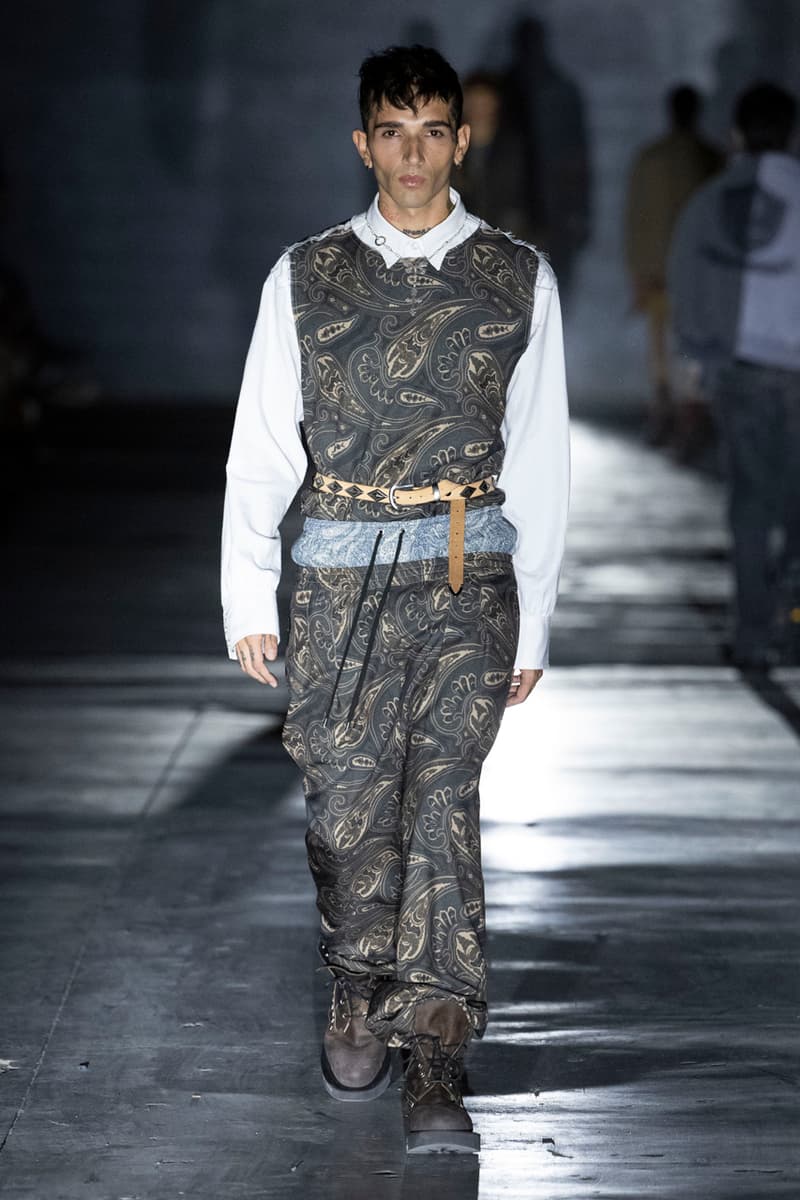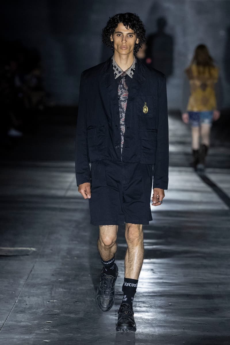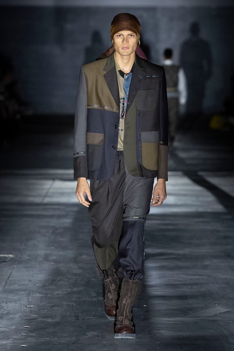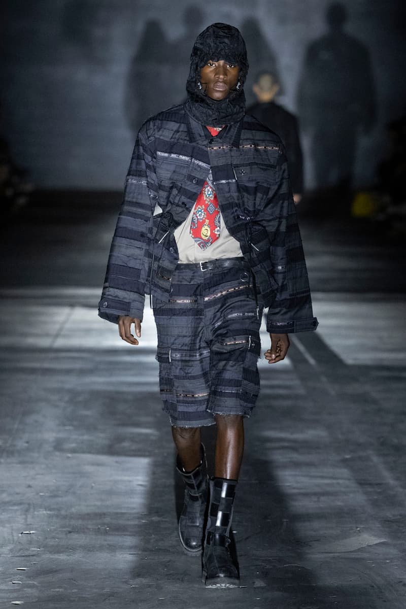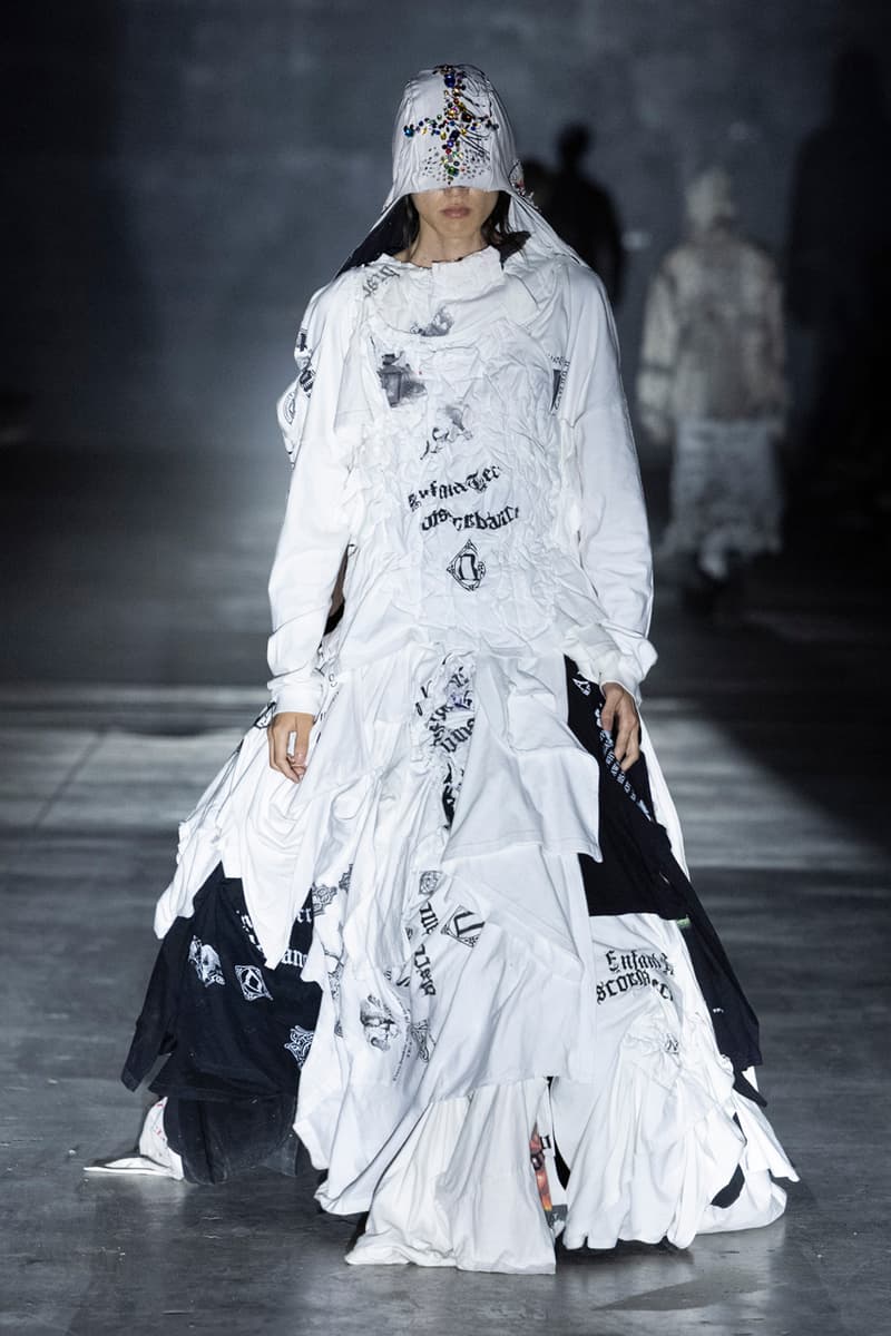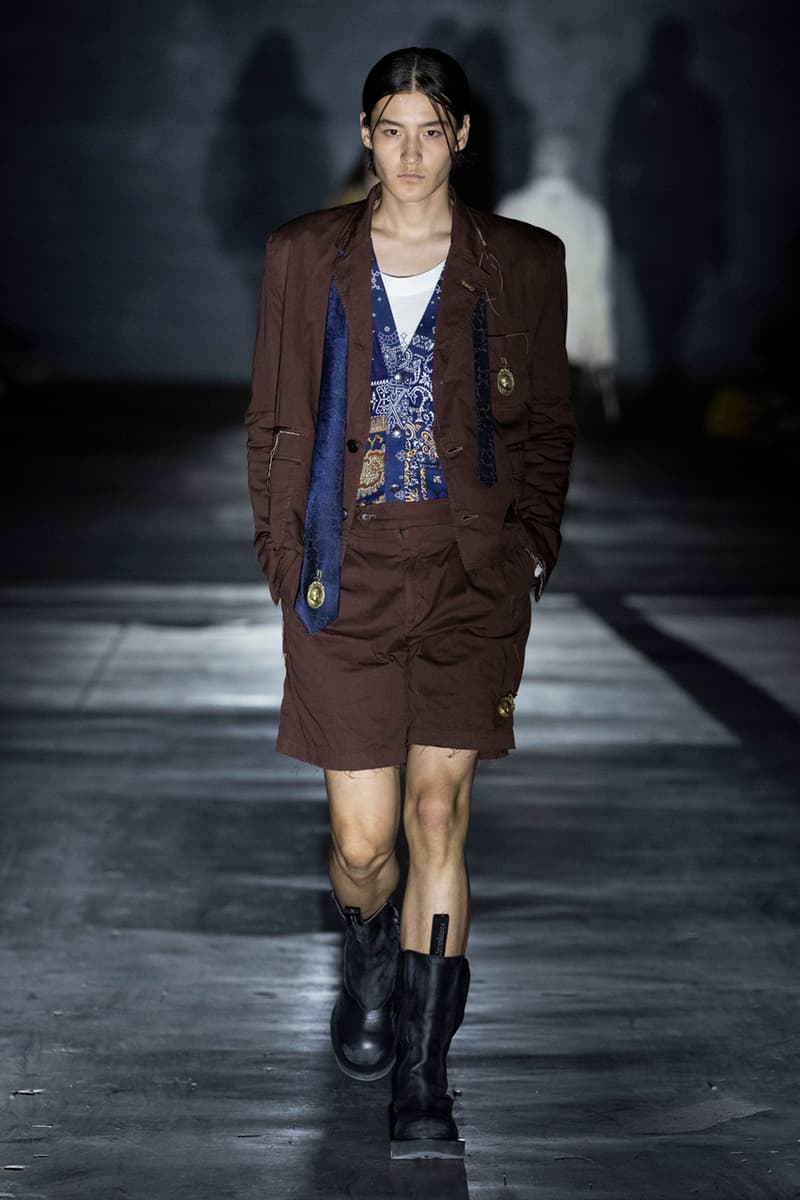 正如先前预告,Children of the Discordance 今日重返佛罗伦斯 Pitti Uomo 108,与其他亚洲品牌 Post Archive Faction (PAF) 和 Homme Plisse Issey Miyake 共同担任特别嘉宾。设计师志镰英明(Hideaki Shikama) 毫不保留地带来一系列极具表现力的解构与精致重制服饰,反映出叛逆青年文化和城市生活的混乱能量。 在一份官方声明中,Shikama 将自己和同儕早期的时尚比喻为 DJing——这与该系列「混音、剪切再加工」的理念不谋而合。「DJ 会避免播放相同的曲目,」他说,「这也适用于我们选择穿着的服装。这种在地语汇融入了我所做的一切。」 针对结构化裙装、夹克、长裤和短裤,志镰英明特别邀请一位伦敦培训的裁缝密友,将精致剪裁融入设计中。然而,品牌仍透过古铜色套染、解构轮廓和不对称结构等进一步的工艺,维持其前卫美学。拼接西装结合了纯黑色、海军蓝、卡其色和灰色面料的不同色调组合;此外,深色碎布被缝制成横向条纹织物,用于短夹克、长裤和外套。 「不和谐 Discordance」的概念透过对半缝合的服装具体呈现,包括一件饰有动物图案的传统日式横须贺外套、套染运动裤、图案足球球衣以及成套运动服。其他互相叠加和碰撞的重点印花、饰边和细节包括变形虫图案、涂鸦、褪色徽章、七彩宝石点缀,当然还有大量的破坏处理。 最后,Children of the Discordance 以一套非传统的婚纱造型为发表会划下句点,该造型由揉皱的白色和黑色 T-Shirt 组成,并以镶有宝石的十字架装饰兜帽与头纱的混合设计。 有兴趣的读者们敬请持续关注 YOBEST.COM,掌握 Pitti Uomo 108 的更多最新动态。 |