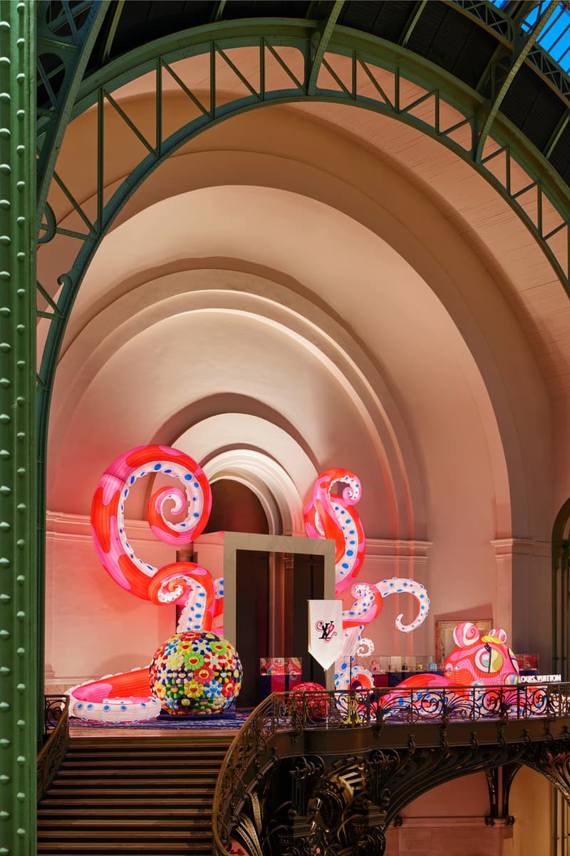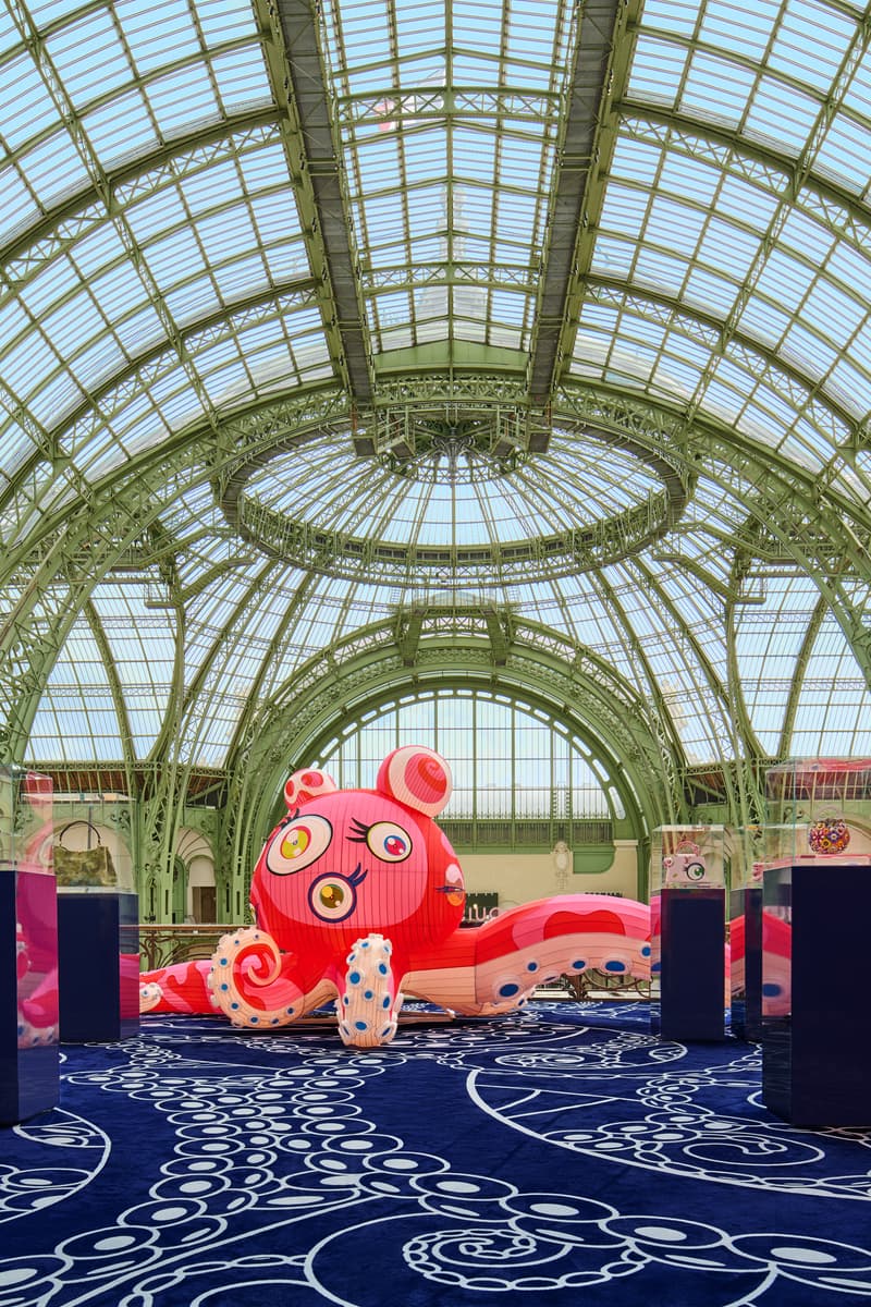 紧接经典首度合作的复刻回归,二人于 Grand Palais 布下一座悬于人潮上空的万花筒花园。位于 Balcon d’Honneur 上方的是 Murakami 全新构思的 24 呎高章鱼,灵感源自中国灯笼,发光的触手向外伸展,垂落至设备地面。雕塑配上耳朵与艺术家标志性的「Superflat Jellyfish Eyes」图样,在童趣与偏执之间游走,并向他 2017 年作品《The Octopus Eats Its Own Leg》致意。三件「Plush Balls」圆球雕塑环绕手袋,灵感取自 M.C. Escher 的 trompe-l’œil,为现场艺术与时尚的对话搭建理想舞台。 Louis Vuitton 的「Artycapucines」系列于 2019 年启动,品牌当时邀请六位当代艺术家为经典 Capucines 袋形注入个人视角。Murakami 版本的亮点包括 Capucines BB Golden Garden 手袋,取材自他向尾形光琳致敬的菊花主题作品;以及镶有 6,250 颗水钻的 Panda Clutch。另一方面,Capucines Mini Mushroom 以皮革构筑迷幻森林场景,而 Capucines Mini Tentacle 与 Capucines MM Eye 则呼应头顶那尊八肢巨像。 品牌与艺术家的合作渊源深厚。2003 年,时任创意总监 Marc Jacobs 邀请 Murakami,为 Monogram Multicolore 系列引入崭新的普普艺术语汇,为这家历史悠久的奢华品牌带来全新视角。这场划时代合作不仅为 Louis Vuitton 开创全新的视觉语言,也奠定了 Murakami 创作中一以贯之的命题——高端文化与商业文化的共舞。 「Artycapucines VII – Louis Vuitton x Takashi Murakami」展览现正于 Grand Palais 登场,为 Art Basel Paris 的一部分,展期至 10 月 26 日。门票信息请前往展会官网。 |