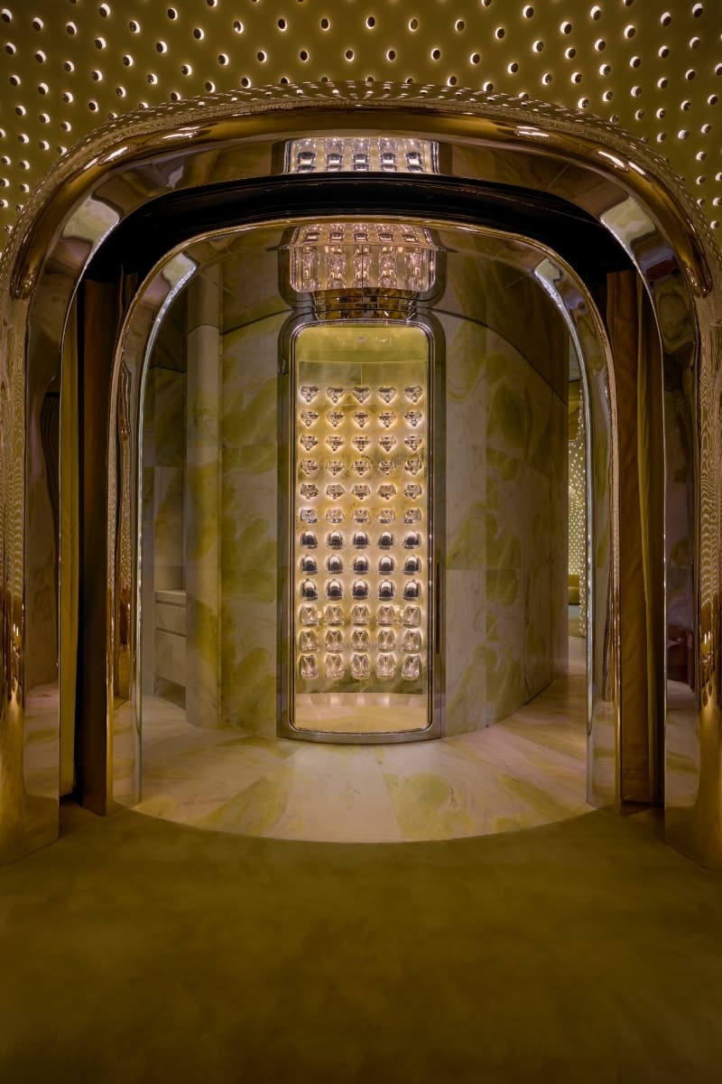由 Studio Paolo Ferrari 操刀的最新项目 Peridot Bar,已于 The Henderson 38 楼开业;这座线条蜿蜒的地标塔楼坐落于香港中环,由 Zaha Hadid Architects 设计。这间酒吧被构思为一个私密、具电影感且情感张力强的空间,体现 Ferrari 的「Natural Futurism」或「Timeless Futurism」—— 一种植根于记忆、同时由大胆创新推动的概念二元性。 置身由 Zaha Hadid Architects(ZHA)设计的雕塑化塔楼之中,酒吧营造出如茧般的环境:柔绿灰泥的墙面与天花无缝相连,其间点缀着顶部配以钢制端盖、发光的磨砂亚加力圆柱。这些「像素化」的设置呼应极简主义与观念艺术;镜面材质则捕捉流转的日光与城市灯火,营造出时间的流动感。 Ferrari 的标志风格在于空间既有形亦有情,Peridot 以丰富的触感语汇将之具现。厚绒马海毛座椅、高光烤漆家具与雕刻式壁龛营造亲密氛围;整体设计借鉴旧世界吸烟室的颓美,并以浪漫的未来主义视角重新诠释。中央吧台以绿色大理石雕凿而成,以原生的重量感镇定场域,映衬由调酒师 François Cavelier 领军团队的每一个调酒手势。于此,机能与戏剧性相遇:声场随每一次注酒与搅拌而起伏,将戏剧性推高,与休息区的静谧形成对照。 场内还隐藏一间私密包房,设有量身订制的不锈钢与大理石酒瓶陈列架,既讲求工程精度,也具雕塑气质。这处隐秘空间凸显 Ferrari 对细节的严谨讲究,为整体空间叙事推至高潮。 Peridot 38/F, The Henderson, Summit 38, 2 Murray Rd, Central, Hong Kong |