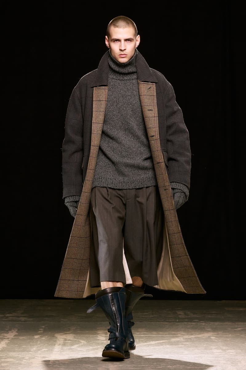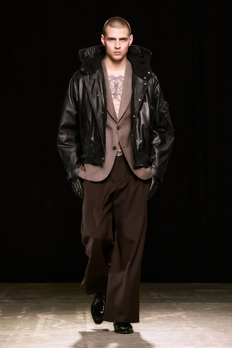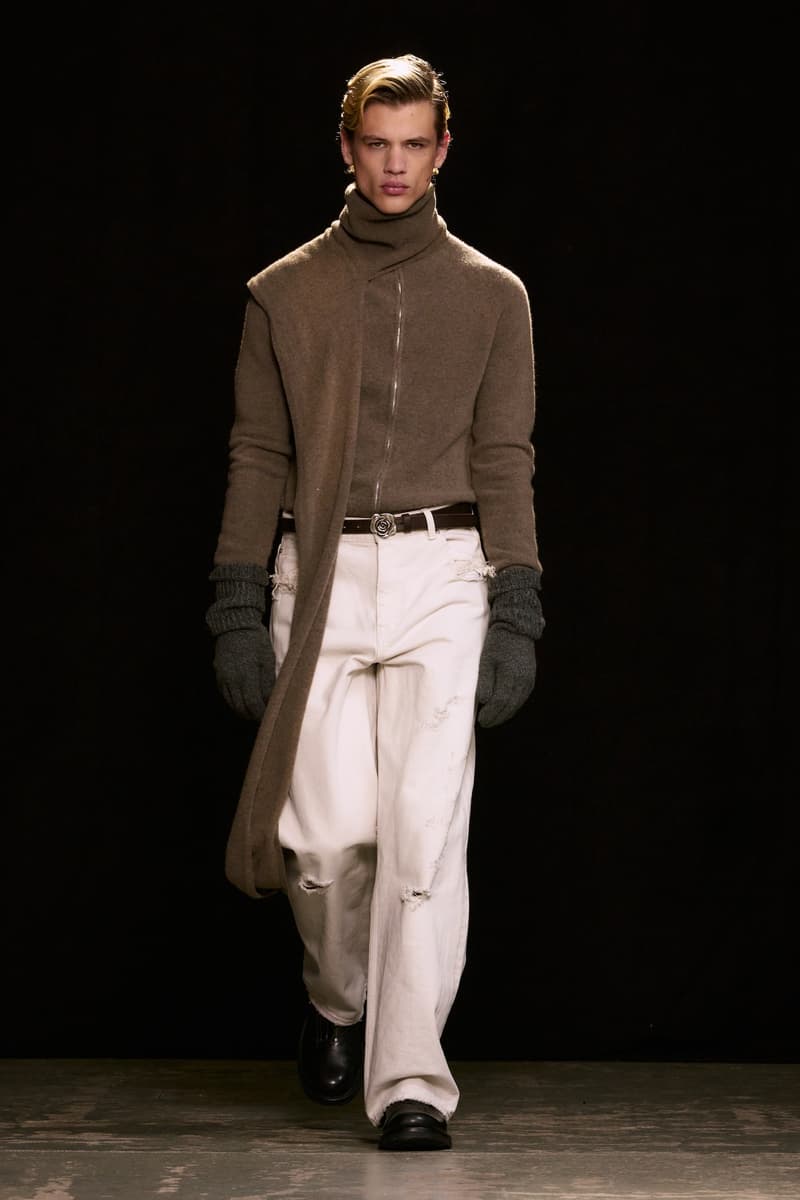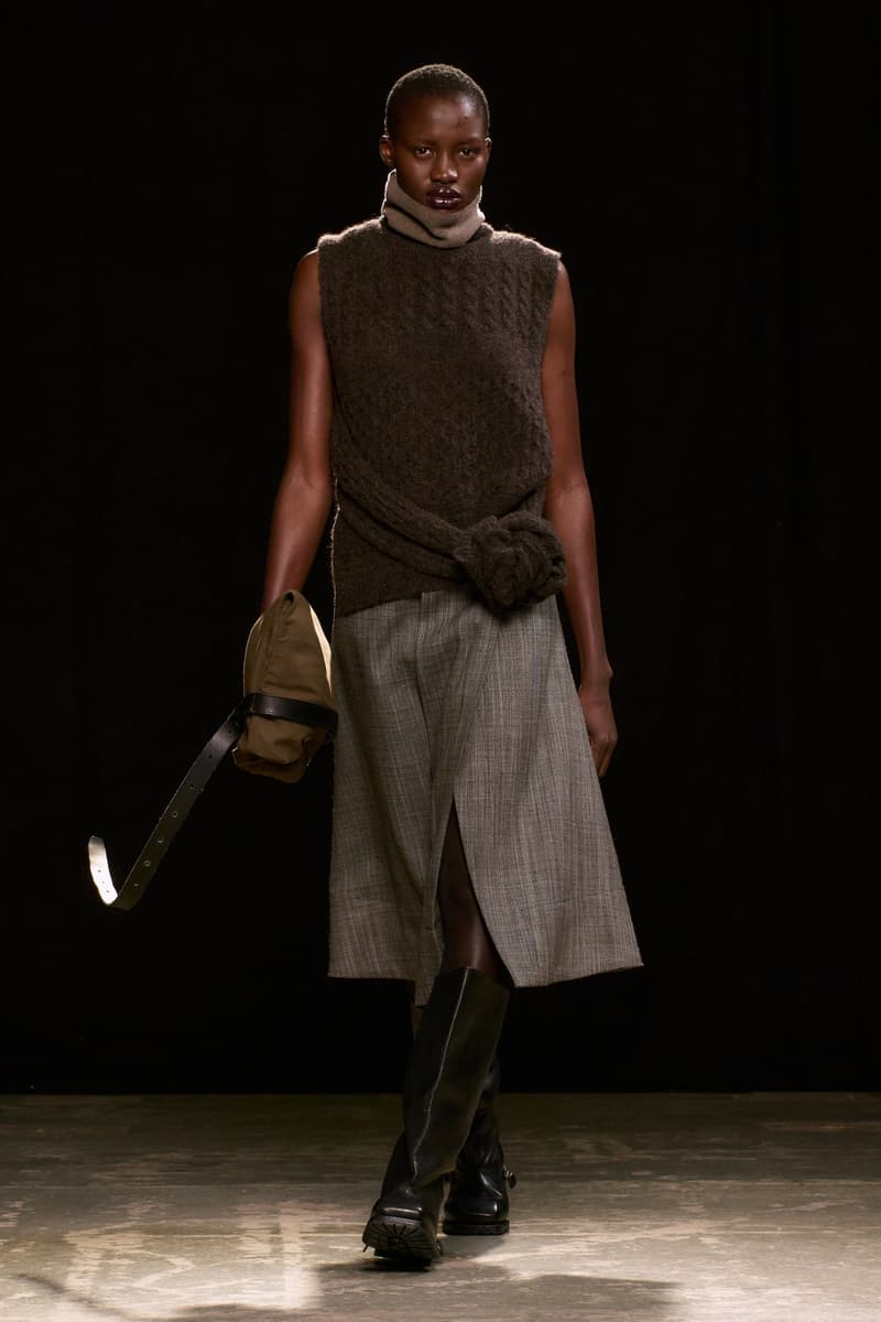 什么才是一件「纯粹」的衣服?对 Our Legacy 来说,它更多体现在两条并行的原则之中:一是回到事物本身的源头,将服装还原至最本真的形态;二是其中所承载的情绪重量,关于如何叙述脆弱、忧伤与克制的感受。两种表达形式共同构筑了 2026 秋冬系列的基调,使其在情感与功能之间获得平衡。 自 Our Legacy 创立之初,为特定功能、甚至强化功能的服饰而生,始终是创意总监 Cristopher Nying 创作的核心。无论是为常年身处瑞典北部严酷气候中的空军机械师量身打造的 60 年代工装夹克,采用厚重人字纹呢制成的 40 年代军用大衣,还是经典军用飞行夹克,诸如此类的服装始终驱使我们不断淬炼与重塑。 新系列品牌将聚焦这些经典之作的本质:设计故事、制作工艺与穿着体验完美融合的产物是如何打造?通过对原始面料的甄选、色彩的调配与剪裁的革新来优化工装原型,原本便是 Our Legacy 的设计根基。而今品牌更进一步,以精准的丈量与把控再度诠释每件单品,他们深知「设计服务于功能」。曾被时代遗忘的技艺与工序被温柔唤醒,这并非为了复刻,而是为了找回衣物中那份沉静而纯粹的本质。 看似平凡的单品,实则经历了多年的打磨与反复的推敲才得以诞生。衣服平铺时,针织面料、嵌入式领口,展露出关于结构与形态的纯粹美感。沉郁的黑色与暗色调投射出阴郁的氛围;朦胧的色盘柔化了潜在的华丽感;围巾被系作凋零的玫瑰模样;剪裁的精妙细节嵌入深沉的轮廓之中。只有通过触碰和穿着,才能感知其中的情绪。毕竟,服装为人而生,当人们穿上这些衣物时,倾注其中的真诚才能被体会。 |