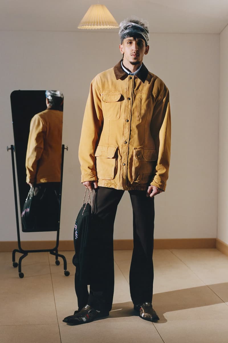 Martine Rose 于 Paris Fashion Week 带来同名品牌的 2026 年秋冬男装系列。整体阵容以张扬笔触重新拆解典型形象、自我表达与历史符码,将幽默感与戏剧化剪裁融为一体。 此季 Rose 从多位以奢华风格见称的人物汲取灵感,包括 King Henry VIII、James Brown 及英国拳手 Prince Naseem,将他们的张扬气场转化为游走于文艺复兴宫廷华丽与 1990 年代夜店风之间的服装。重点单品包括束身衣风格缝线外套、附内建帽兜的缎面飞行夹克、前襟绑带皮裤,以及揉合内衣元素拼接而成的衬衫。 轮廓夸张却不失玩味,蓬松袖型令人联想起 Tudor 时期短上衣,并被重新演绎为运动外套与 MA-1 飞行夹克。从宛如老派贵妇大衣的毛绒质感到鲜亮桃红长毛,各式毛皮装饰点缀衣领与肩部,配合动物纹拼接与机能夹克,进一步强化 Rose 的招牌语汇。紧身皮裤与修长鞋型则放大整体张狂气势,营造出既颓靡又带颠覆意味的视觉语言。 FW26 系列再次印证 Martine Rose 对「矛盾美学」的精准掌控:严谨工艺与无礼幽默紧密交缠。她重访品牌标志性元素——带有恋物气息的金属配件、叠搭吊带背心的衬衫与放大比例工装剪裁——提醒观众其在男装设计上的长远影响力。最终呈现的是一场集历史课、时装实验与俏皮挑衅于一身的展示,进一步凸显 Rose 将文化意象转化为当代态度的能力。 |
