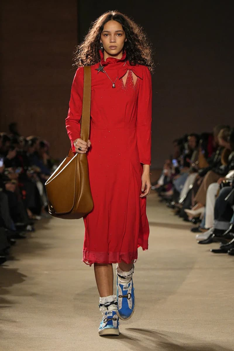 Coach 正式发布 2026 年秋冬成衣系列,由创意总监 Stuart Vevers 带领这个经典品牌走向更具街头质感与反主流气息的新方向。系列于 2 月 11 日在 New York Fashion Week 登场,大秀一改传统精致路线,转而拥抱偏向「emo」的视觉语言,现场观众形容氛围宛如《The Black Parade》与菁英预科学校叛逆情绪的混合体。 系列的故事线从黑色电影般的灰阶调走向「Technicolor」式的鲜明乐观,将不同年代的风格交织出全新语汇。重点造型包括反转穿法的西装外套、刻意错位的领带,以及搭配磨损百慕达短裤的厚实 grunge 格纹。Vevers 以高筒滑板球鞋及缀有星辰胸针的缎面高领连身裙,勾勒出略带叛逆的「back to school」氛围。 虽然完整系列将于今年稍后陆续推出,Coach 已迅速把秀场热度转化为「See Now, Buy Now」即看即买策略。当中最瞩目的配饰为 Kisslock Frame Bag 30,以修长的 East-West 袋型向 Bonnie Cashin 于 1969 年推出的「Cashin Carry」设计致敬,采用由黑色至樱桃红等多款 glove-tanned 真皮制作,配备可拆式肩带及复古风金属配件。 外套设计依然是品牌的核心支柱,今季大秀带来多款经典 varsity jacket 的全新演绎。限量系列涵盖羊毛与皮革材质款式,部分更点缀星形图案,并同步推出以日月星辰为主题的珠宝饰品,如太阳胸针与月亮耳环。当中包括 Kisslock Frame Bag 30 在内的多款秀场单品,现已可透过 Coach 官方网上商店选购,其余 2026 年秋季系列单品则预计于今年稍后时间陆续登场。 |
